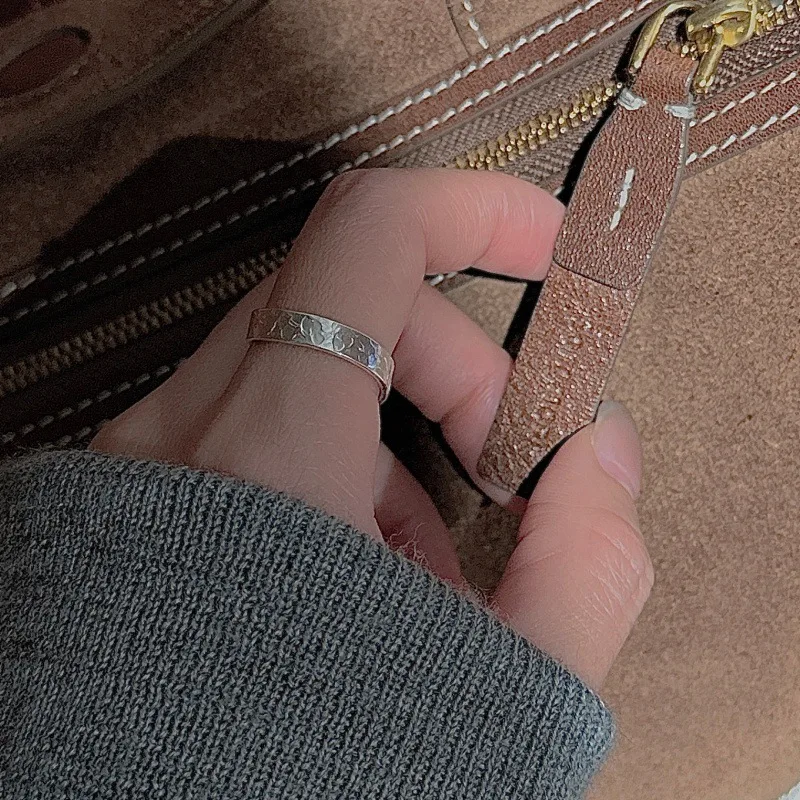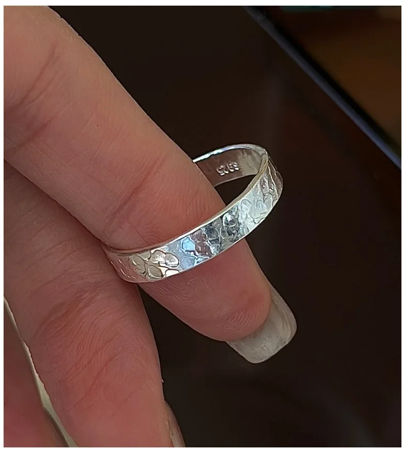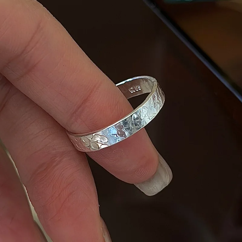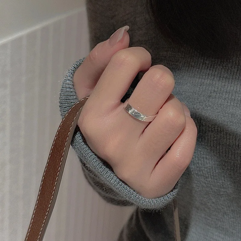 CHOZON S925 Solid Silver Hand Hammered Ring Korean Vintage Textured Stacking Jewelry Gift for Women
