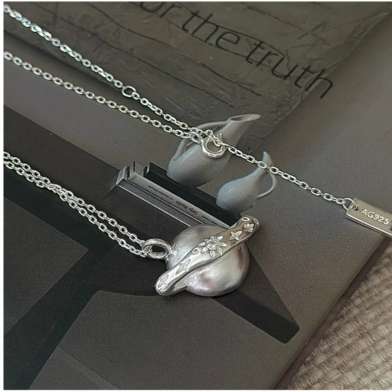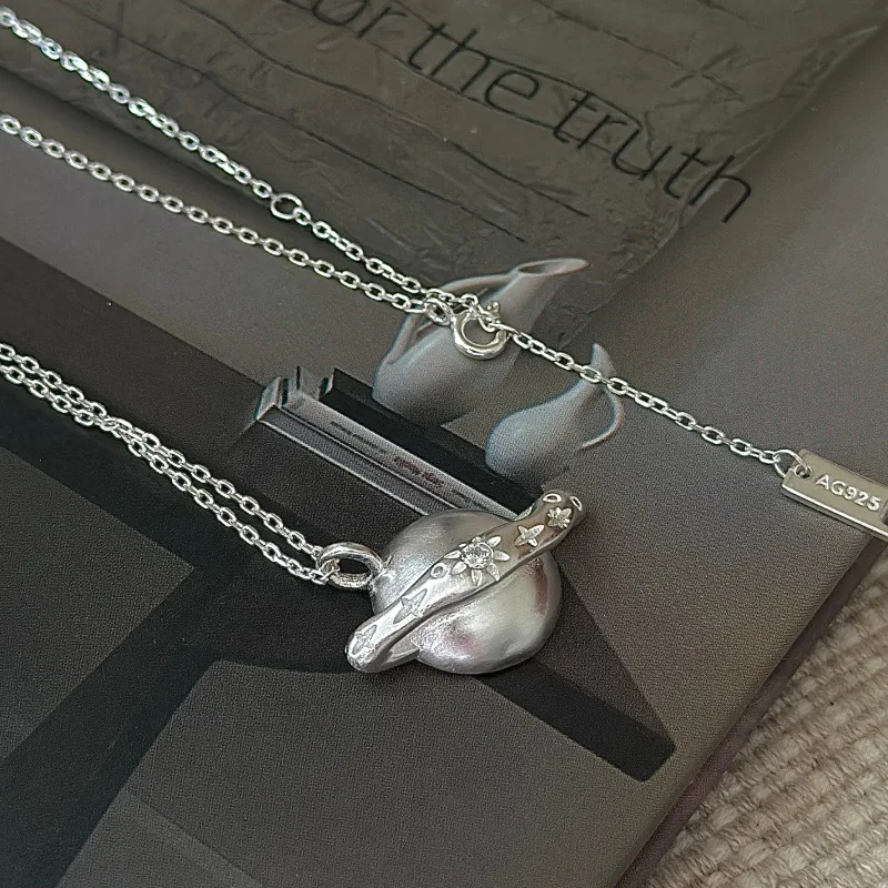 CHOZON S925 Solid Silver Hexagram Pendant Necklace Korean Vintage Minimalist Layering Jewelry Gift for Women