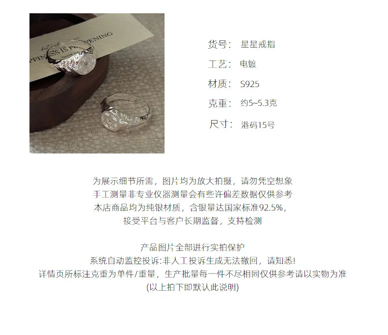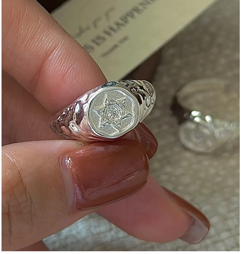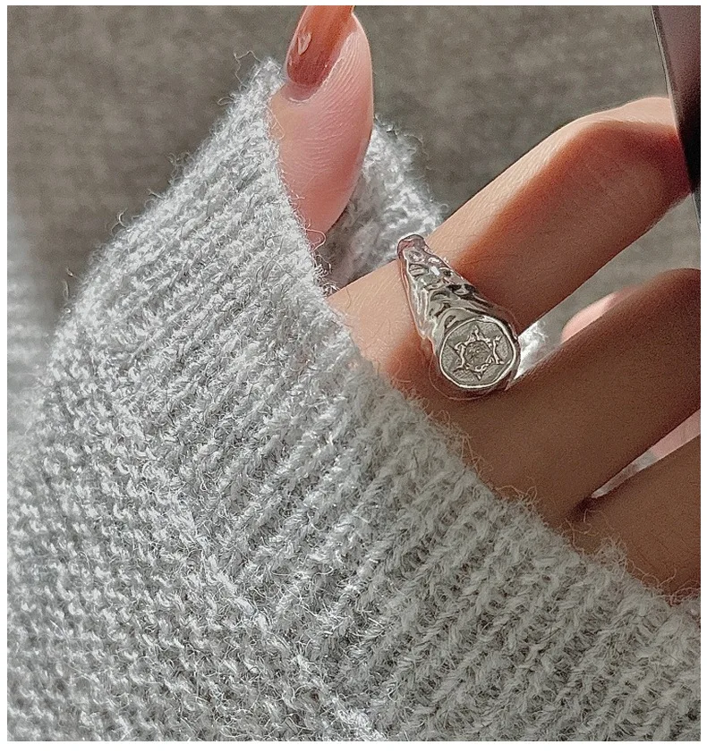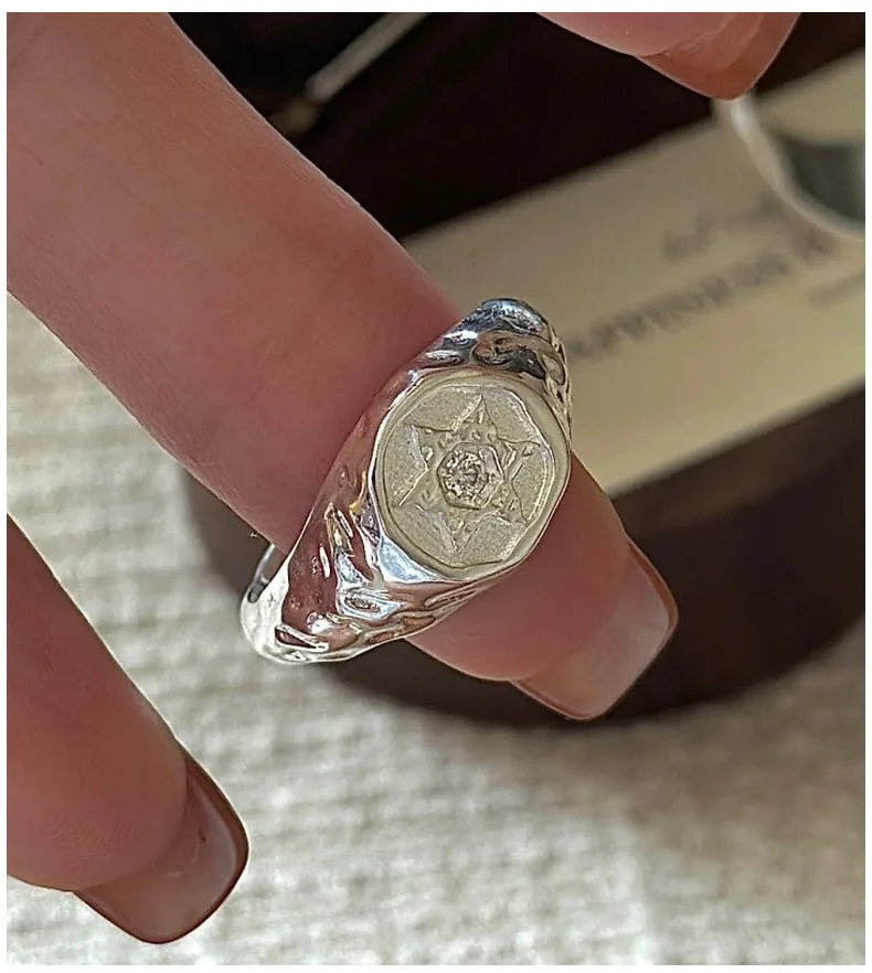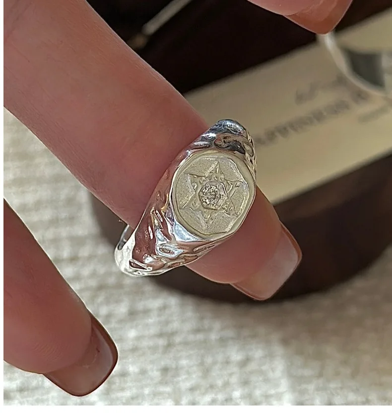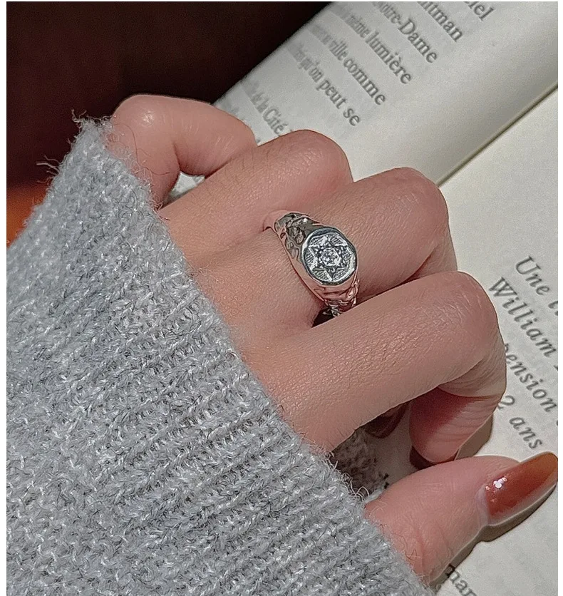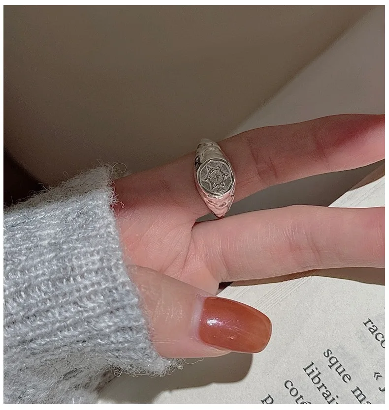CHOZON S925 Solid Silver Hexagram Ring Korean Vintage Minimalist Stacking Jewelry Gift for Women