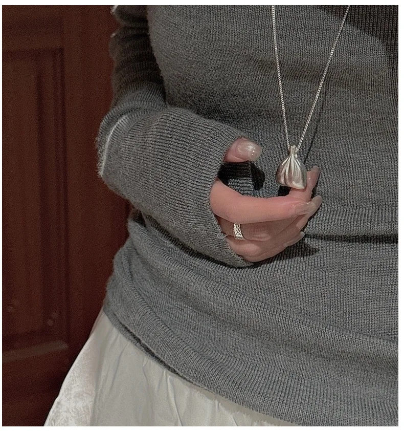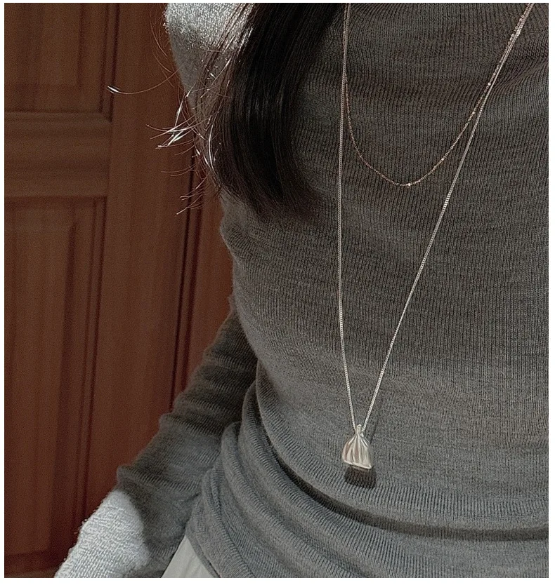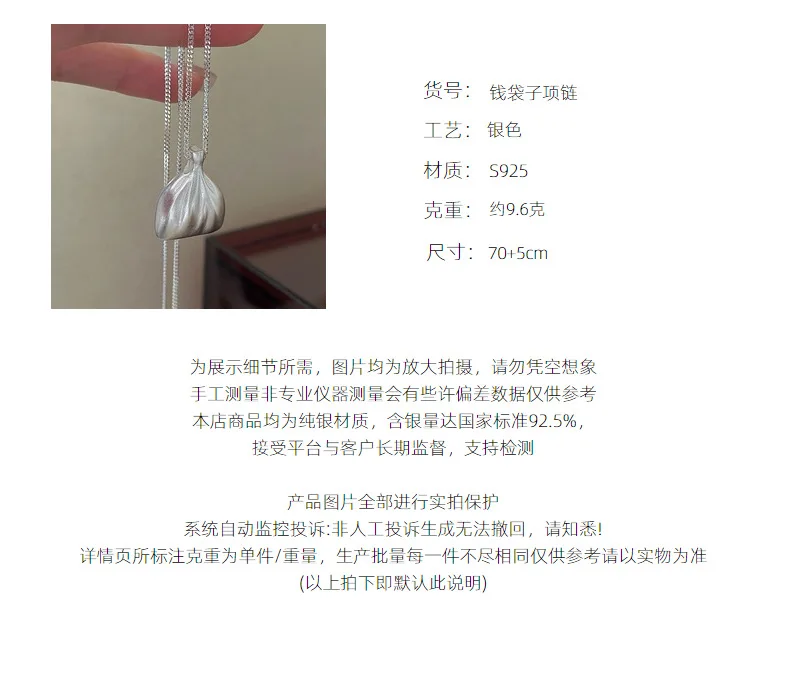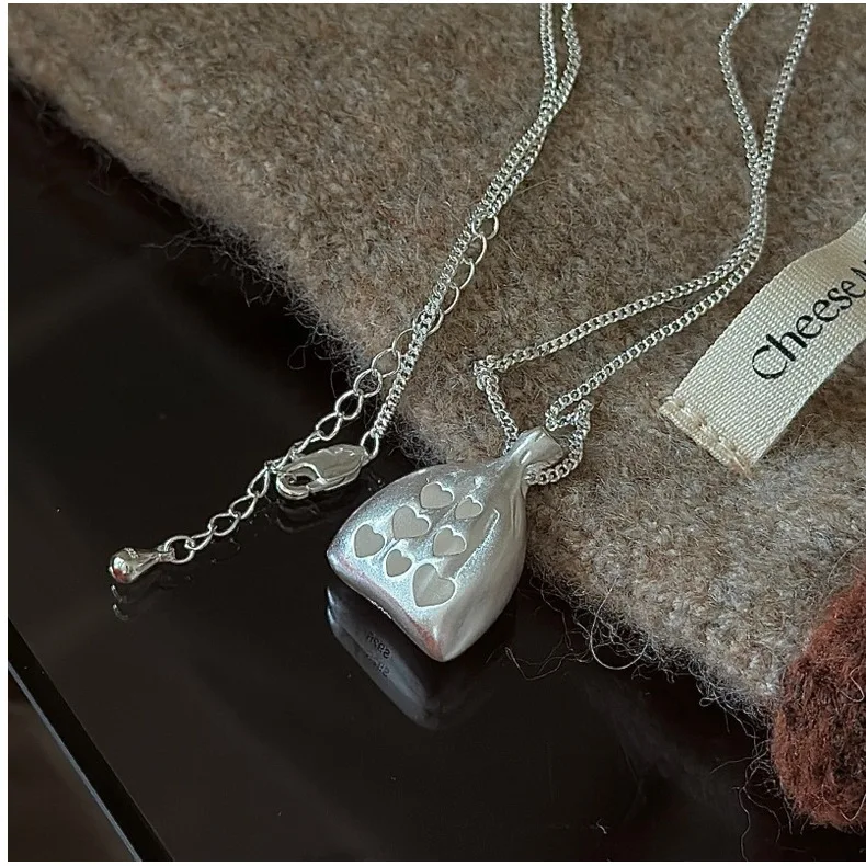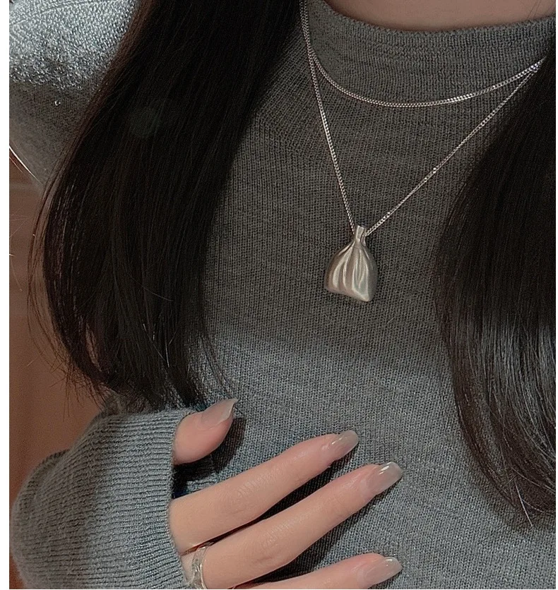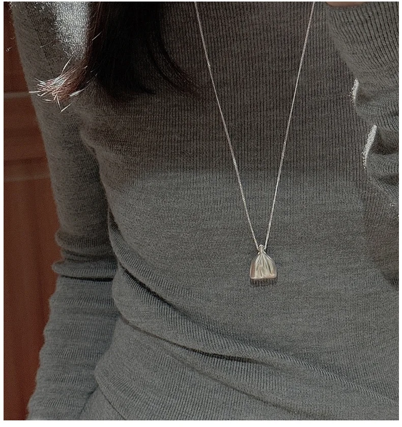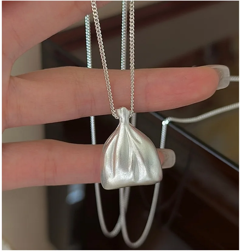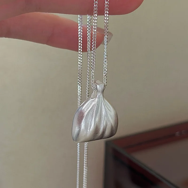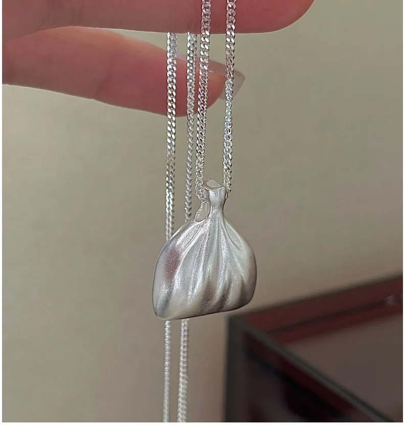 CHOZON S925 Solid Silver Matte Bag Pendant Necklace Korean Vintage Minimalist Layering Jewelry Gift for Women