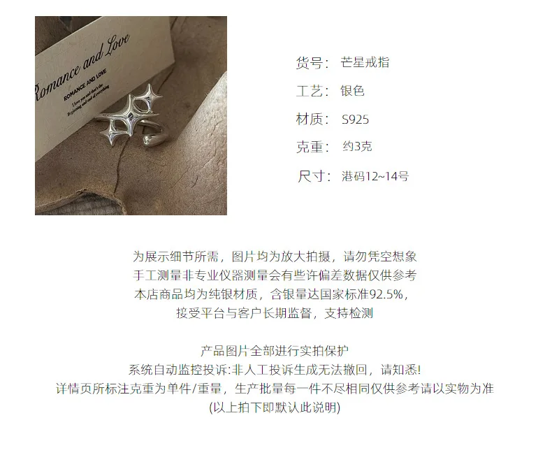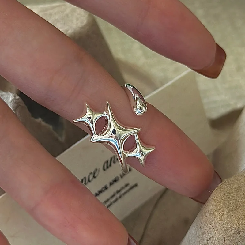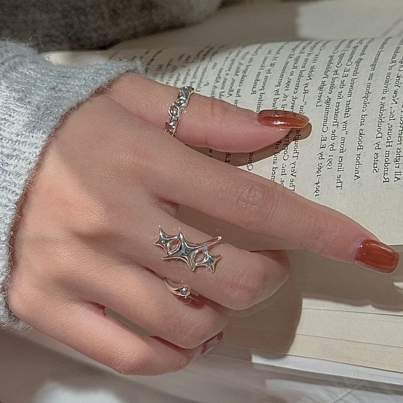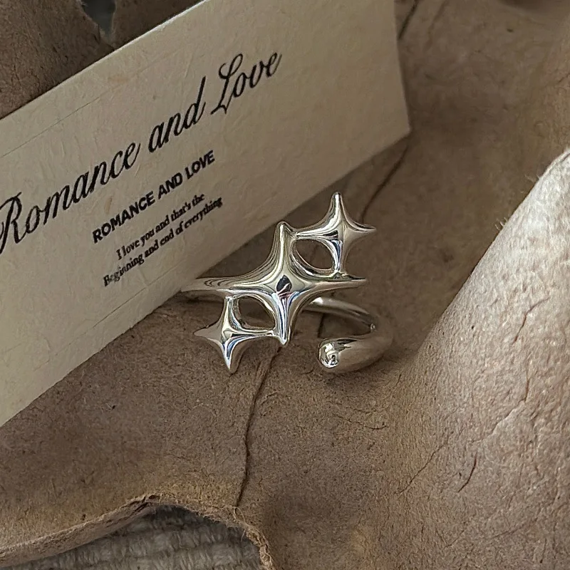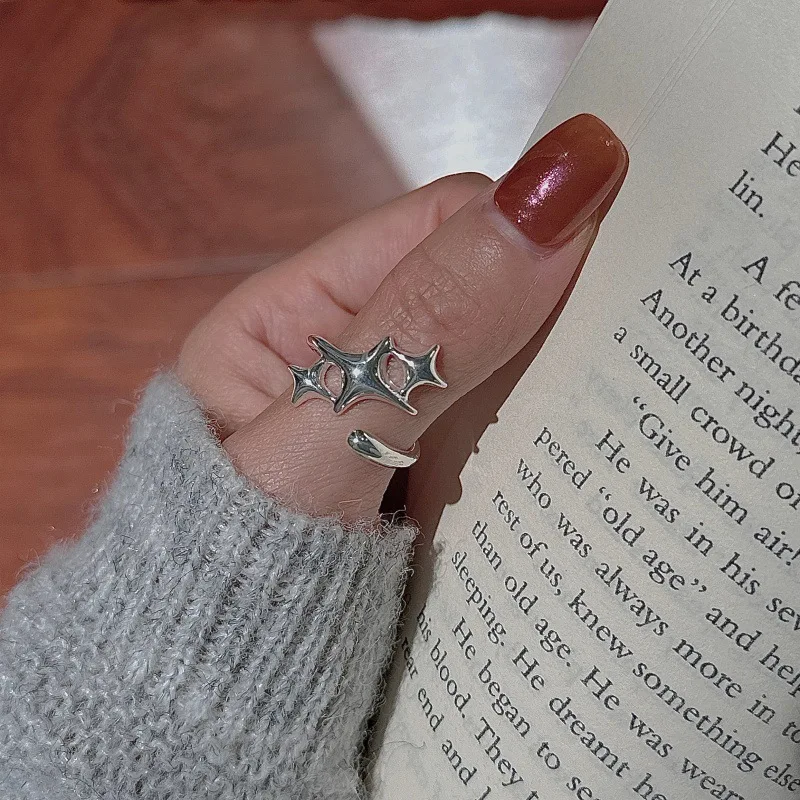CHOZON S925 Solid Silver Star Ring Korean Vintage Minimalist Stacking Jewelry Gift for Women