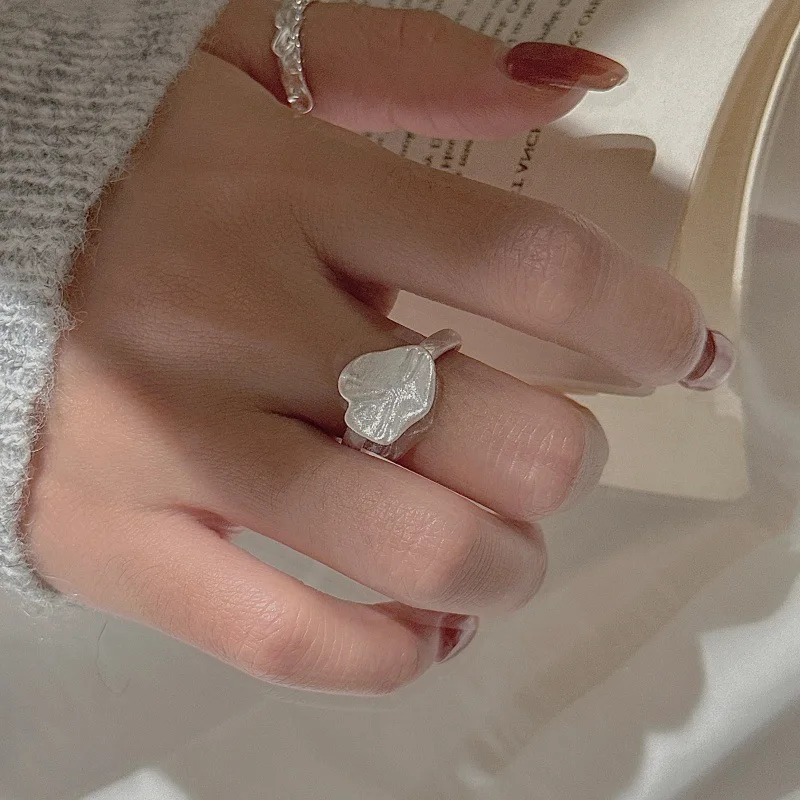 CHOZON S925 Solid Silver Textured Oxidized Ring Korean Vintage Minimalist Stacking Jewelry Gift for Women