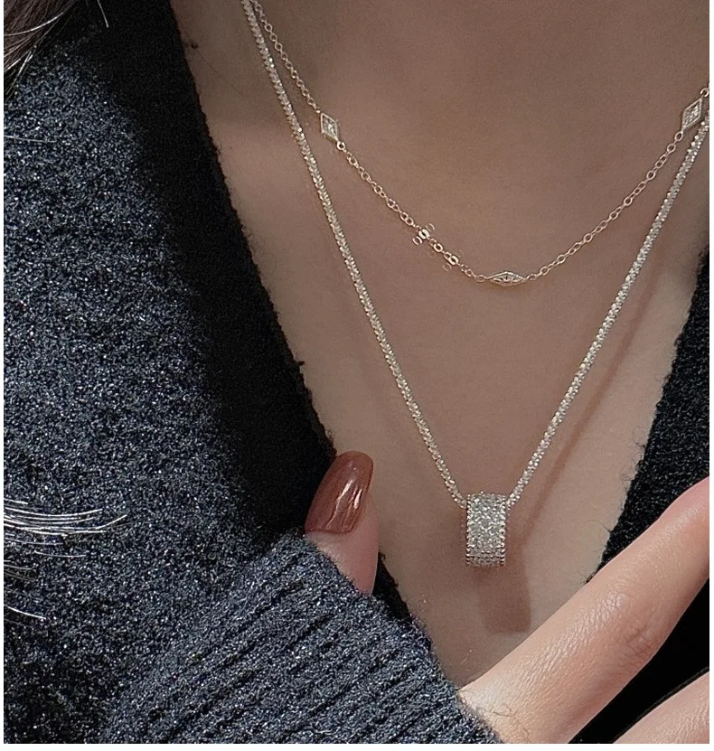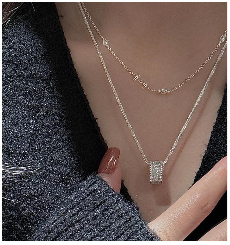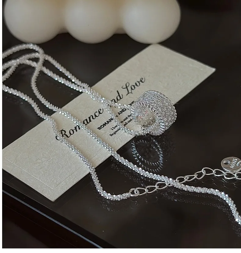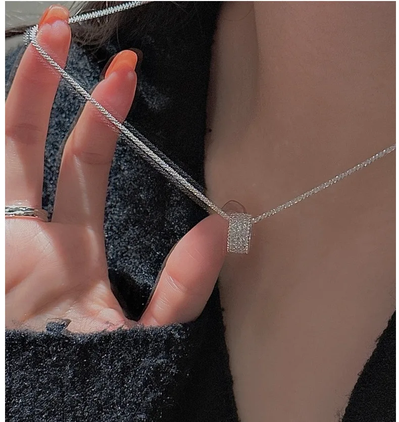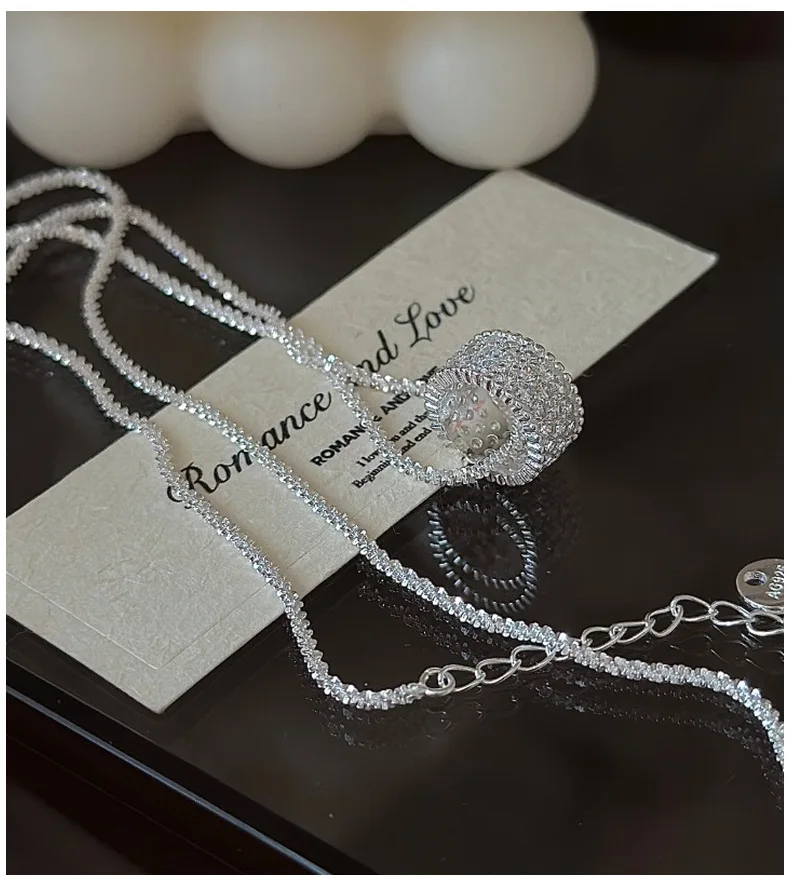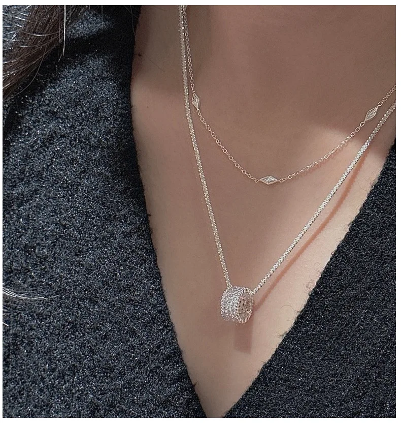 CHOZON S925 Solid Silver Tube Necklace Korean Vintage Zircon Layering Jewelry Gift for Women