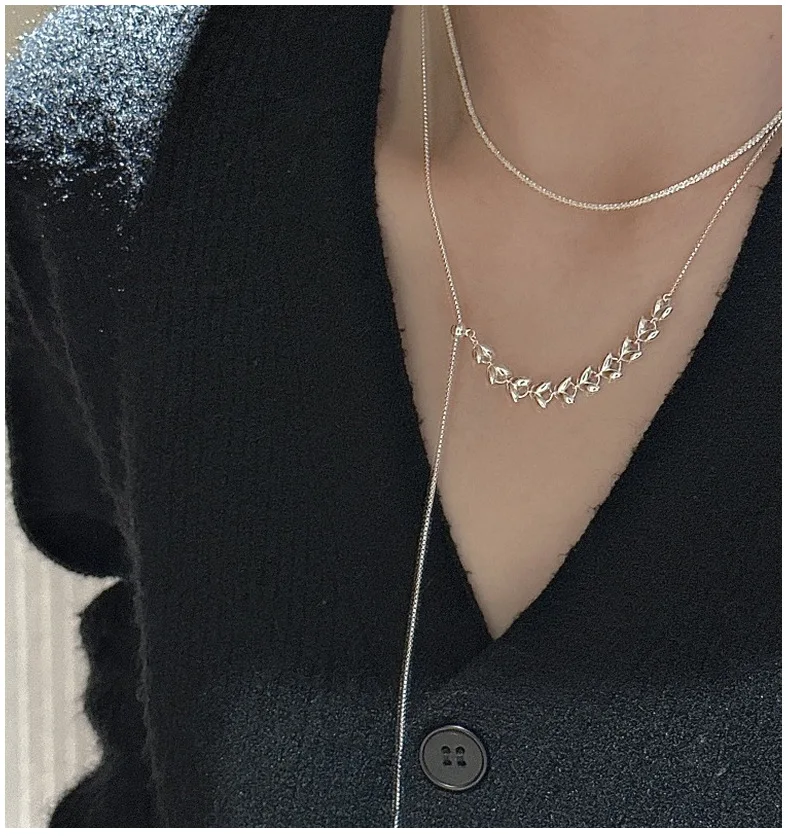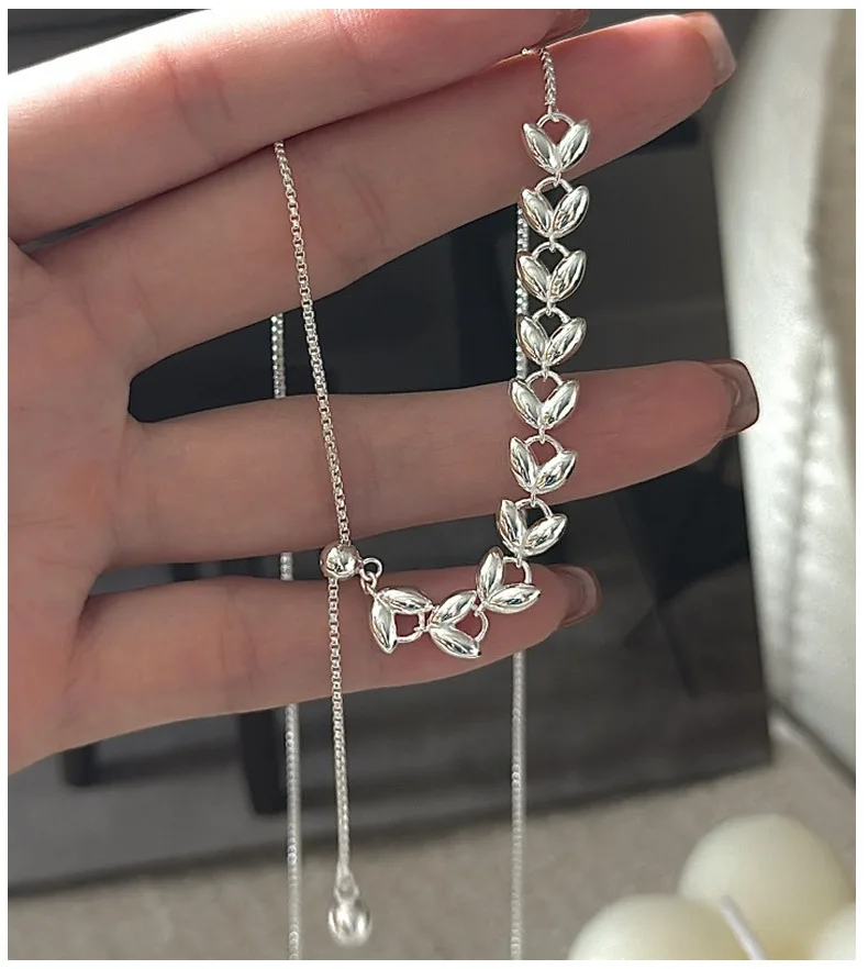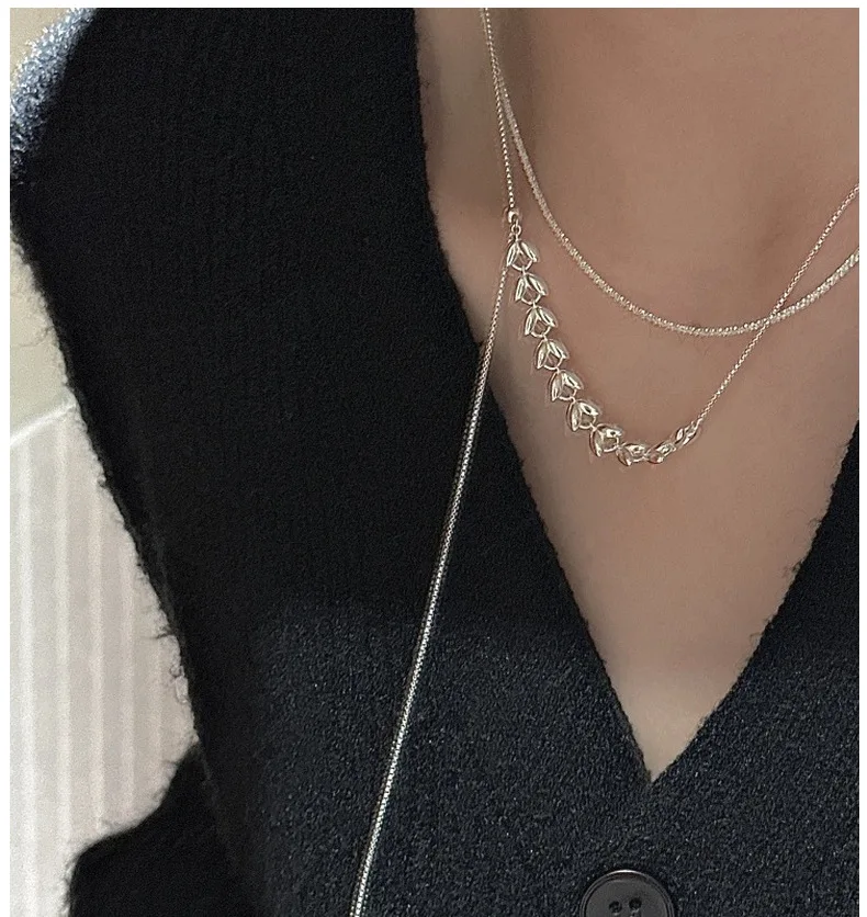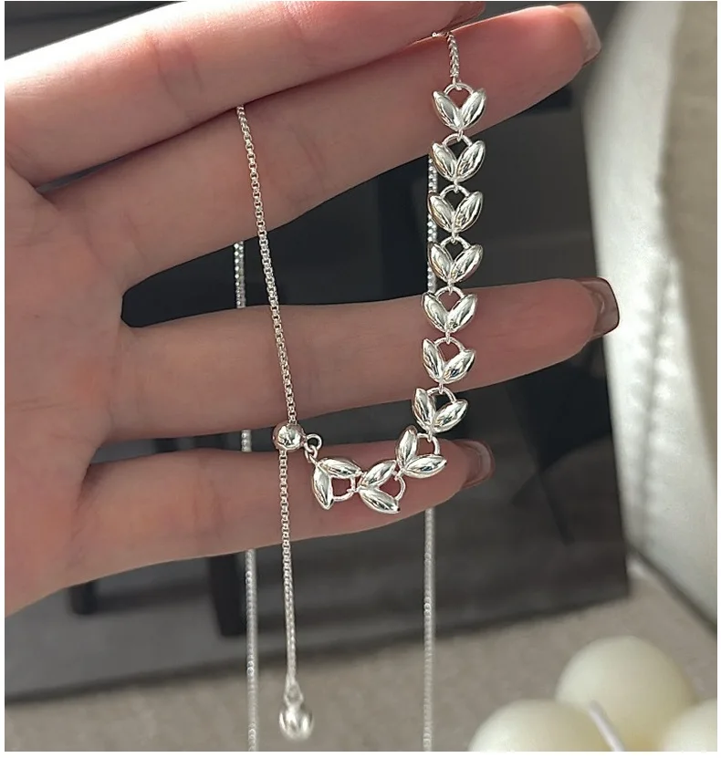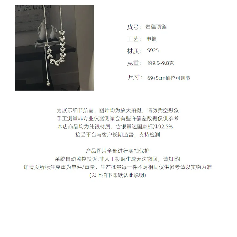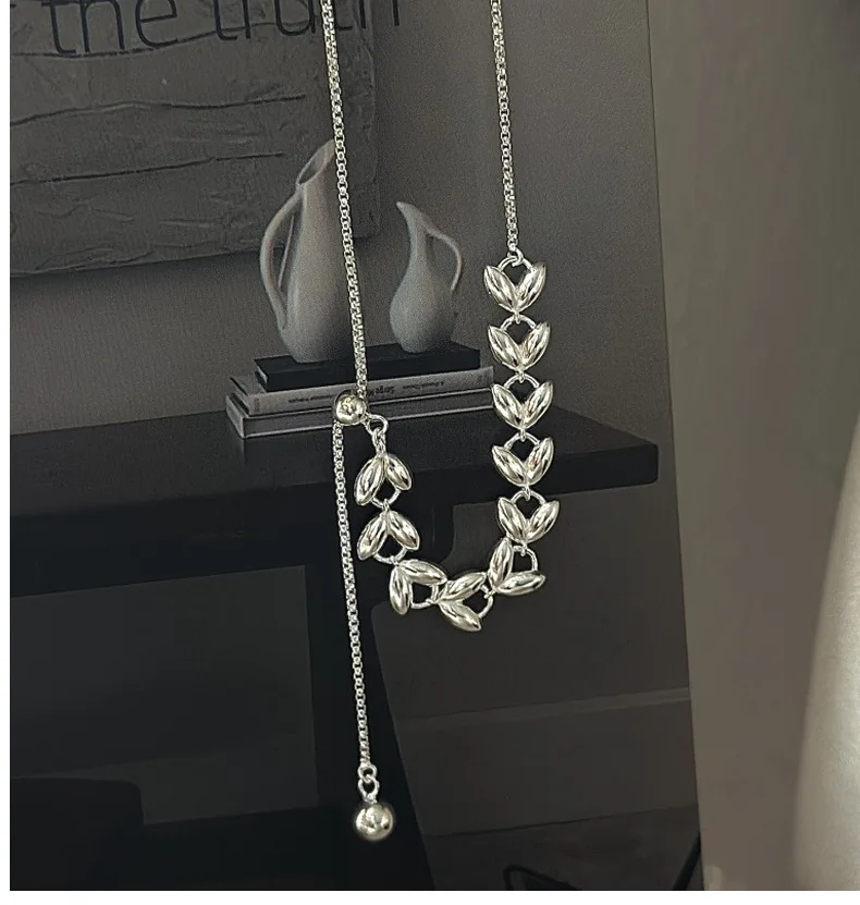 CHOZON S925 Solid Silver Wheat Adjustable Necklace Korean Vintage Minimalist Y-Chain Jewelry Gift for Women