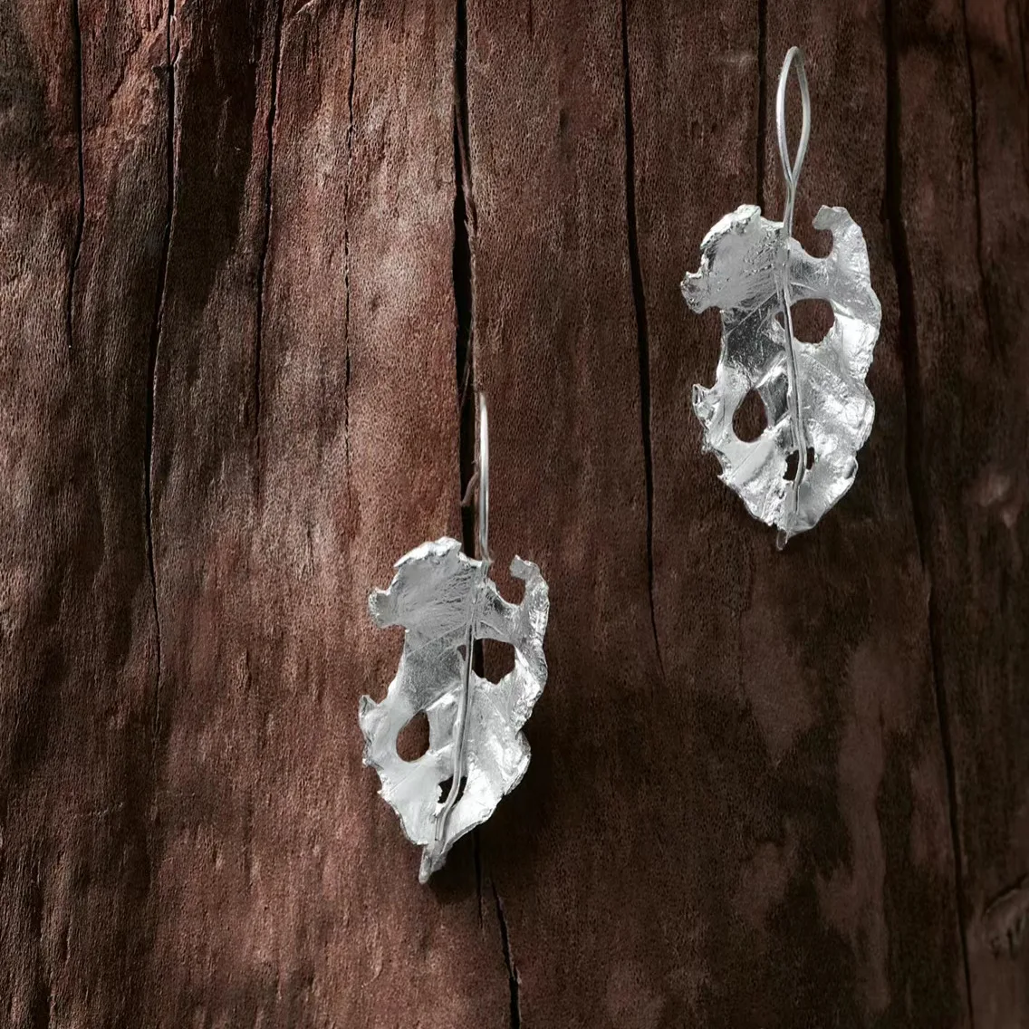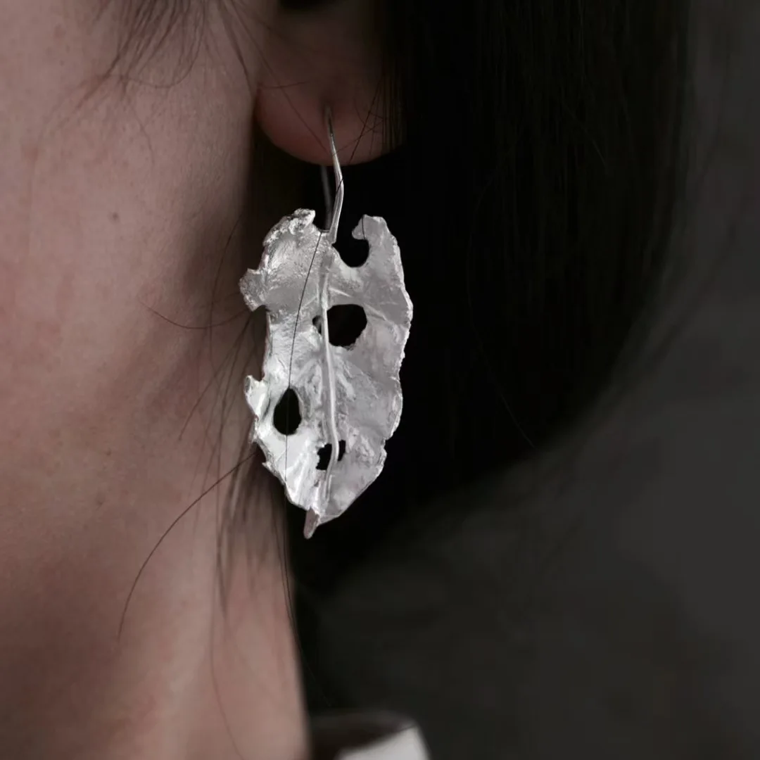 CHOZON S925 Solid Silver Withered Leaf Earrings Chinese Zen Hollow Textured Elegant Jewelry Gift for Women