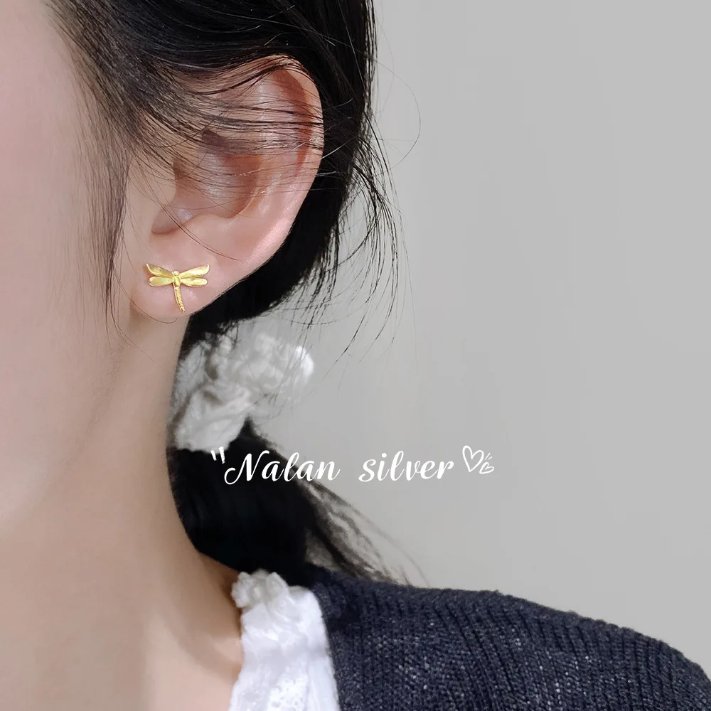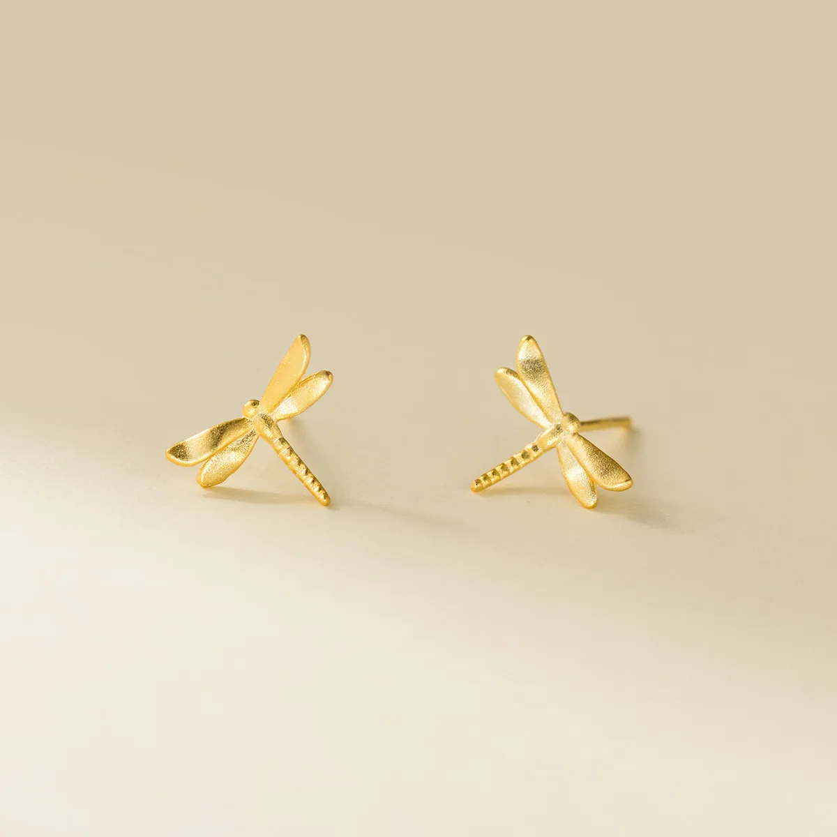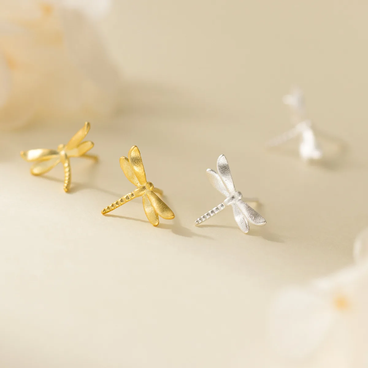 CHOZON S925 Sterling Silver Textured Dragonfly Earrings Vintage Minimalist Matte Finish Dainty Everyday Jewelry for Women