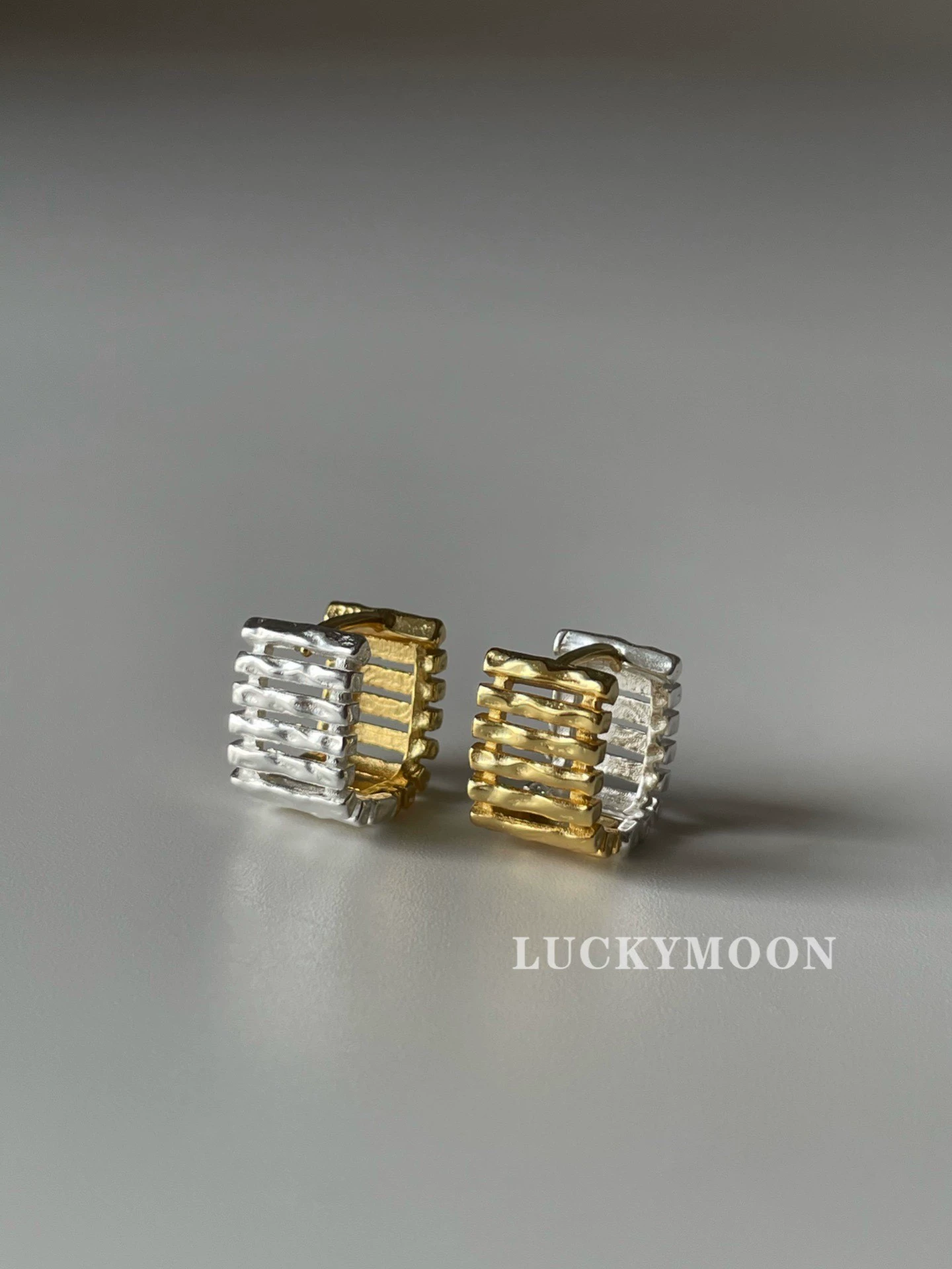 Double-sided two-color gold and silver reversible earrings and earrings S925 all-over sterling silver P032
