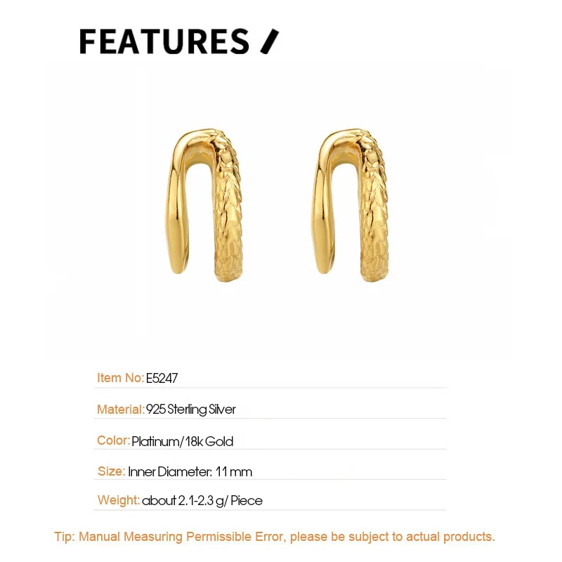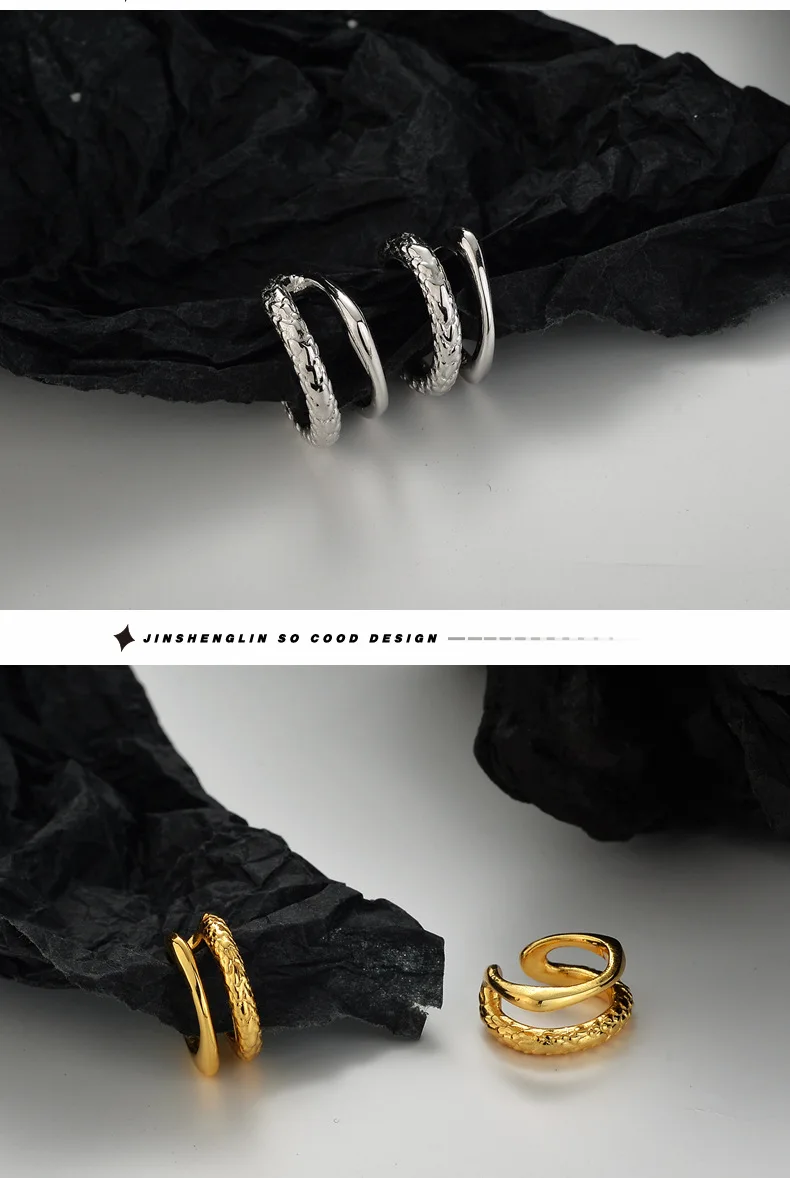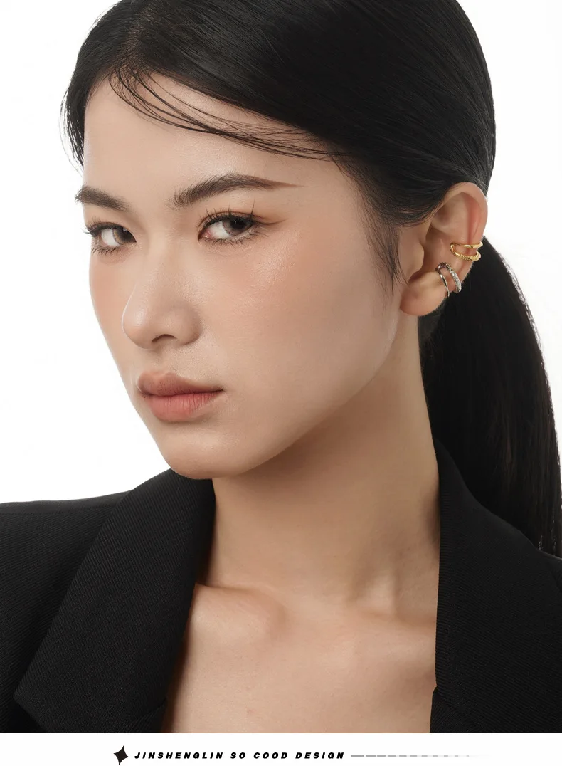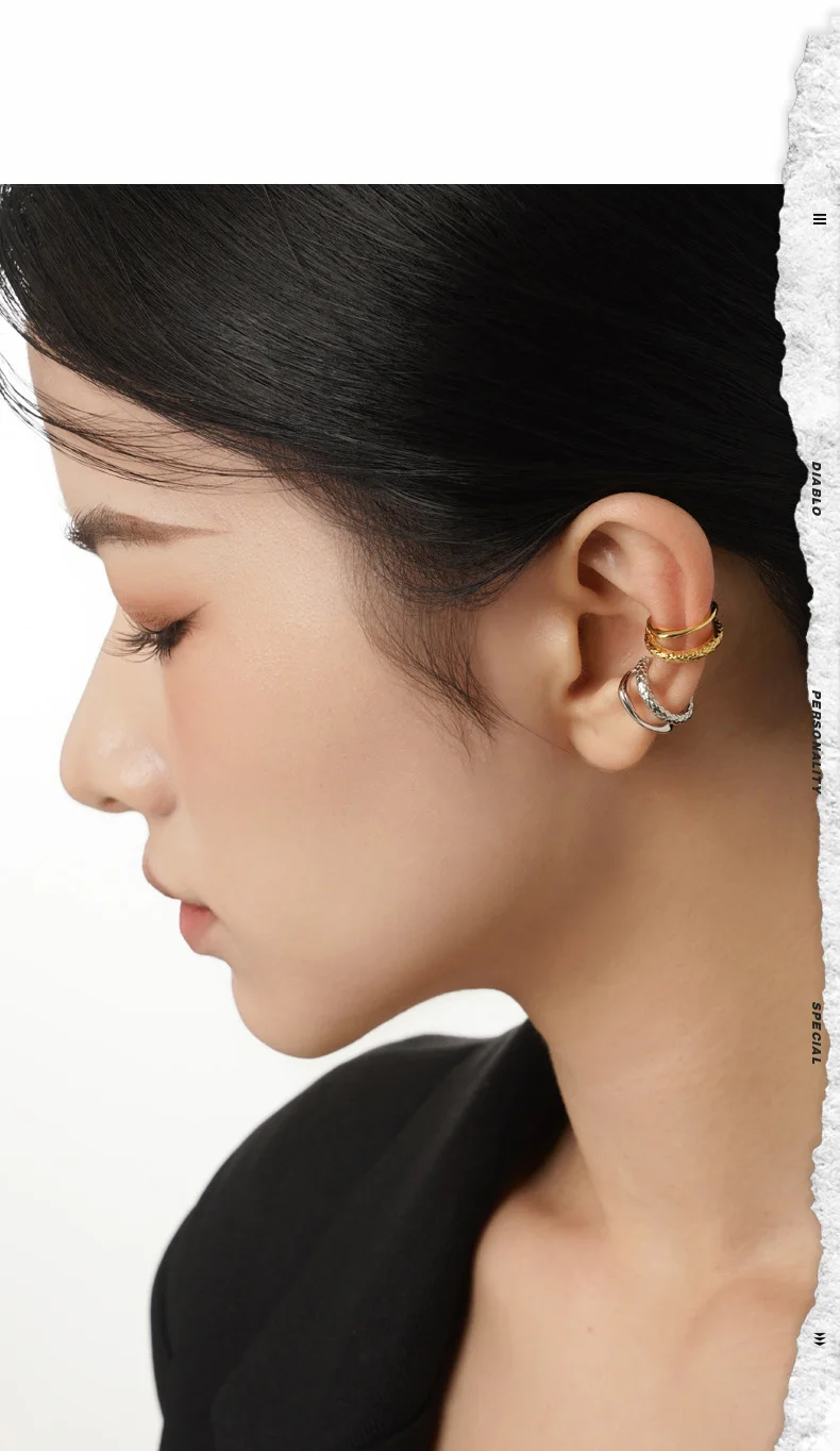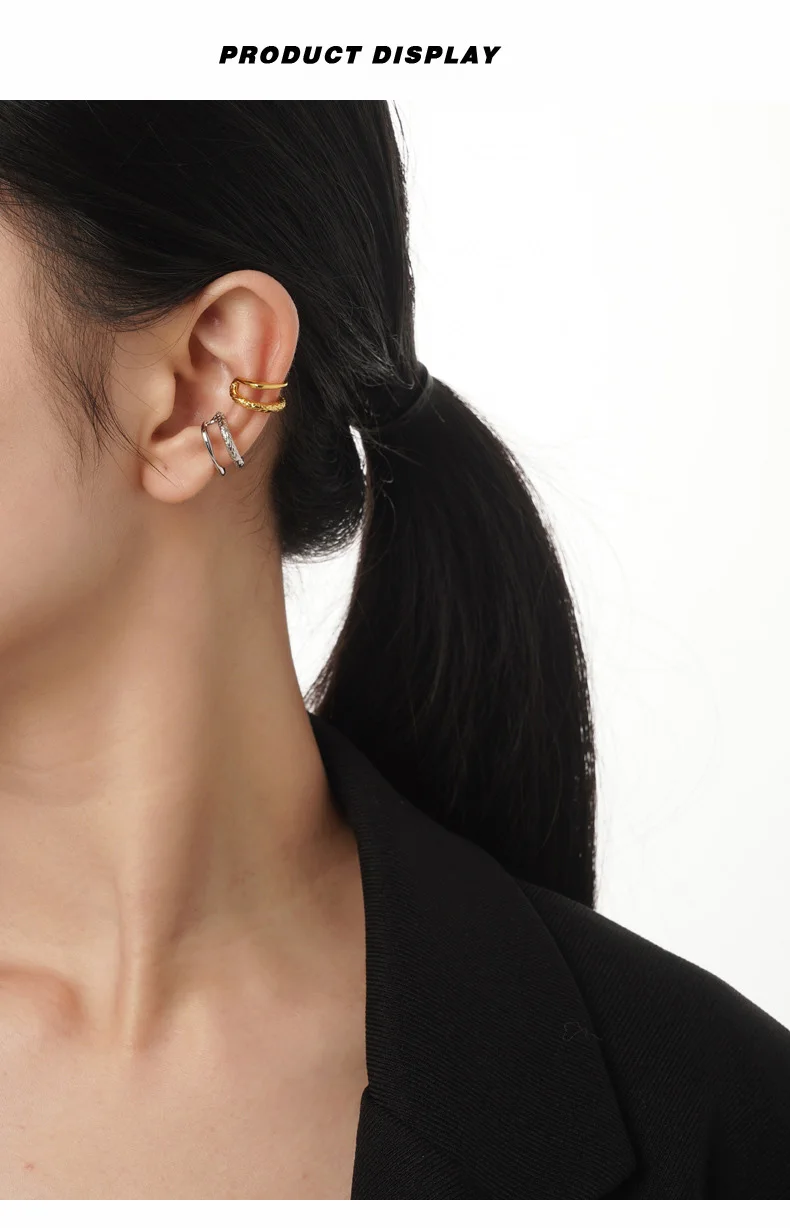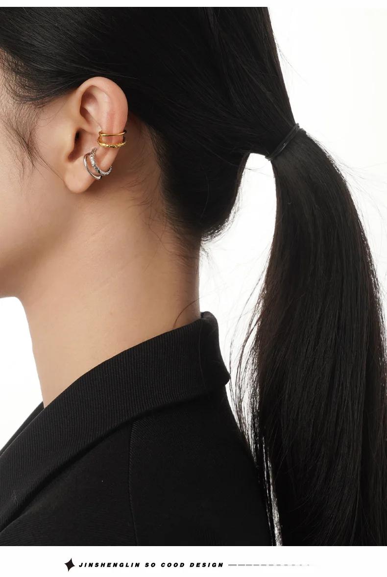 Jewel Type : F.I.N.S 1PC Chinese Style S925 Sterling Silver Double Layer Ear Clips Without Holes Texture Glossy Catilage Earring Fine Jewelry