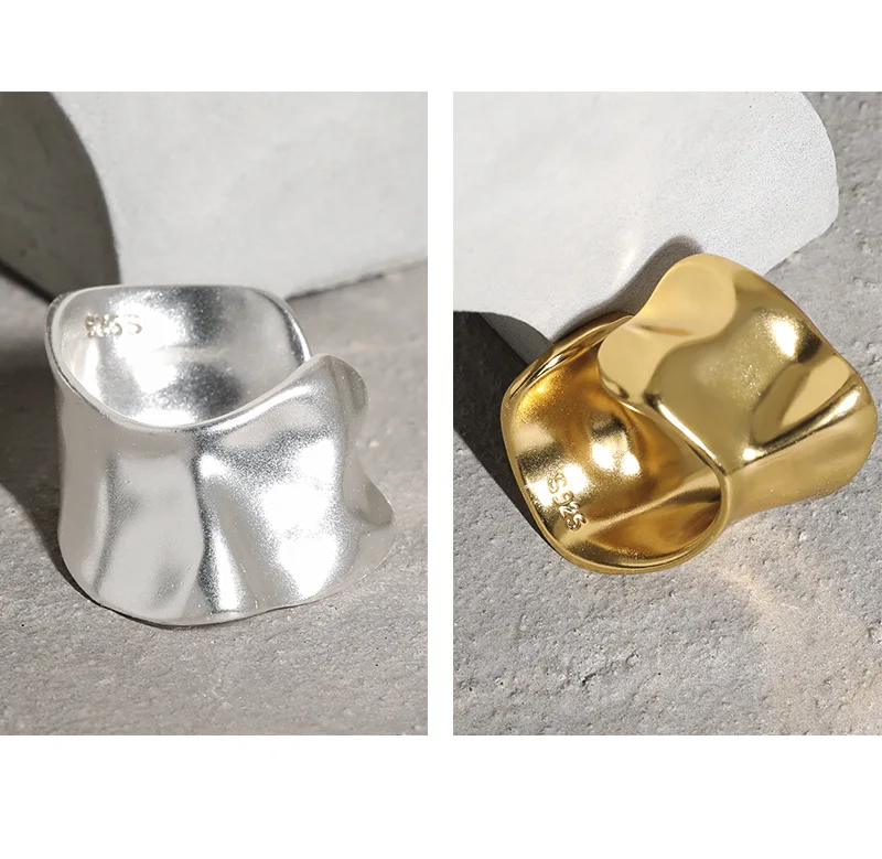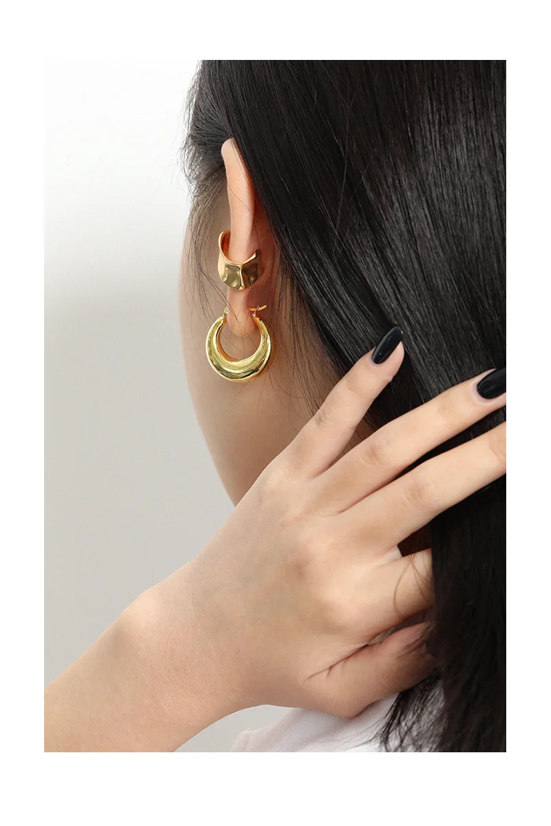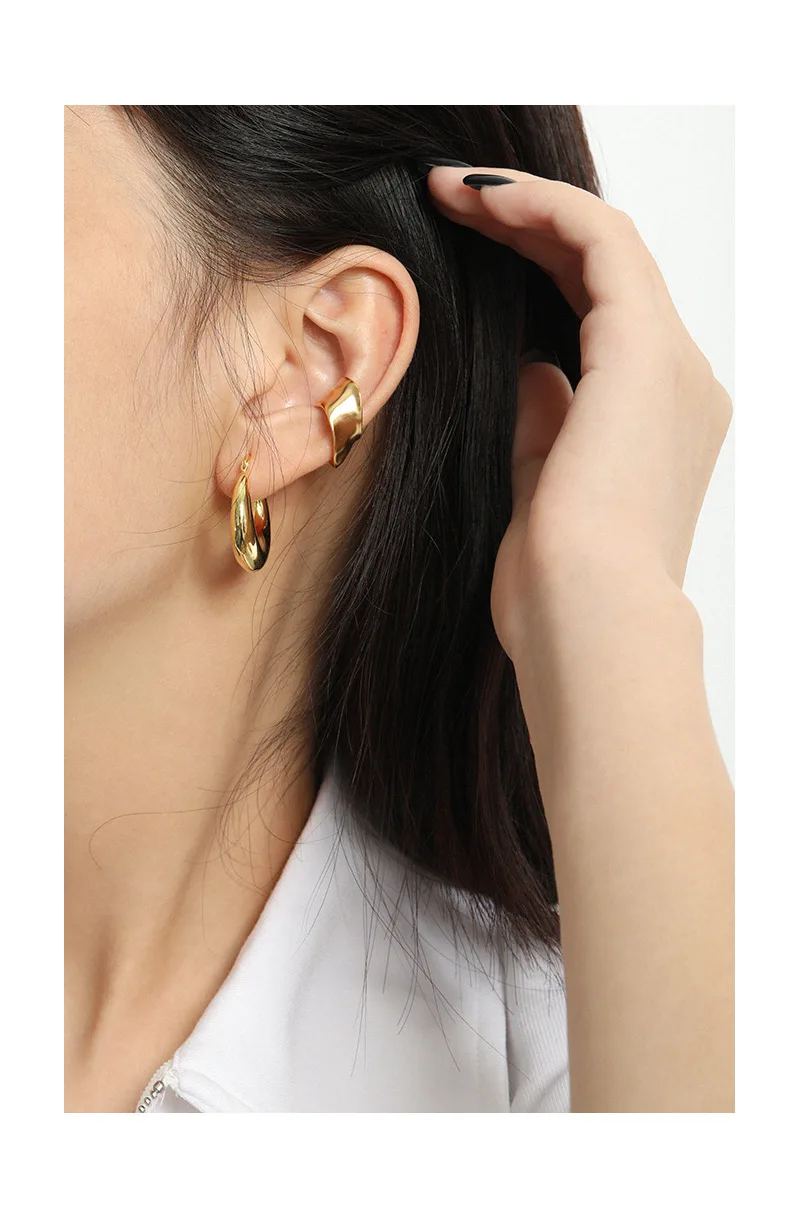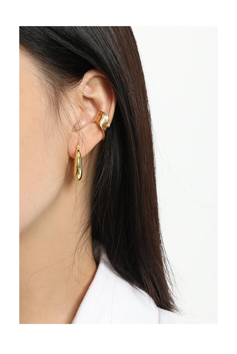 F.I.N.S 1pc Exaggerated Irregular Uneven Surface S925 Sterling Silver No Pierced Ear Clip Catilage Wide Earcuff Ear Bone Jewelry