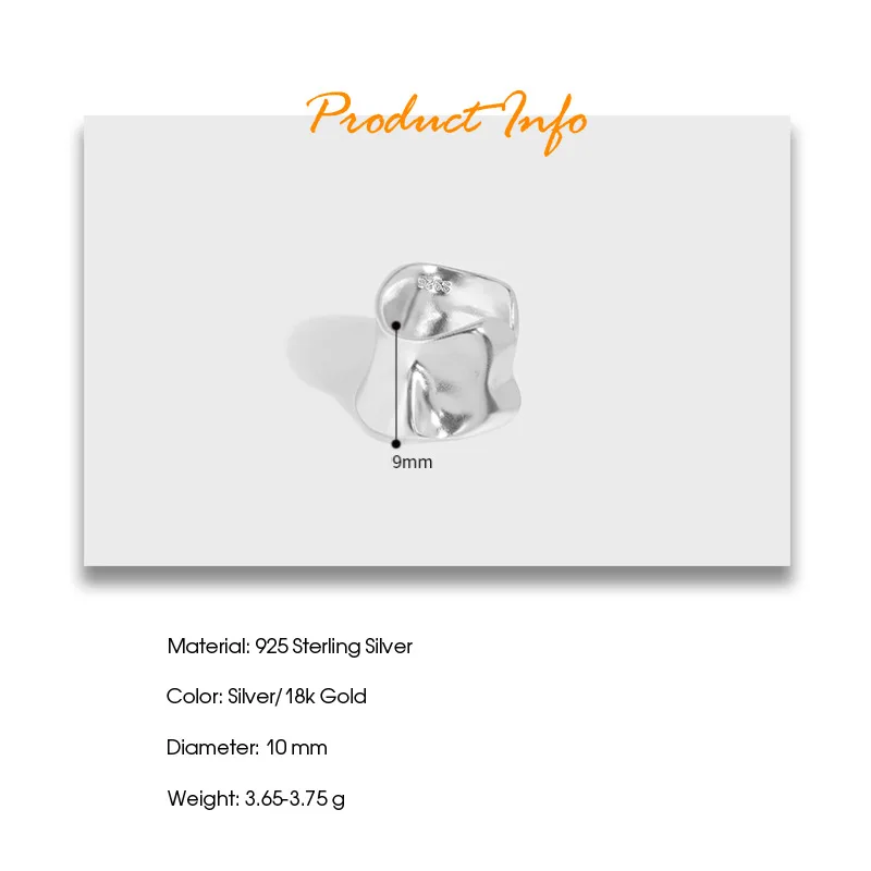 Jewel Type : F.I.N.S 1pc Exaggerated Irregular Uneven Surface S925 Sterling Silver No Pierced Ear Clip Catilage Wide Earcuff Ear Bone Jewelry