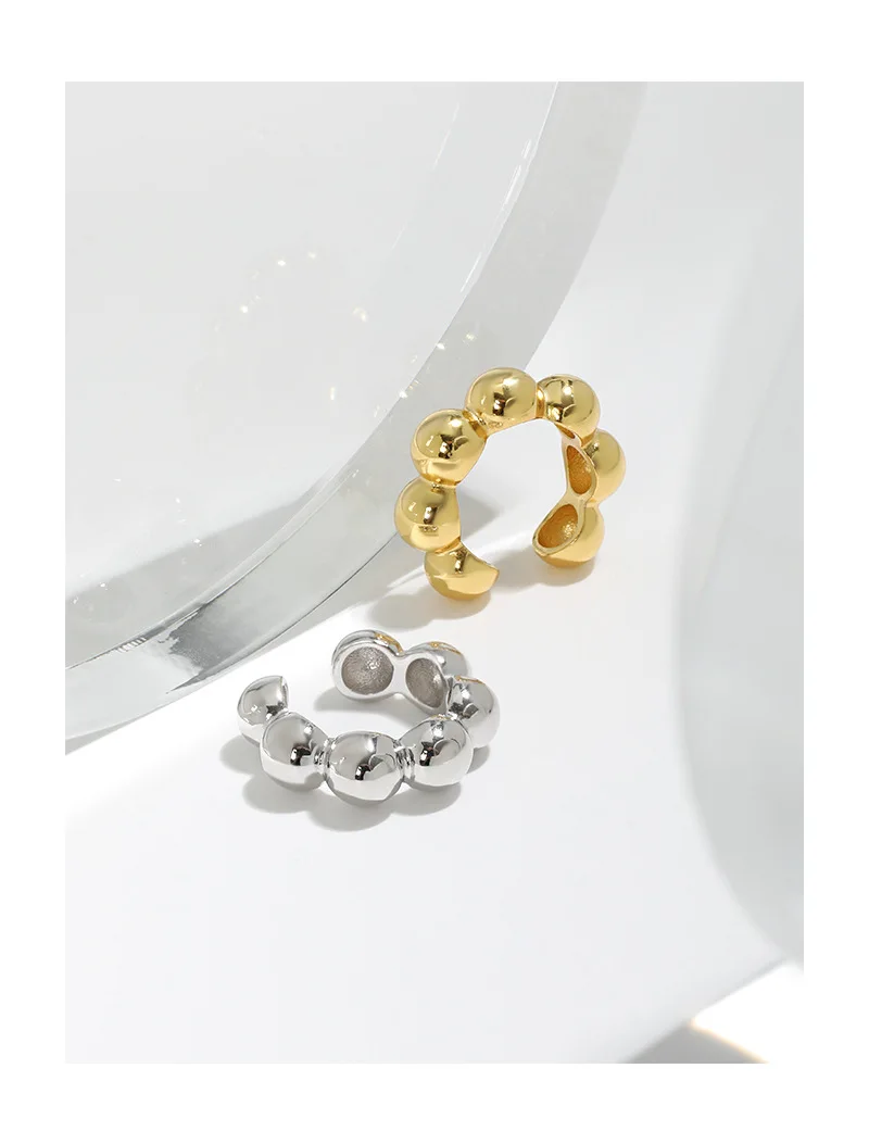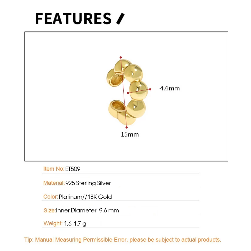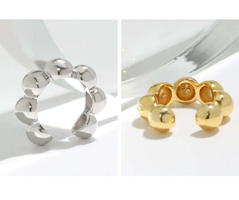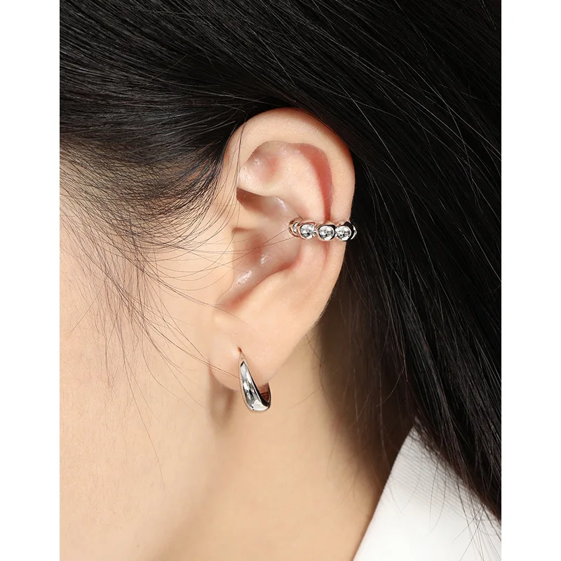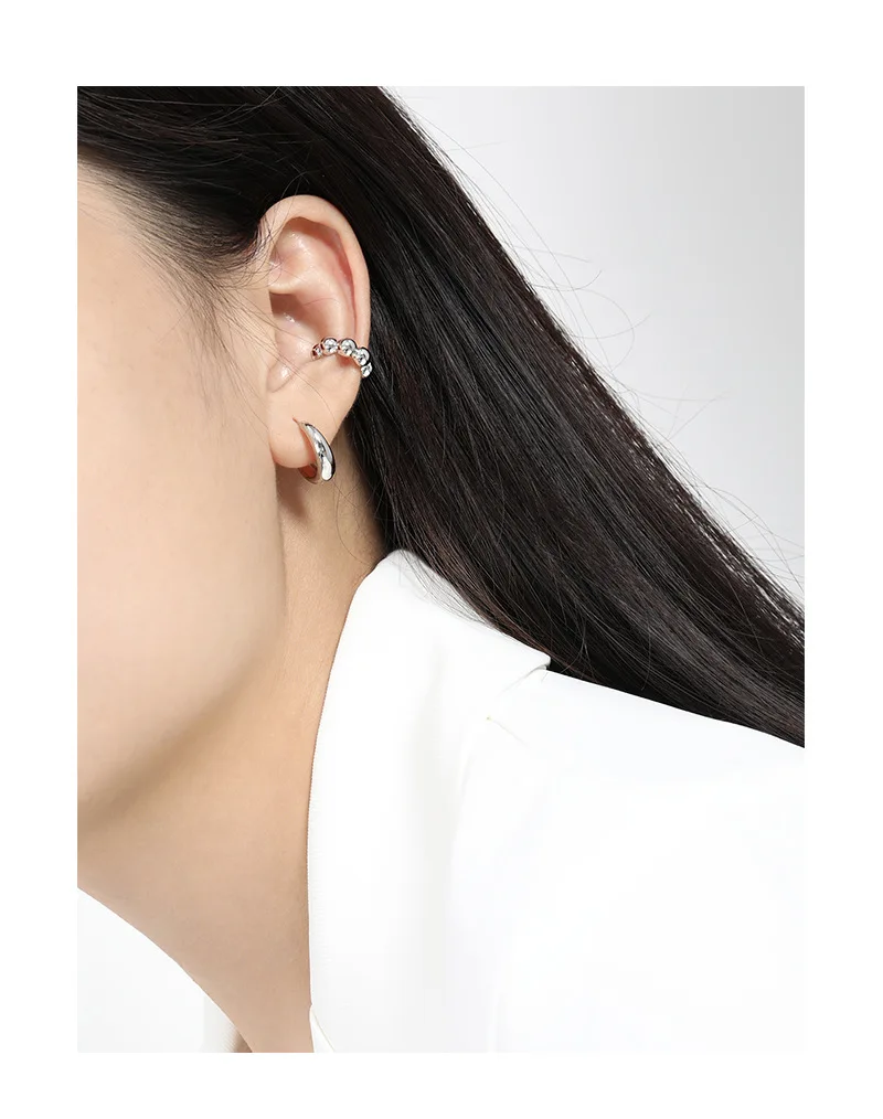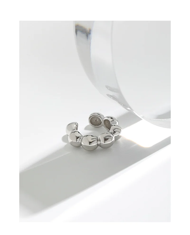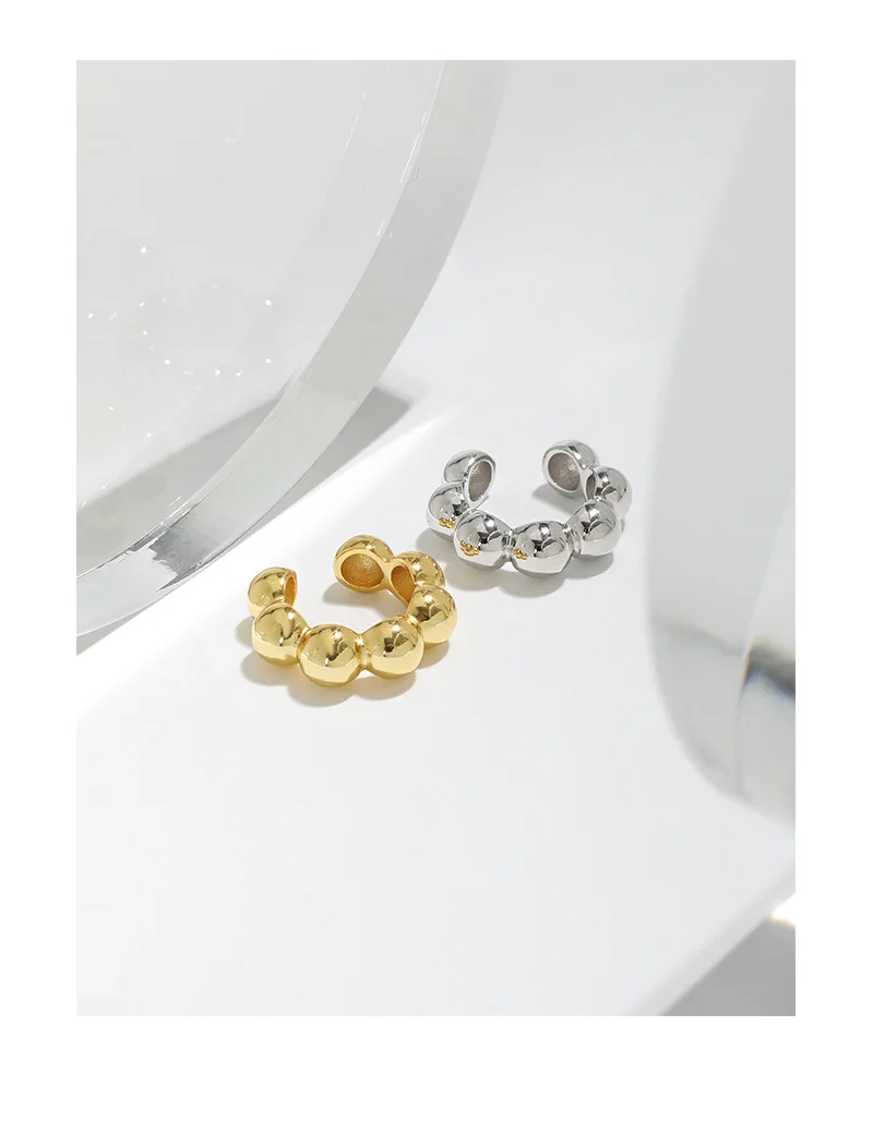 Jewel Type : F.I.N.S 1PC Geometric 100% S925 Sterling Silver Ear Cuffs for Non Pierced Glossy Bead Ball Clip Earrings without Hole Fine Jewel