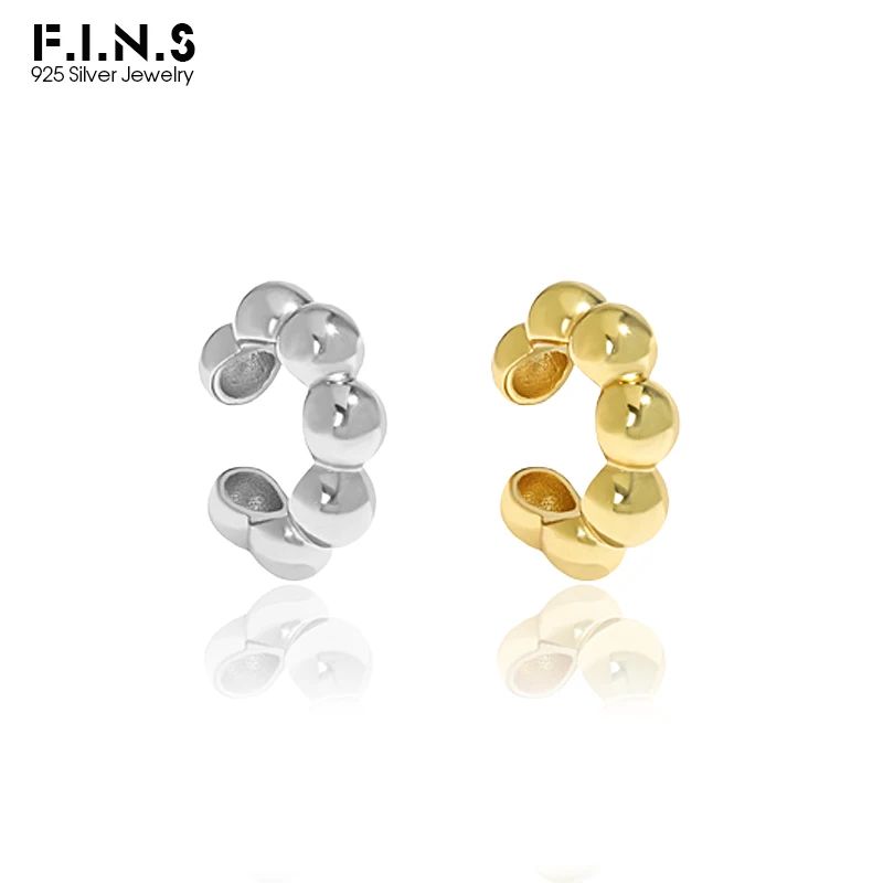 F.I.N.S 1PC Geometric 100% S925 Sterling Silver Ear Cuffs for Non Pierced Glossy Bead Ball Clip Earrings without Hole Fine Jewel