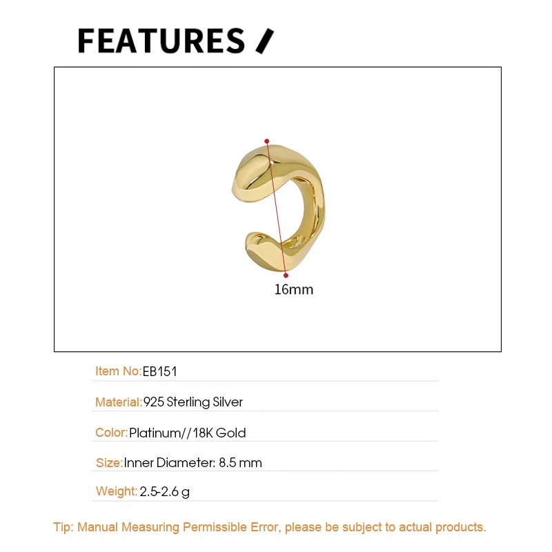 Jewel Type : F.I.N.S 1PC Minimalism Irregular S925 Sterling Silver Earrings without Ear Hole Fake Piercing Earcuff Stackable Catilage Jewel