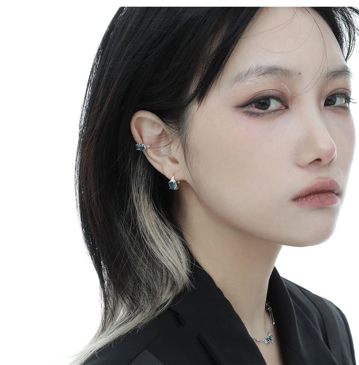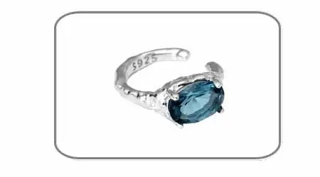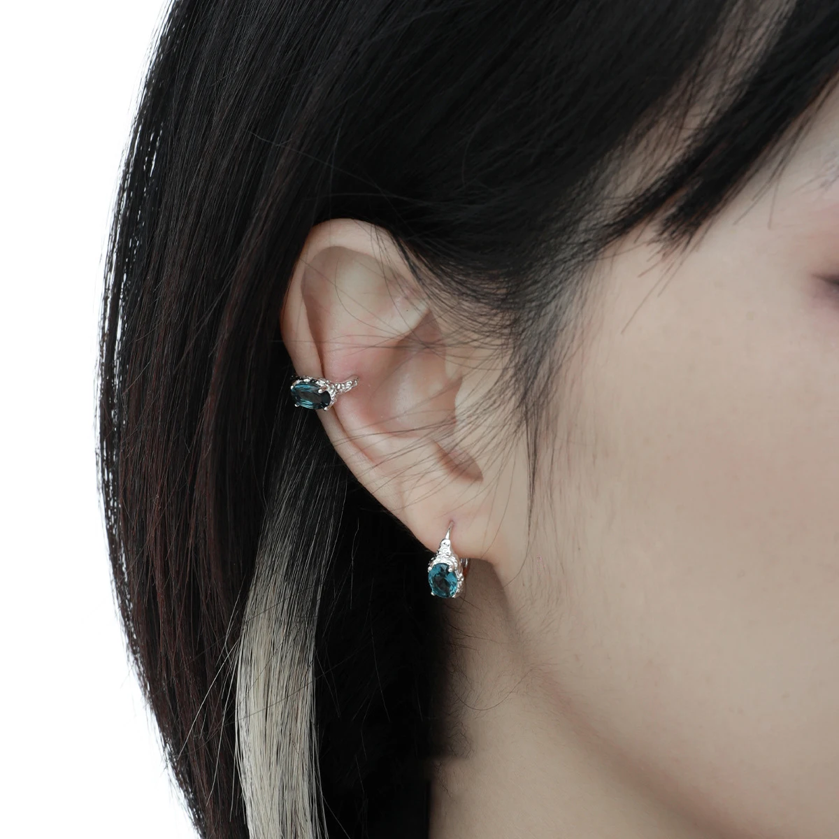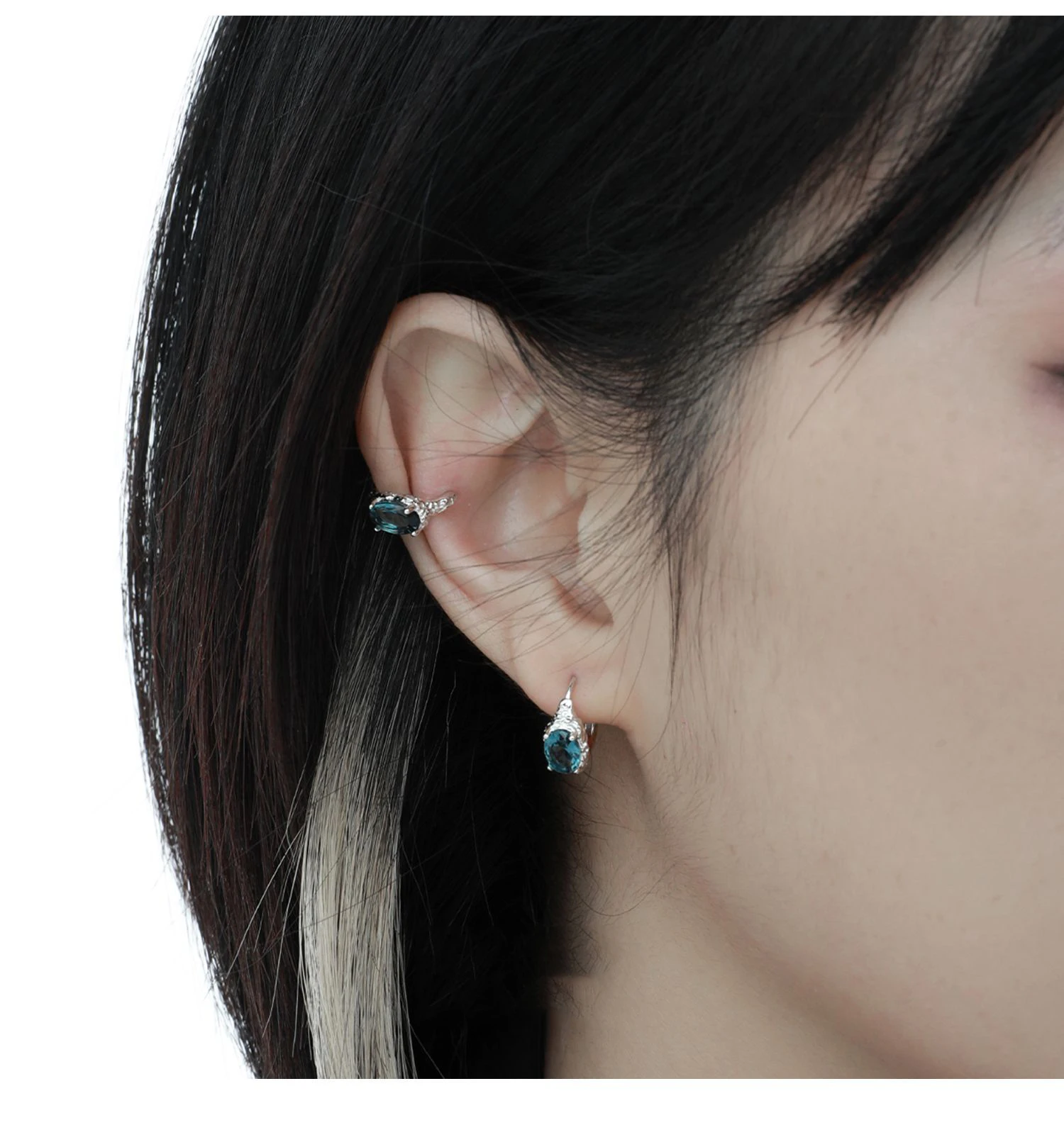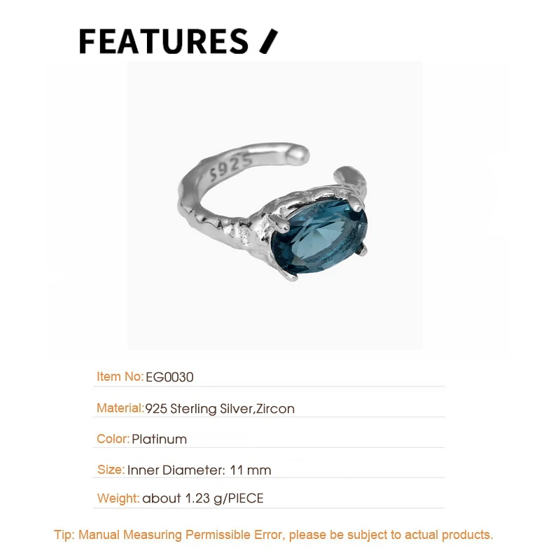 Jewel Type : F.I.N.S 1PC Minimalist Oval Blue Zircon S925 Sterling Silver Clip Earring For No Ear Hole Oval Earcuff Catilage Fine Jewelry