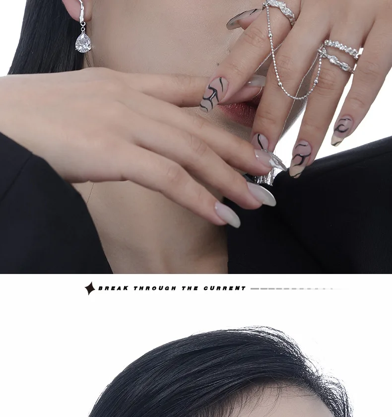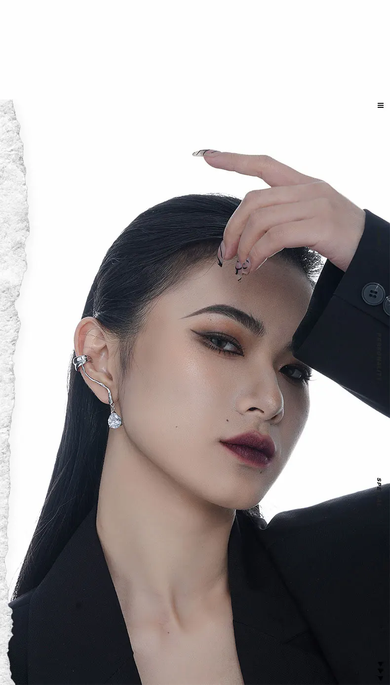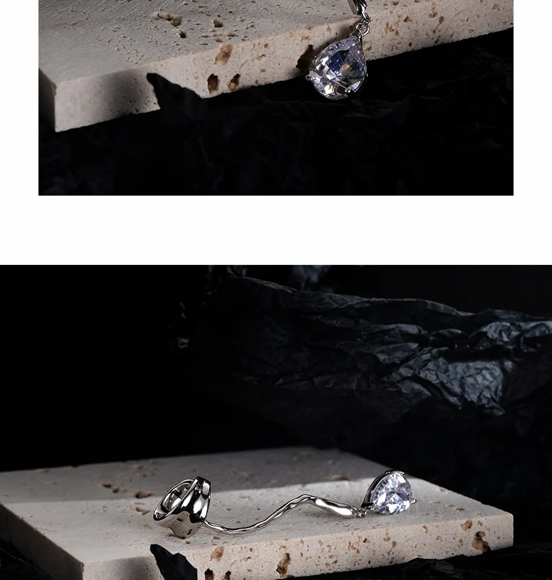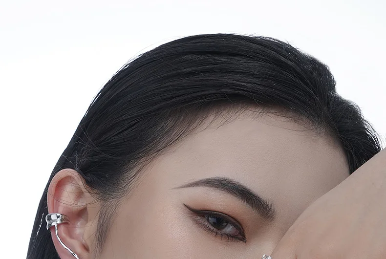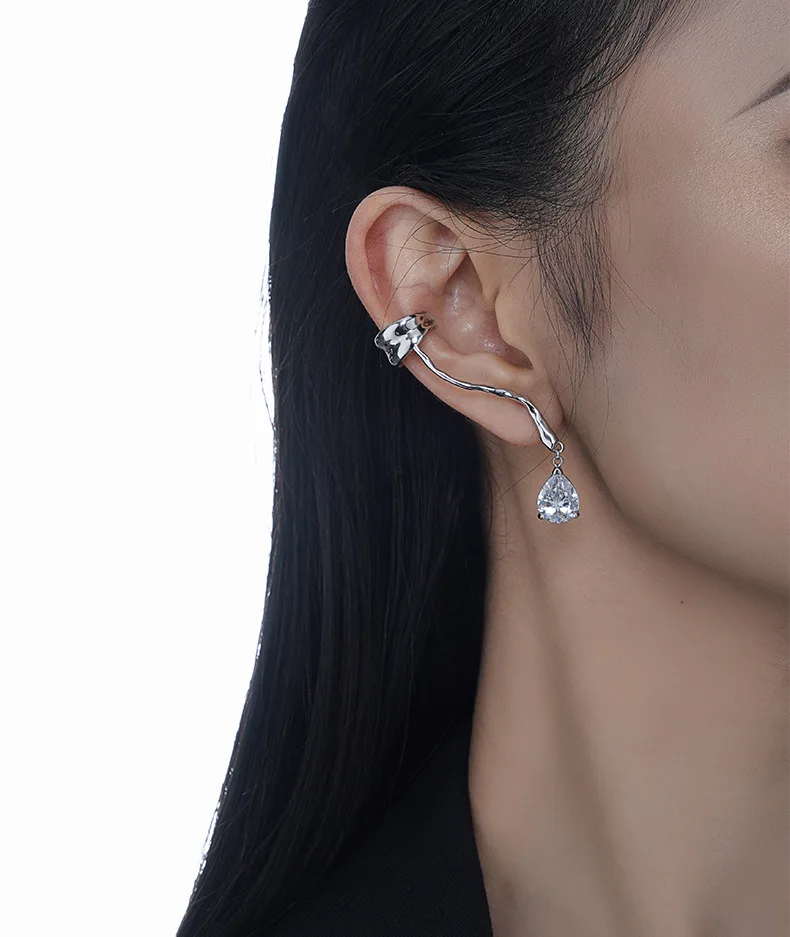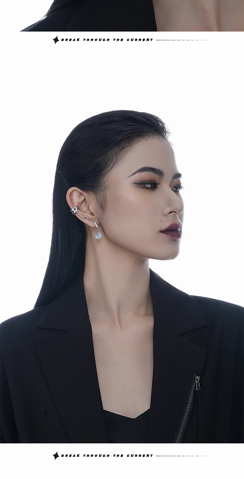 Jewel Type : F.I.N.S 1PC Original 925 Sterling Silver Ear Clip on Earrings Long Line Zircon Fake Piercing Catilage Silver 925 Fine Jewelry
