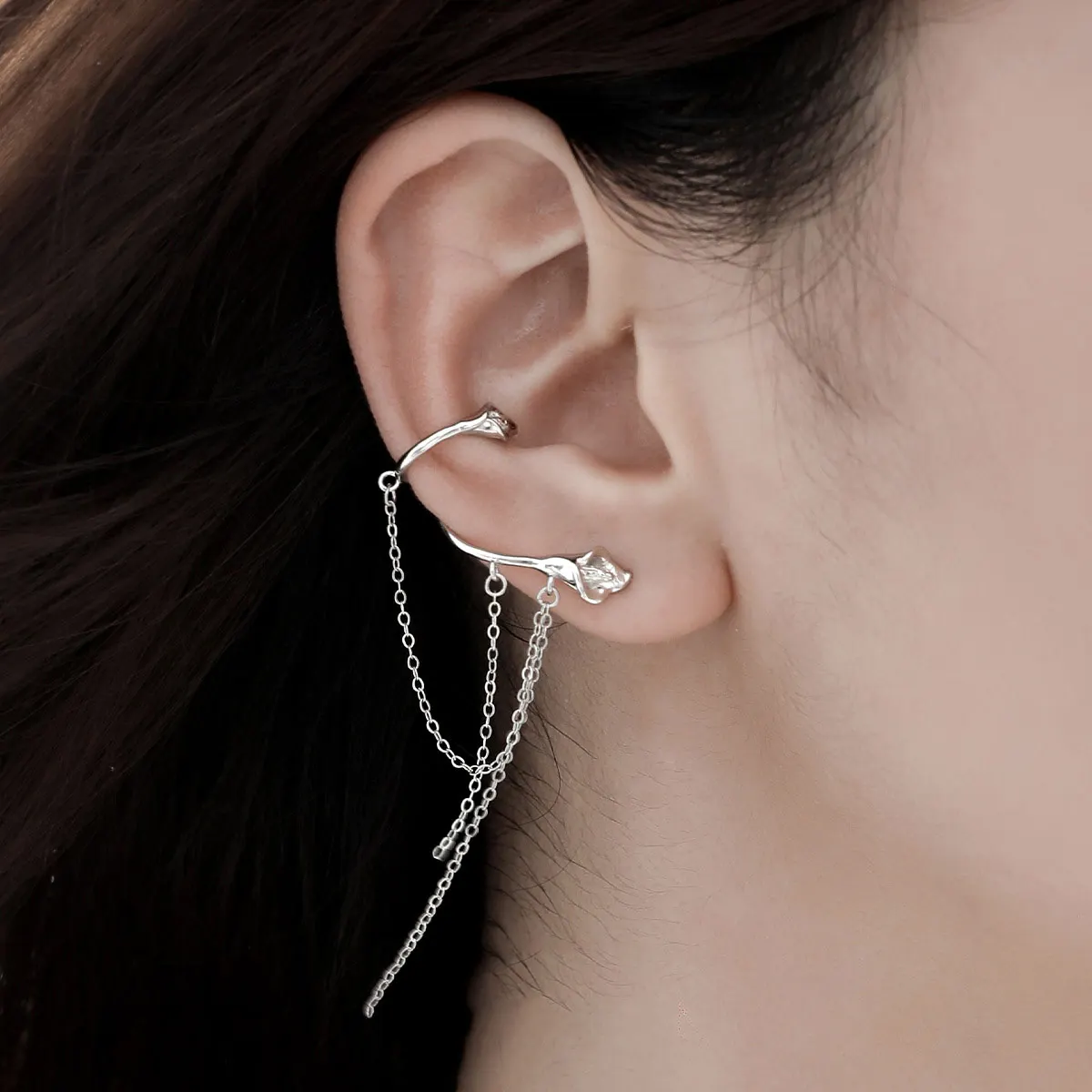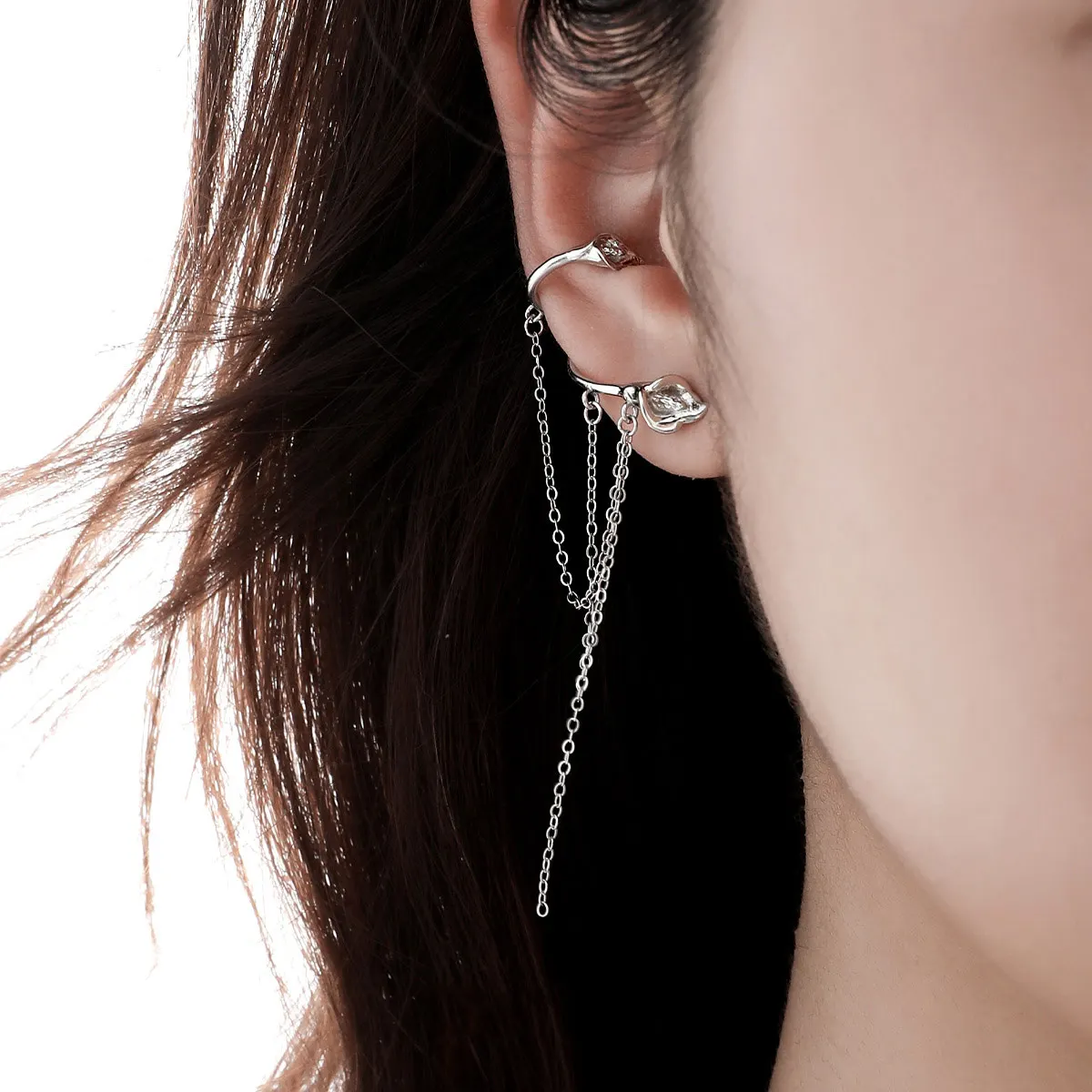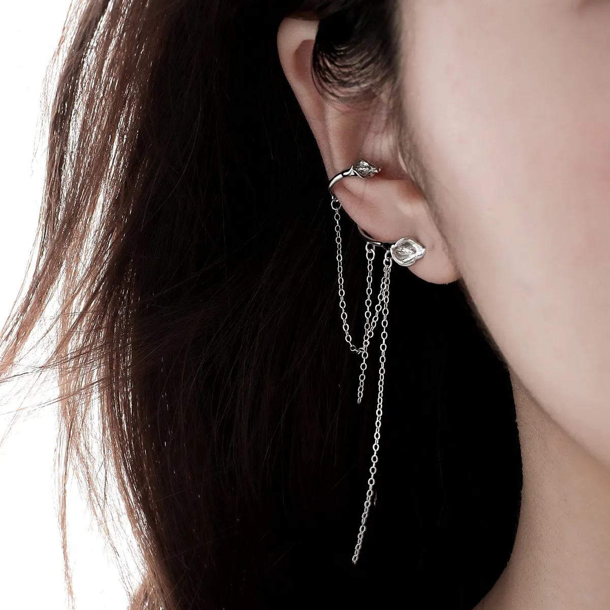 Jewel Type : F.I.N.S 1PC Original Calla Lily S925 Sterling Silver Clip Earring Minimalist Trendy Fringe Tassel Chain Ear Cuff Catilage Jewels