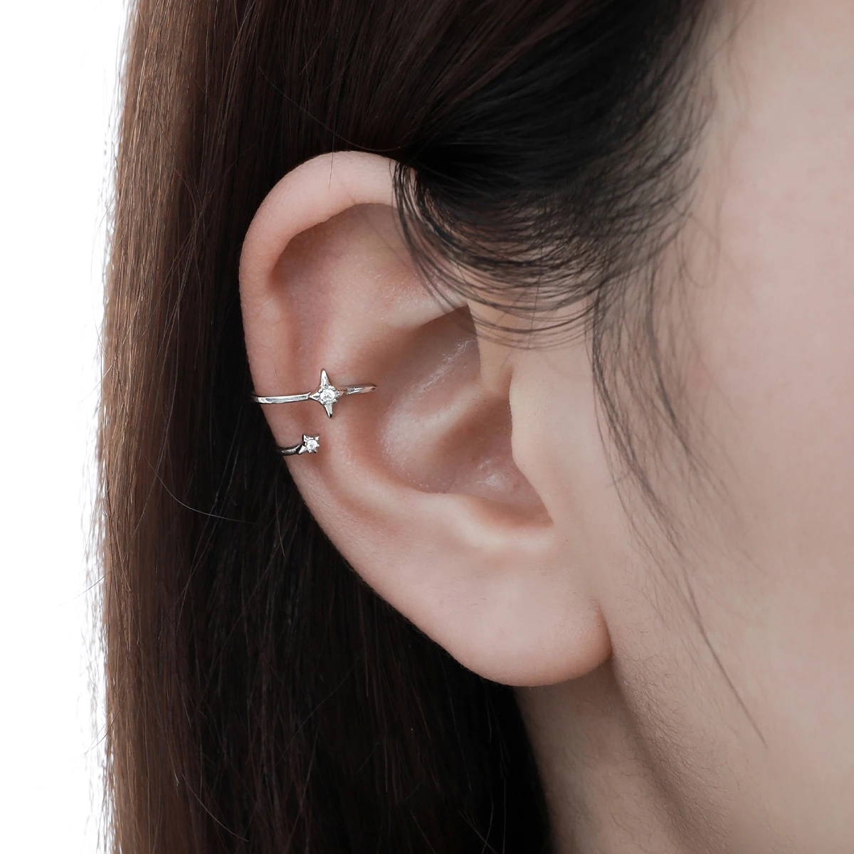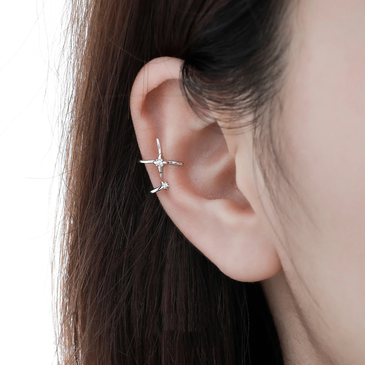 Jewel Type : F.I.N.S 1PC Original S925 Sterling Silver Cross Star Clip Earring Simple Line Zircon Earcuff Catilage Fine Jewelry Anti-Allergy
