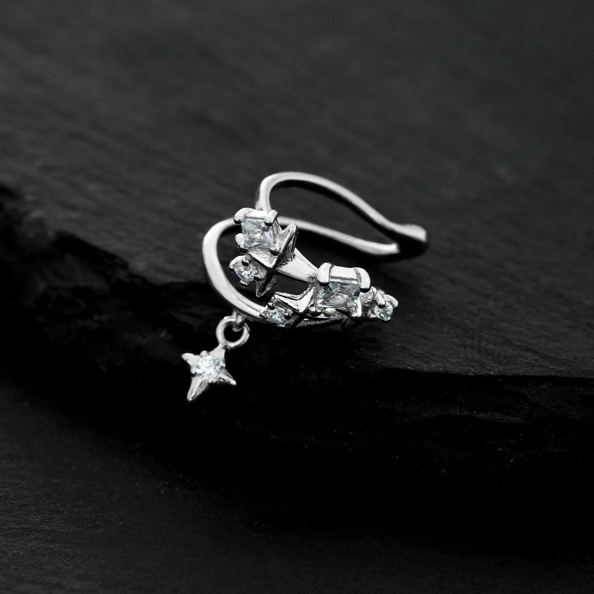 Jewel Type : F.I.N.S 1PC Original Star Zirconia S925 Sterling Silver Clip Earring Simple Earcuff Catilage Fashion Fine Jewelry Accessories