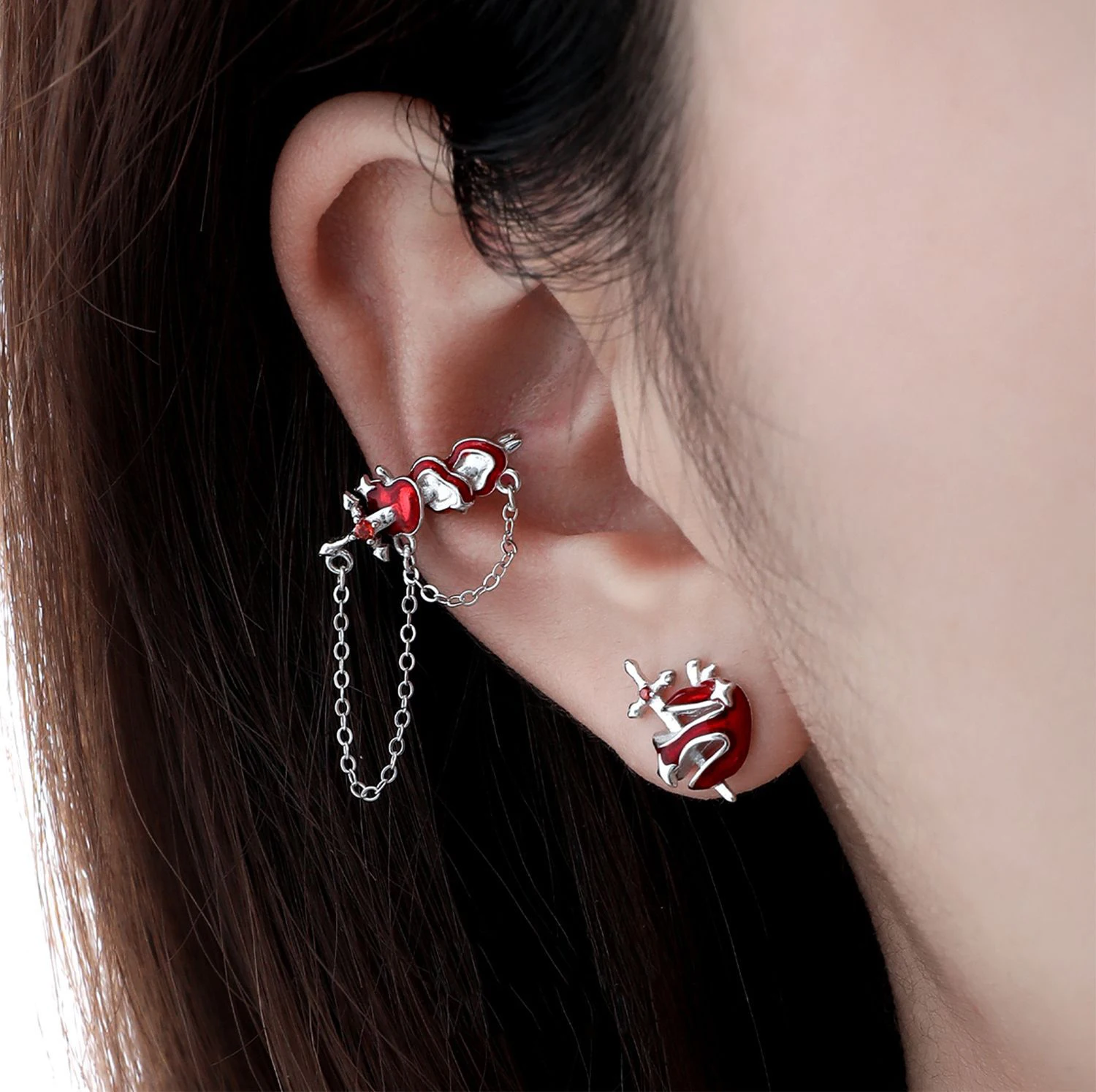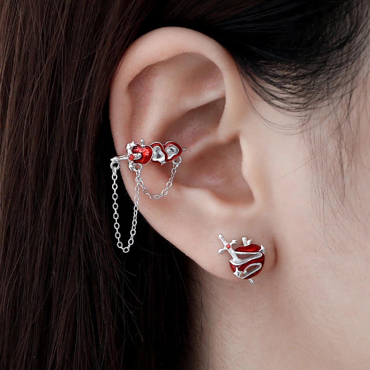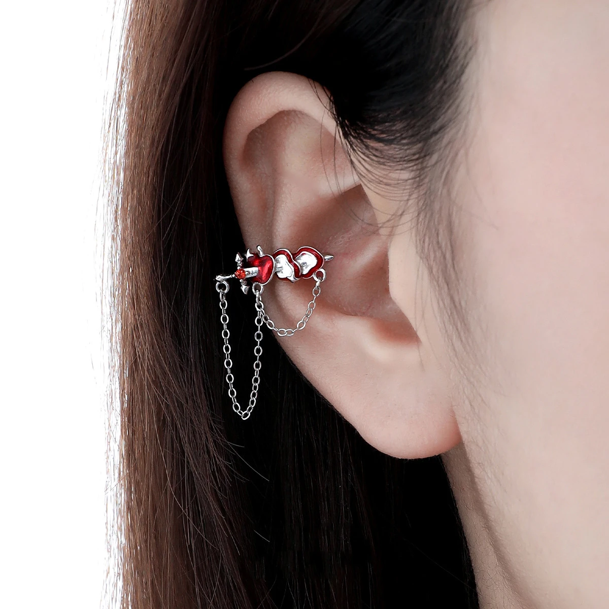F.I.N.S 1Piece Original Sword-Shaped Apple Pure S925 Sterling Silver Clip Earring Fashion Chain Tassel Catilage Fine Jewelry