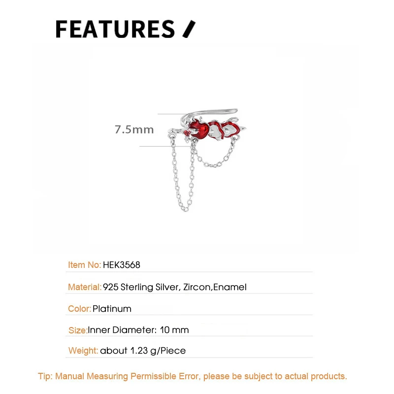 Jewel Type : F.I.N.S 1Piece Original Sword-Shaped Apple Pure S925 Sterling Silver Clip Earring Fashion Chain Tassel Catilage Fine Jewelry