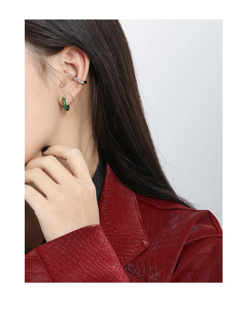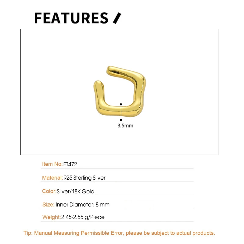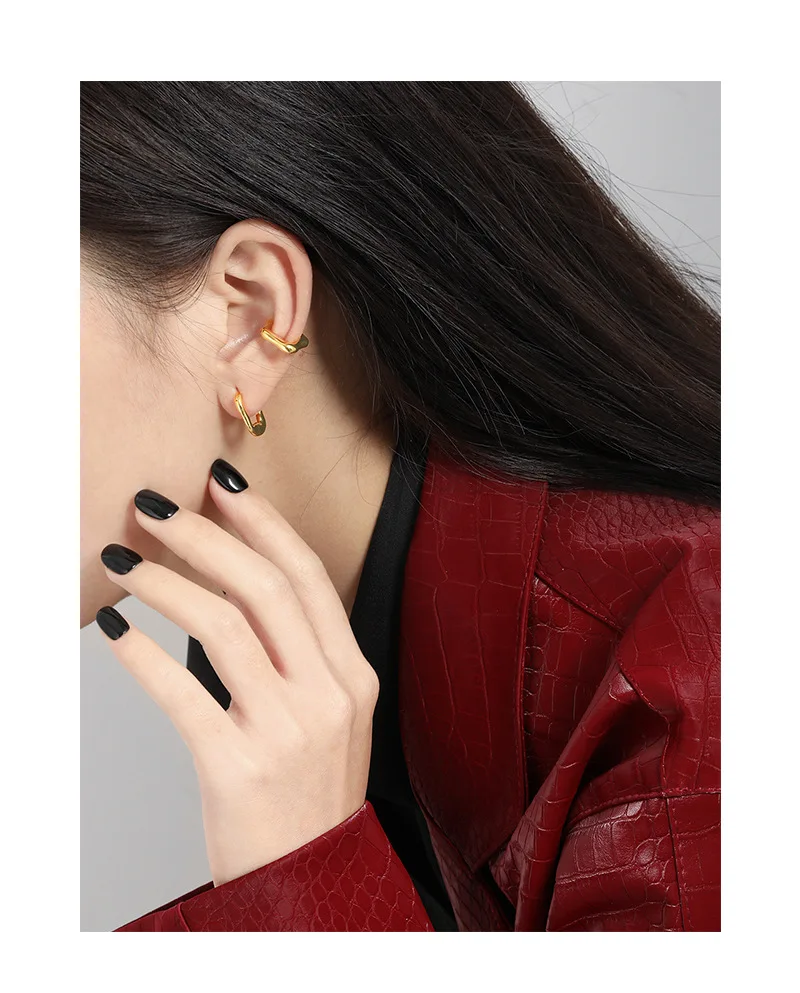 Jewel Type : F.I.N.S 1Piece Silver 925 Earrings without Ear Hole Smooth Geometric Sterling Silver Ear Cuff Fake Piercing Catilage Earrings