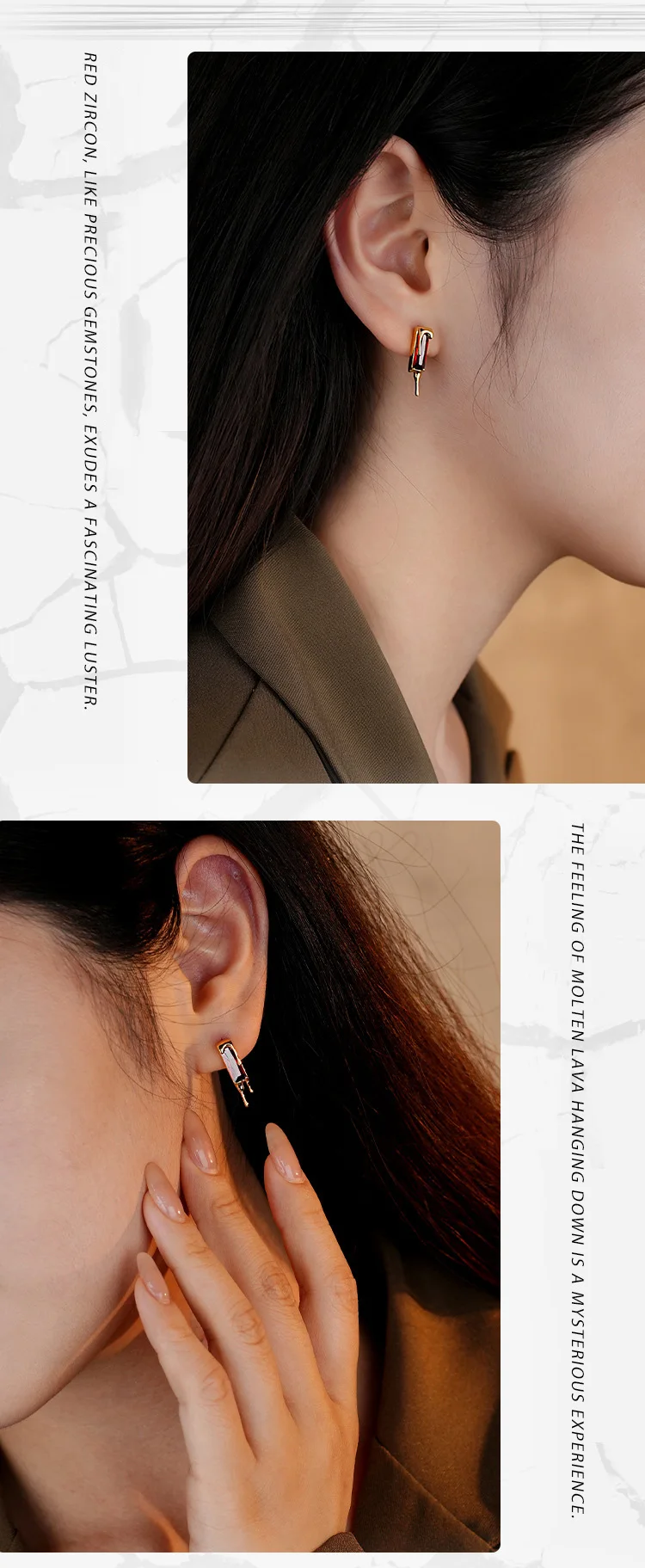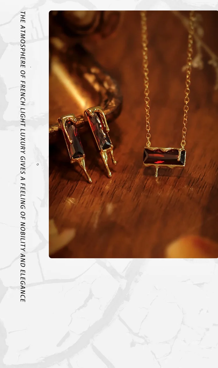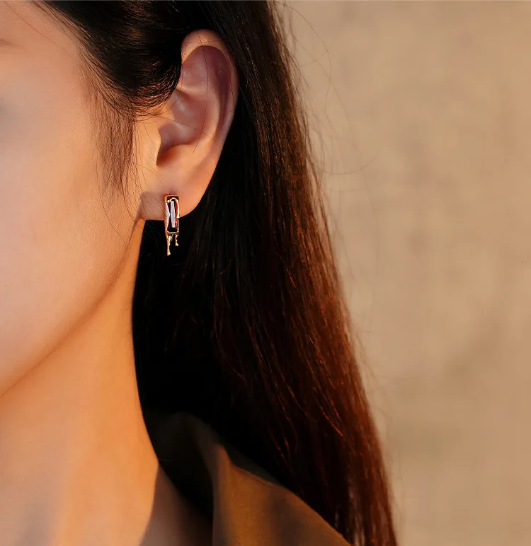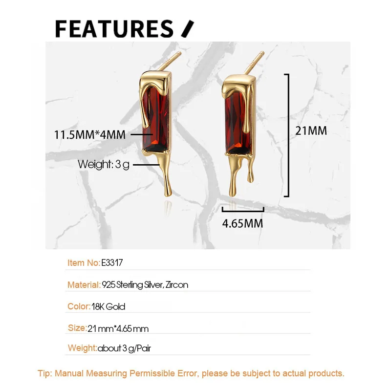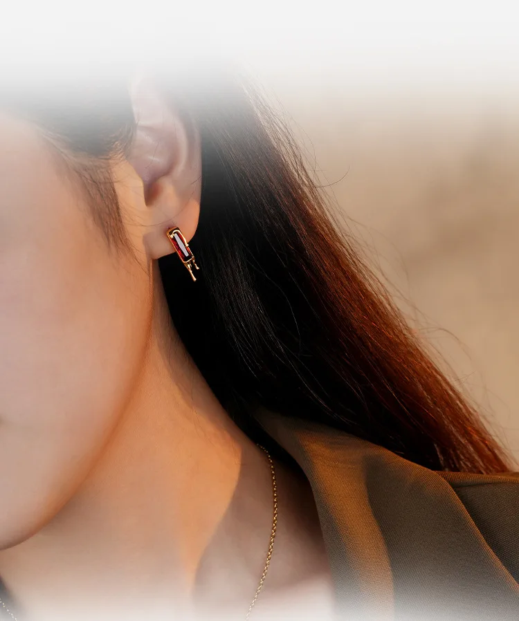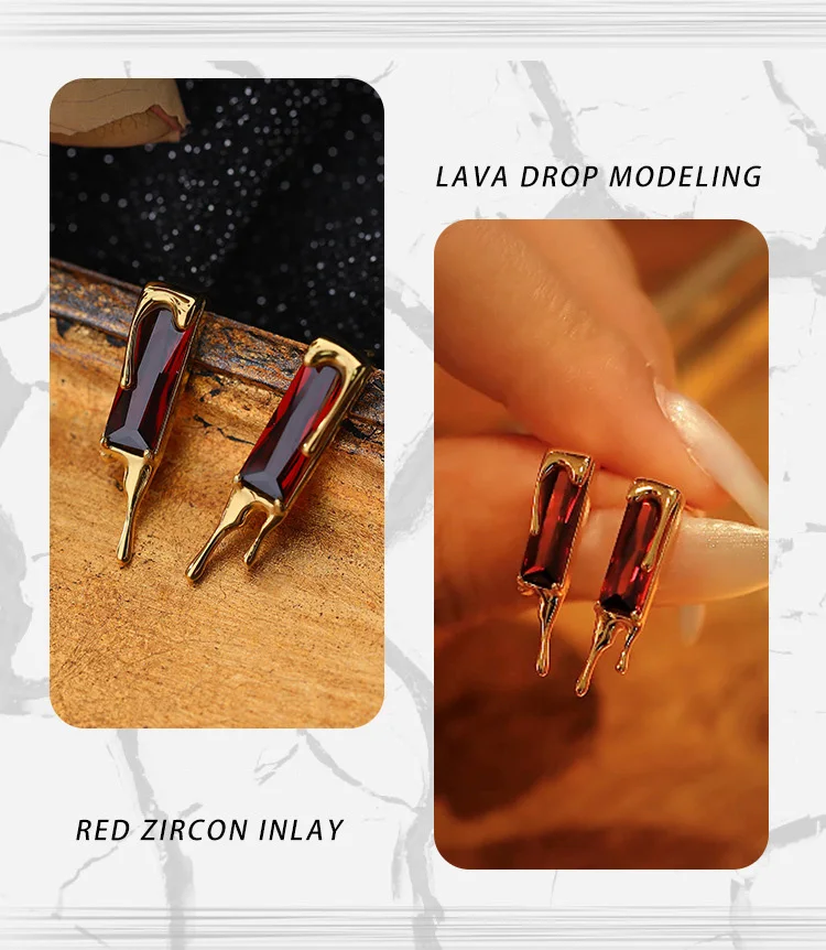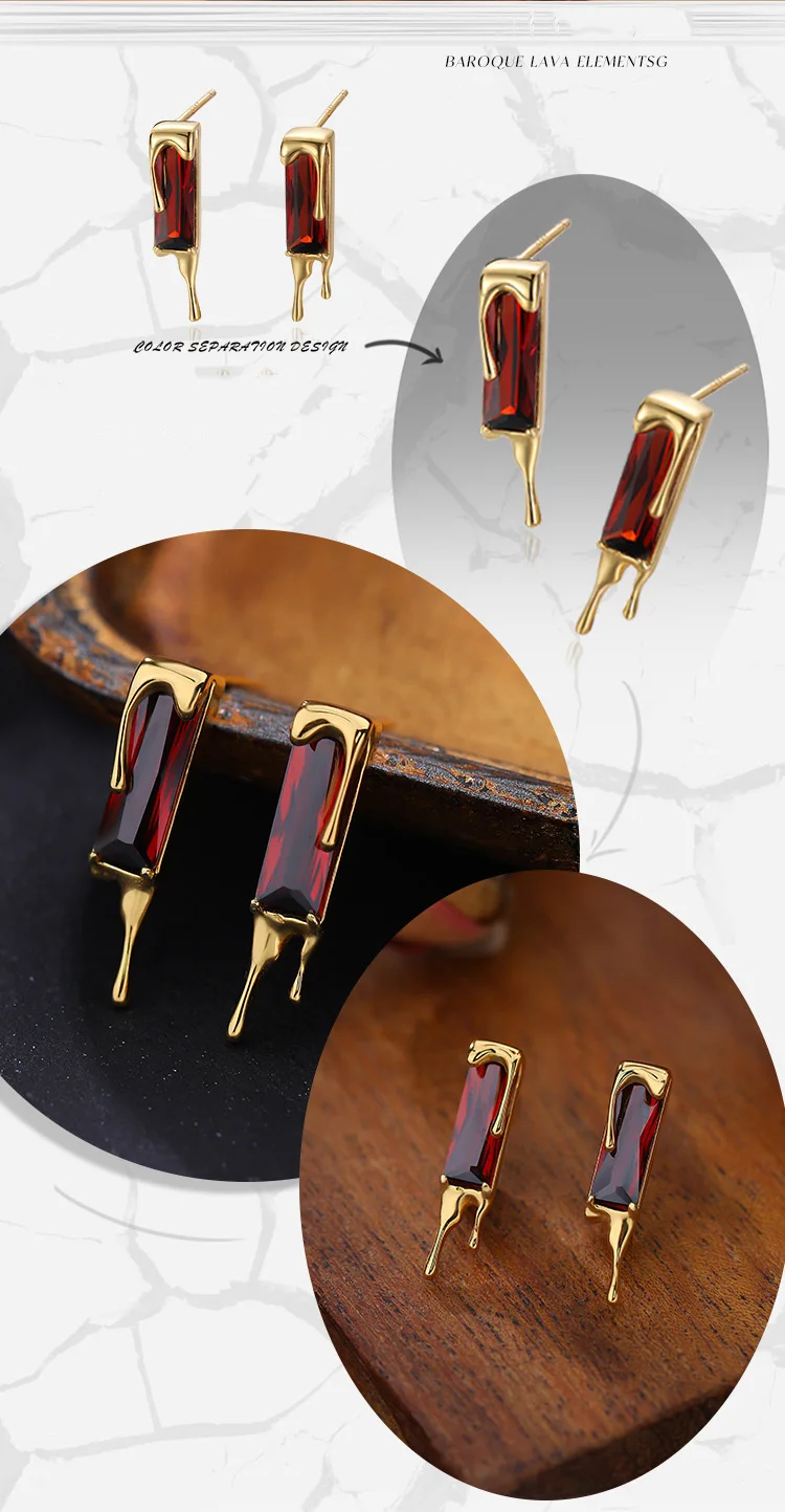 Jewel Type : F.I.N.S 925 Sterling Silver Lava Red Cubic Zirconia Earrings Retro Style Geometric Square Piercing Ear Studs Fine Jewelry Gifts