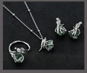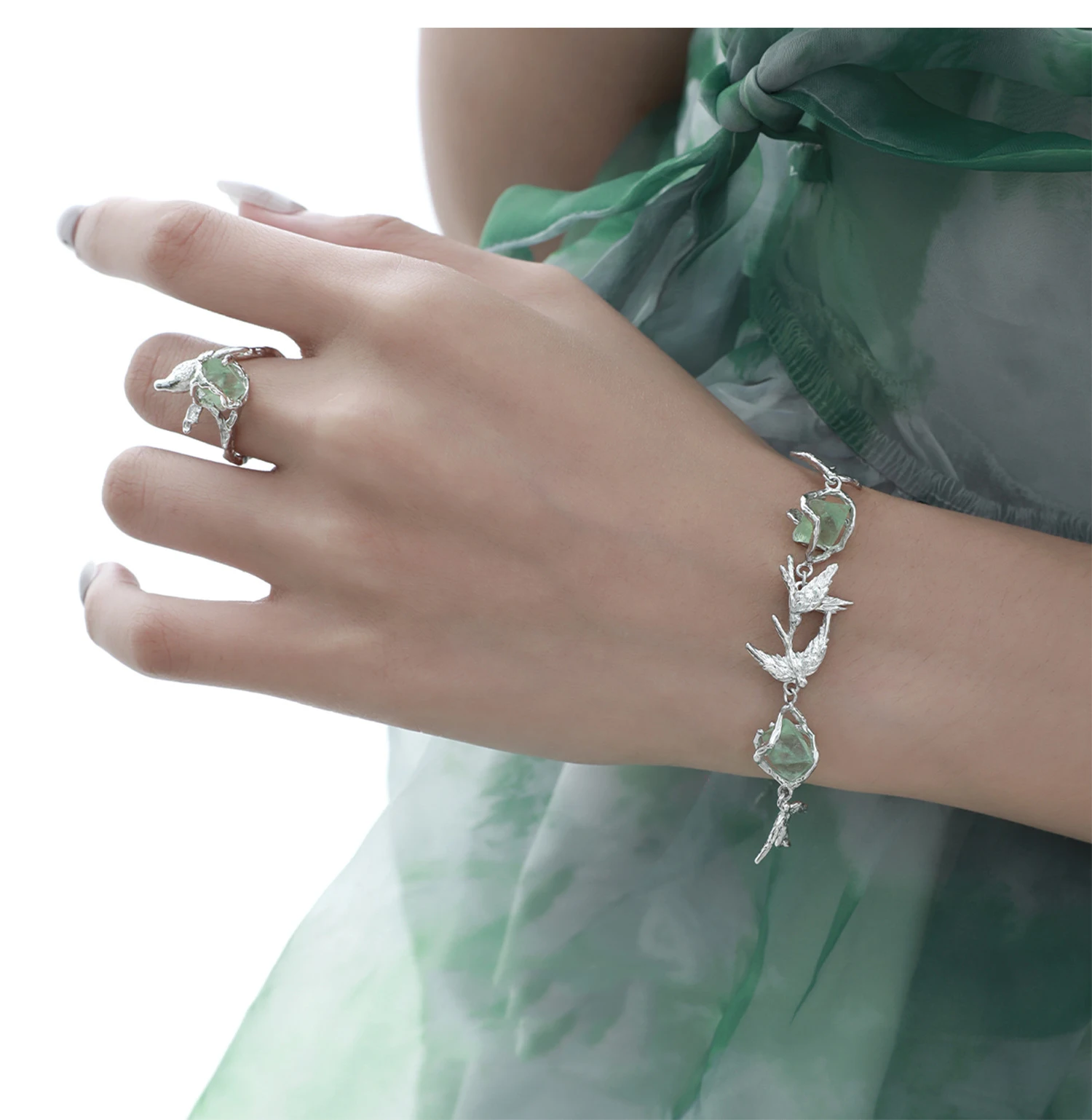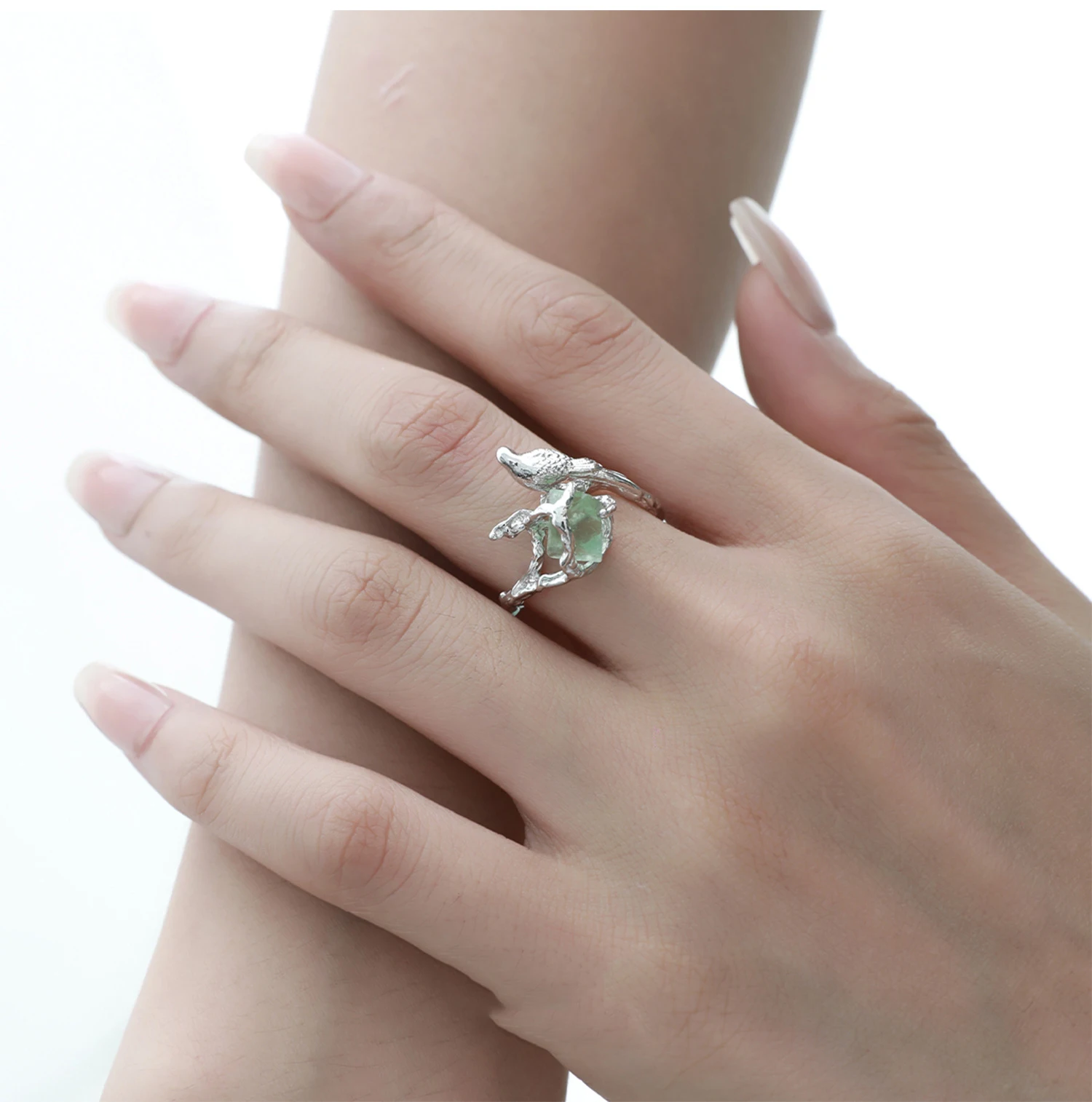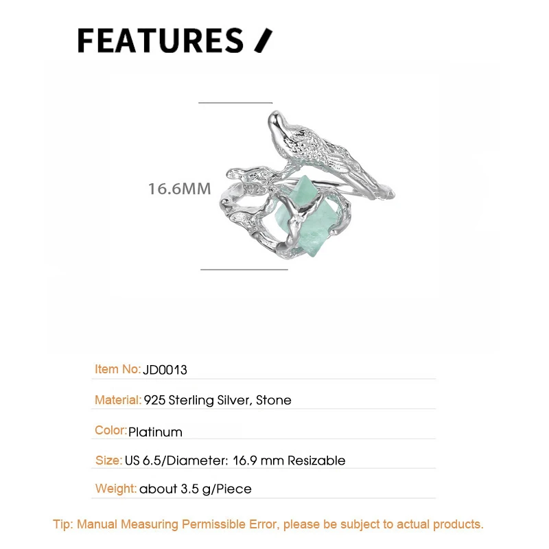 F.I.N.S Bird Fluorite S925 Sterling Silver Ring Irregular Green Stone Open Adjustable Mid Finger Fashion Fine Jewelry Gifts