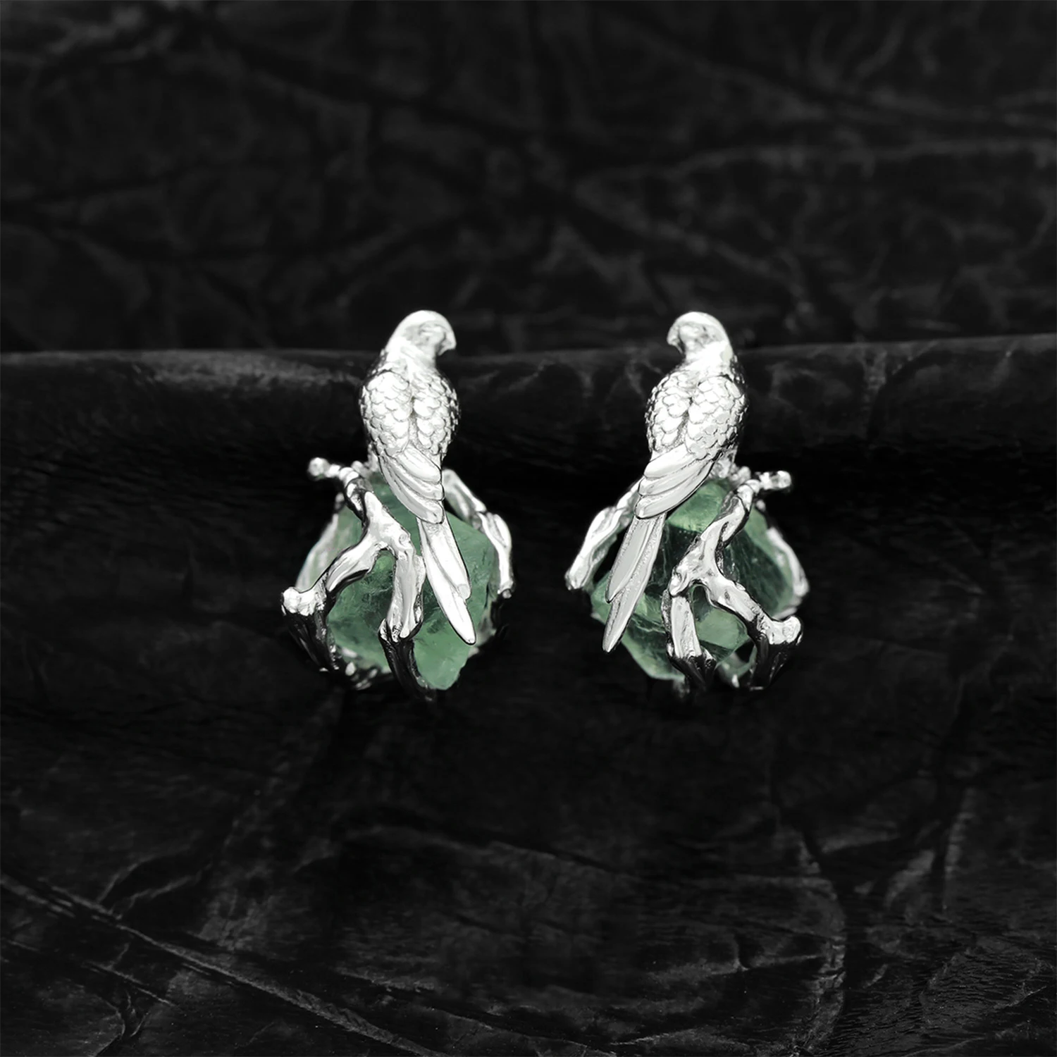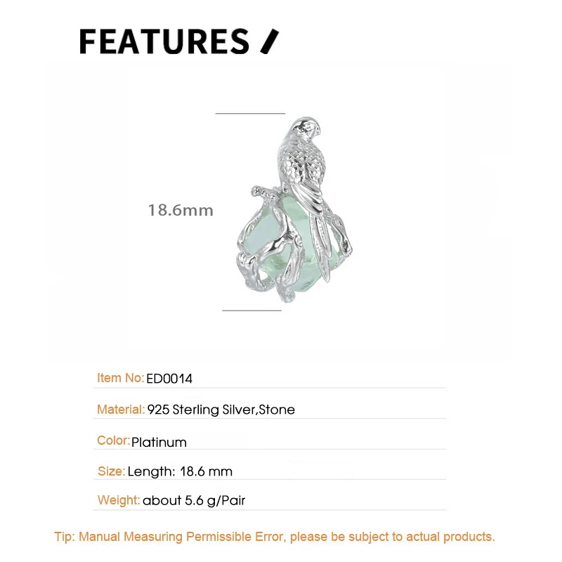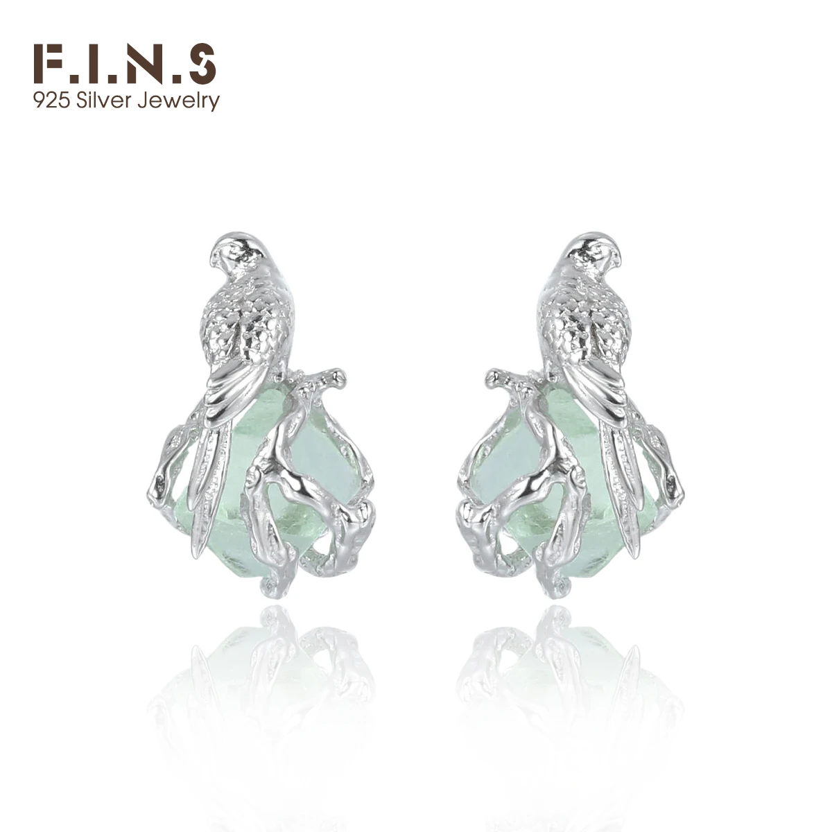 F.I.N.S Bird Fluorite S925 Sterling Silver Stud Earrings Delicate Irregular Stone Piercing Ear Fine Jewelry Prevent Allergy