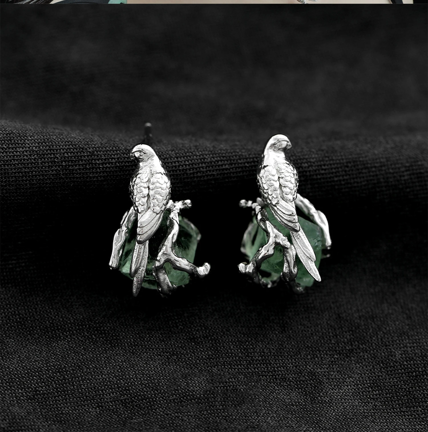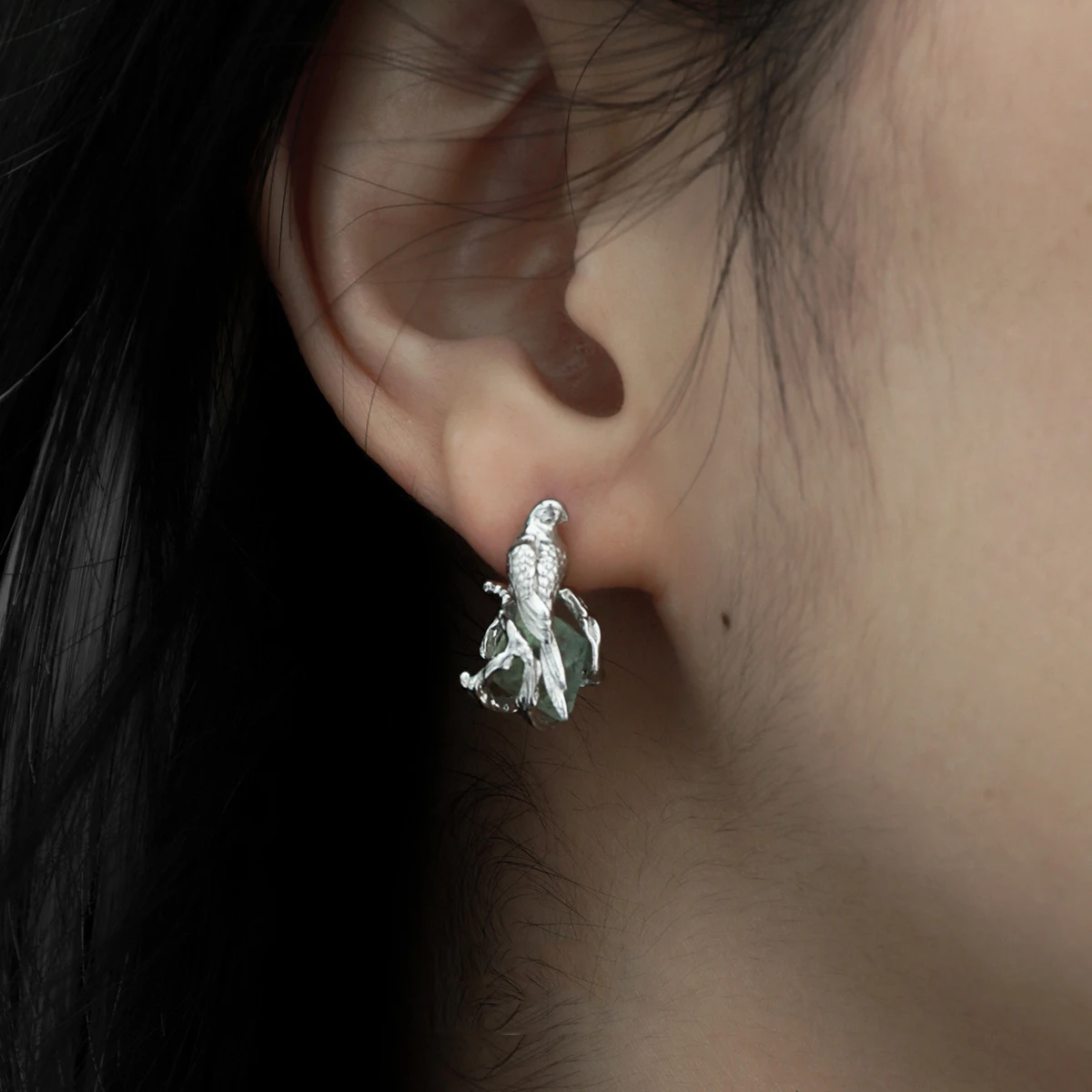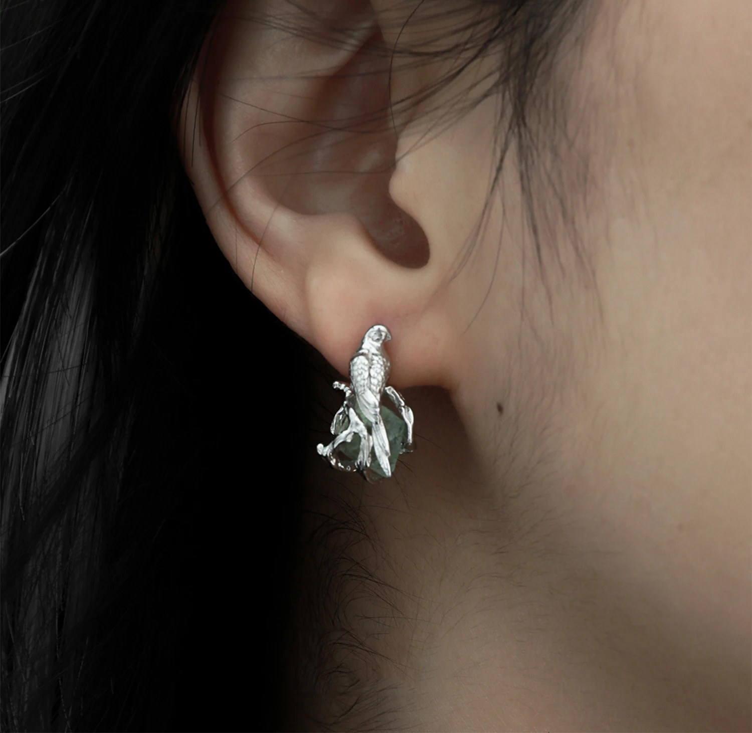 F.I.N.S Bird Fluorite S925 Sterling Silver Stud Earrings Delicate Irregular Stone Piercing Ear Fine Jewelry Prevent Allergy