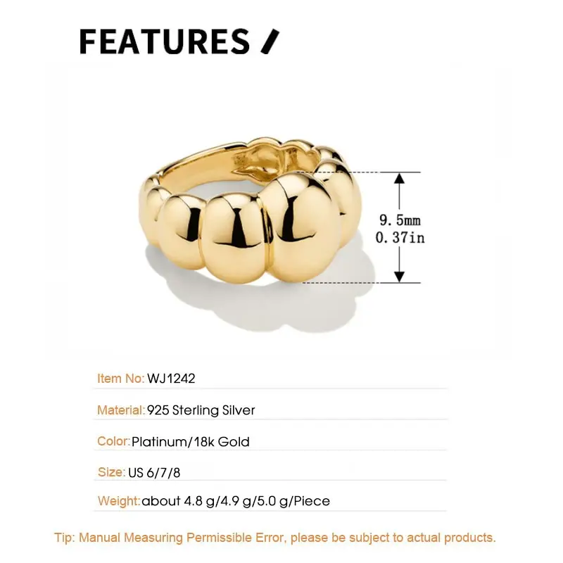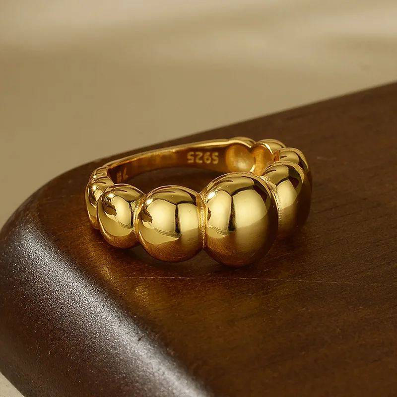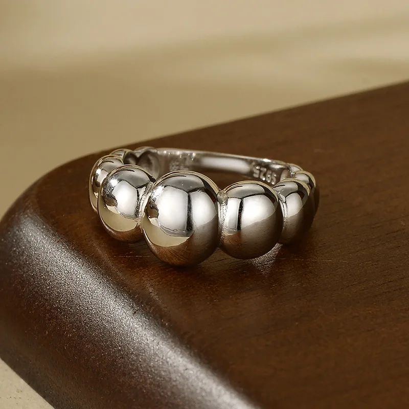 Jewel Type : F.I.N.S Exaggerated Glossy Geometric S925 Sterling Silver Ring Minimalist Smooth Ball Index Mid Finger Fine Jewelry Accessories