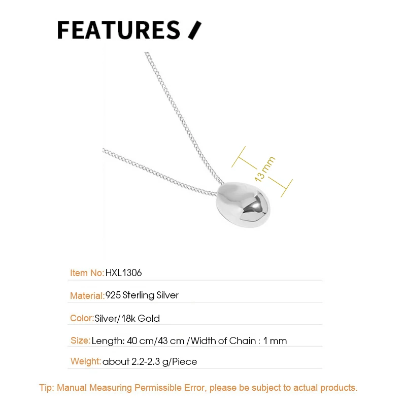 Jewel Type : F.I.N.S Geometric Egg-Shaped 100% S925 Sterling Silver Pendants for Women Glossy Ellipse Real Silver 925 Pendant Necklace Gifts