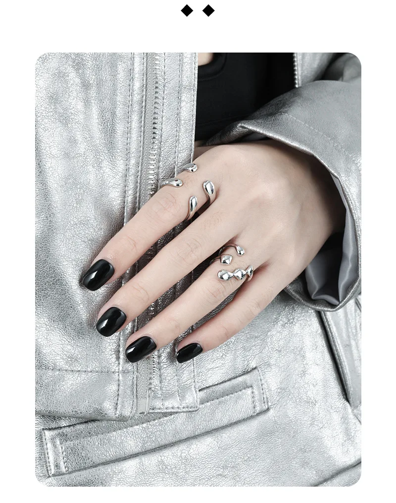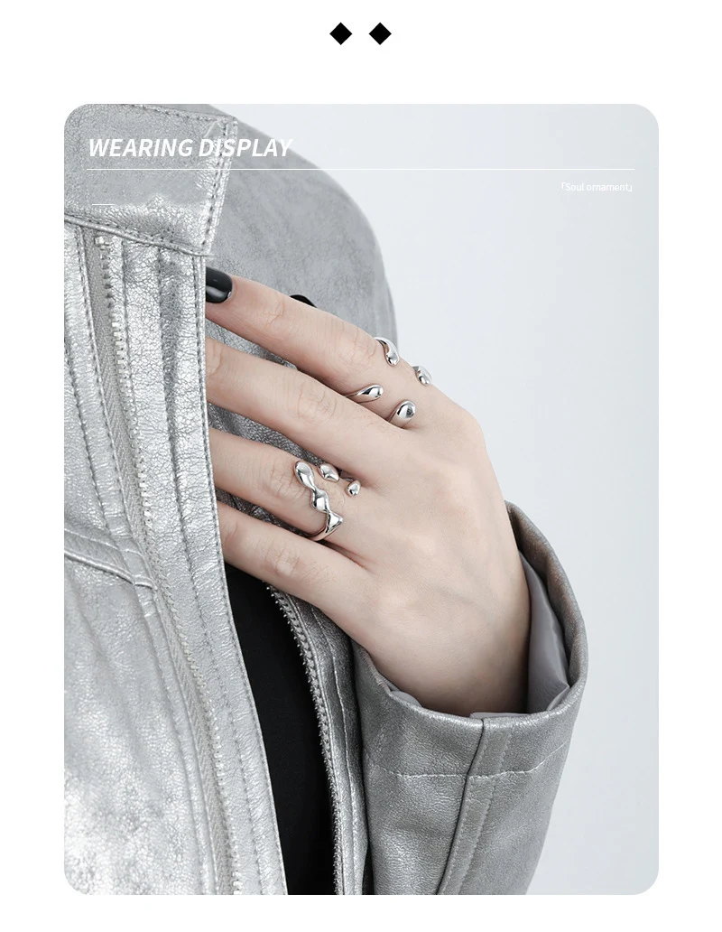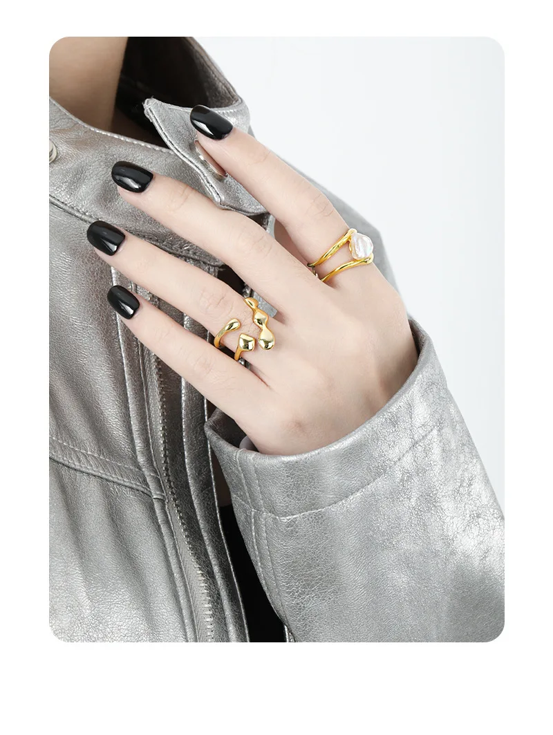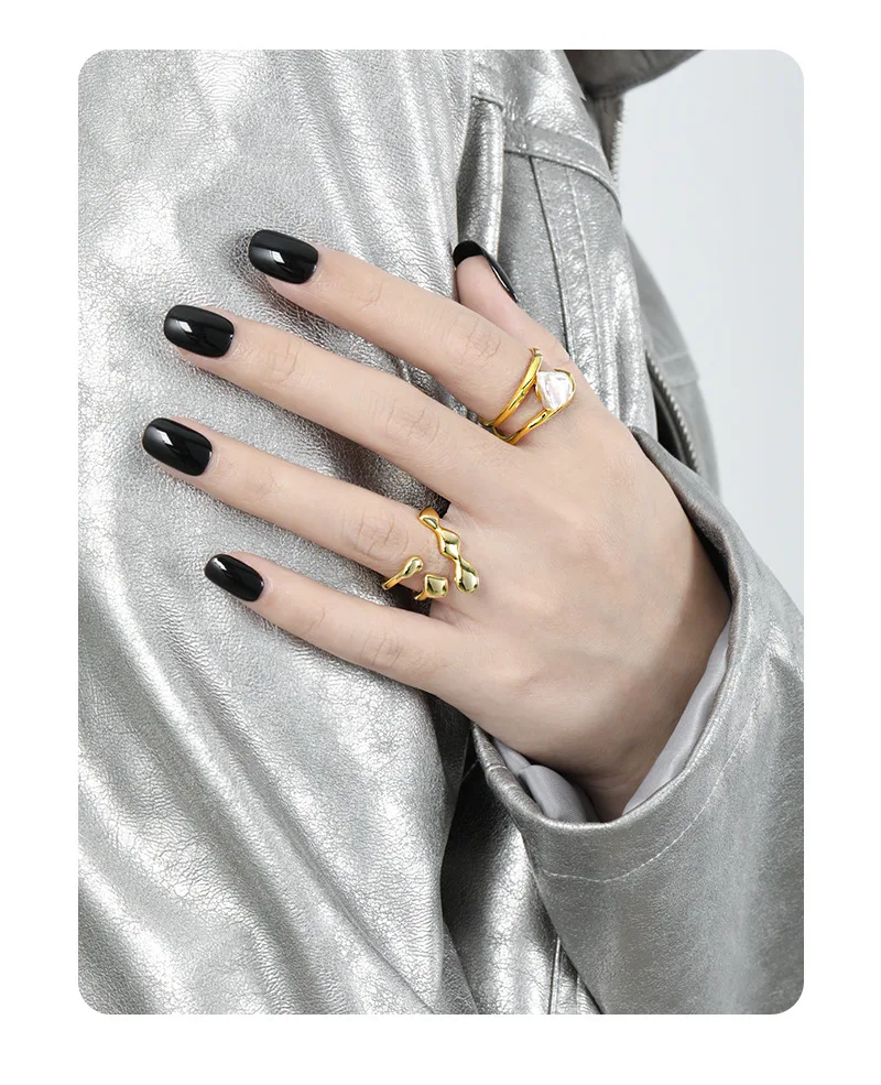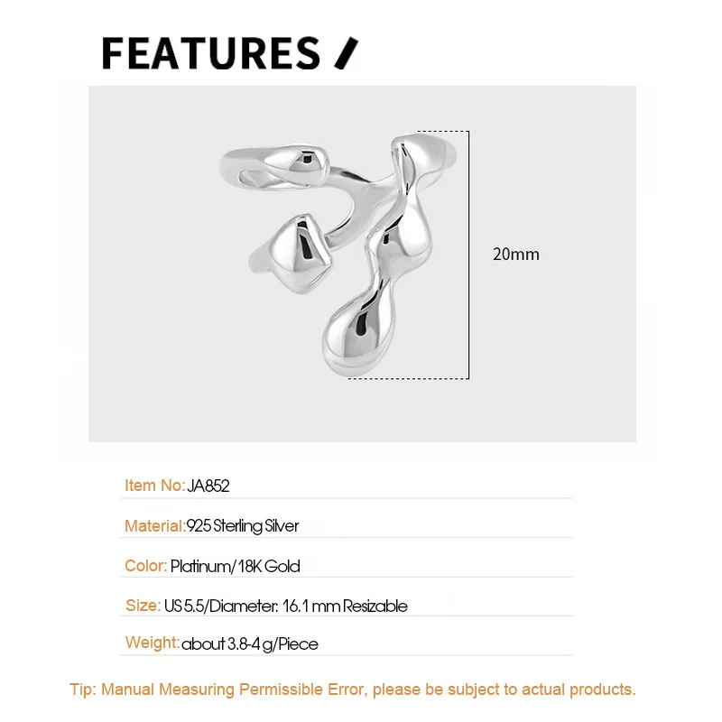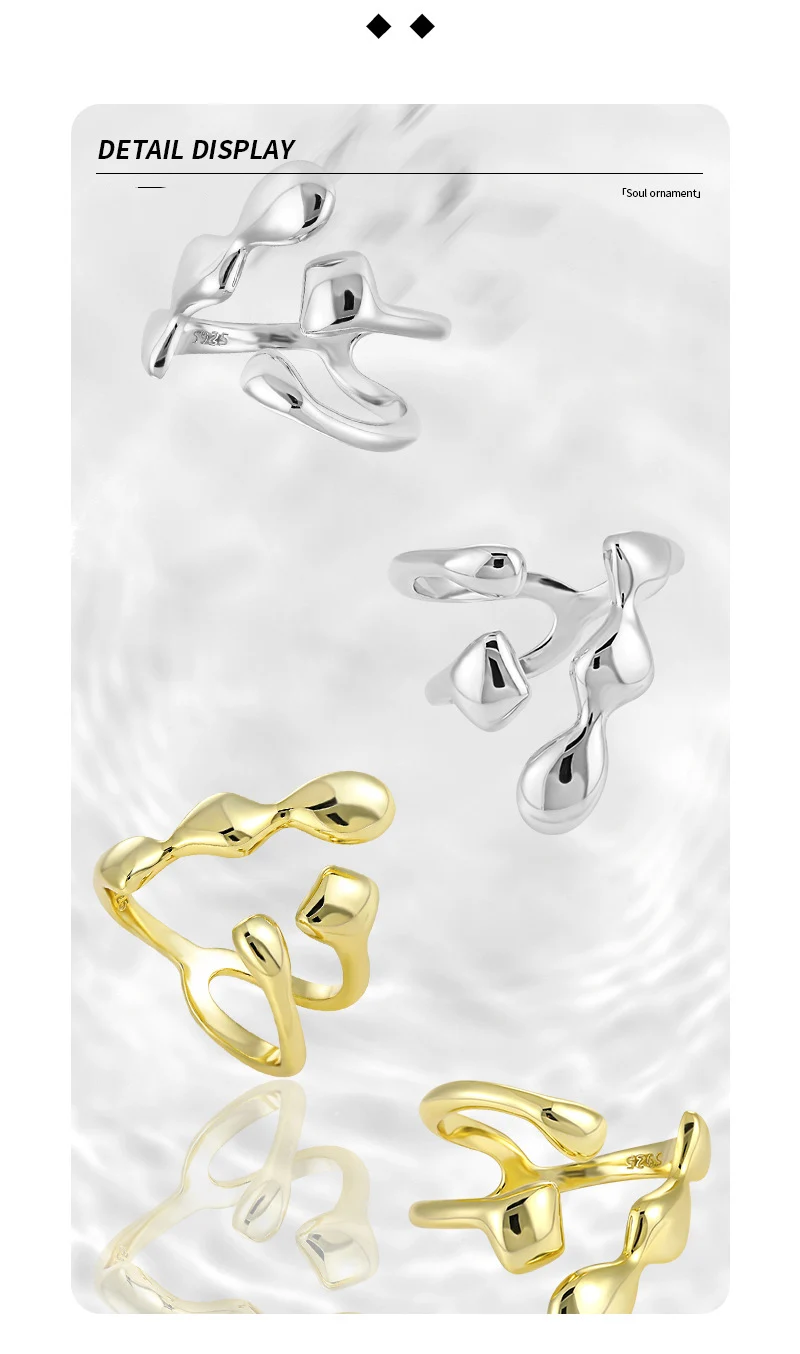 Jewel Type : F.I.N.S Irregular Glossy Real S925 Sterling Silver Gold Plain Open Rings Adjustable Wide Finger Minimalist Party Fine Jewelry