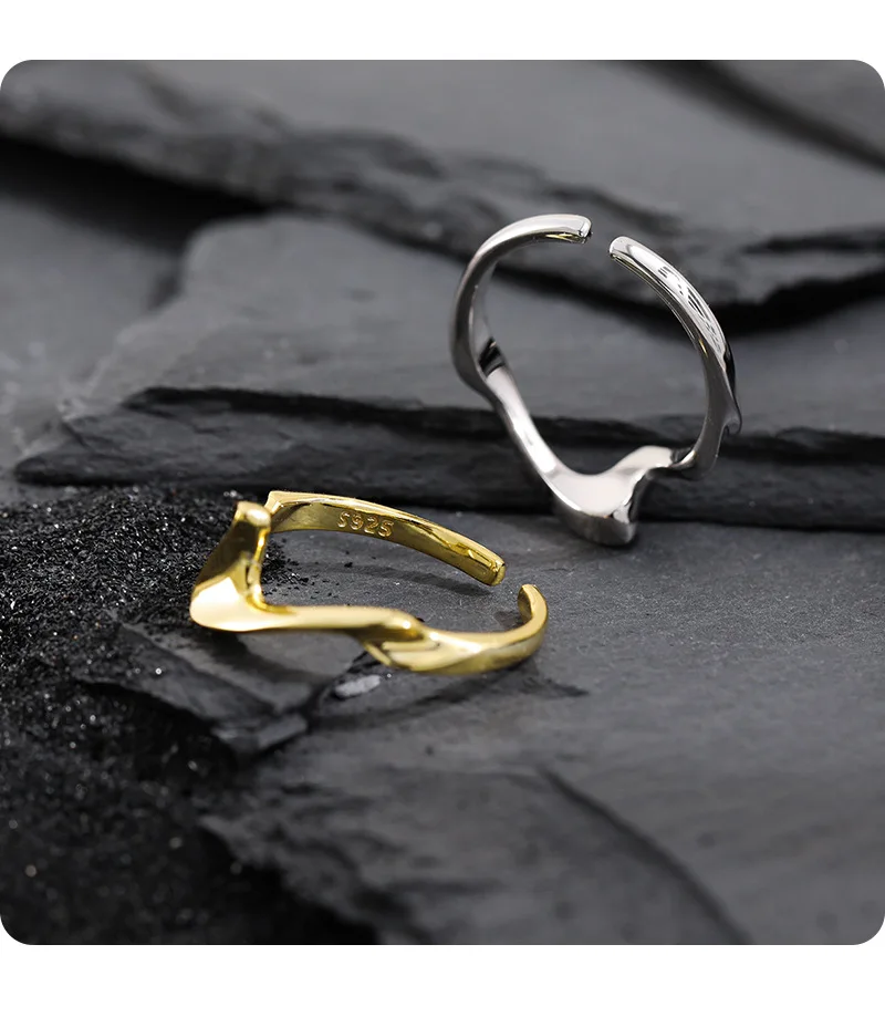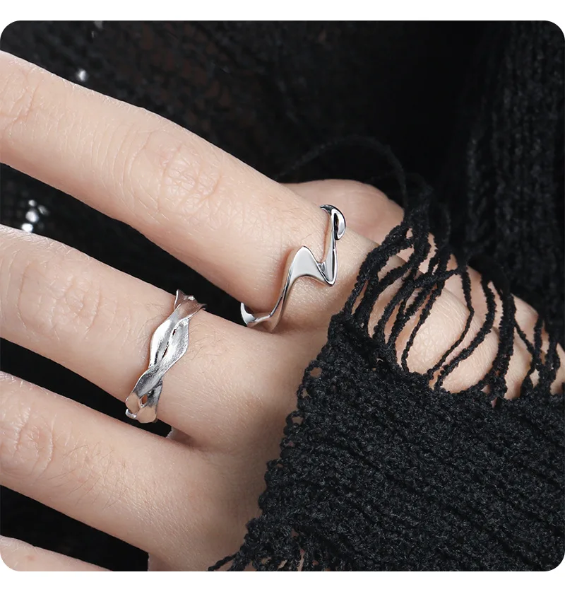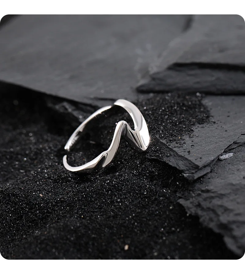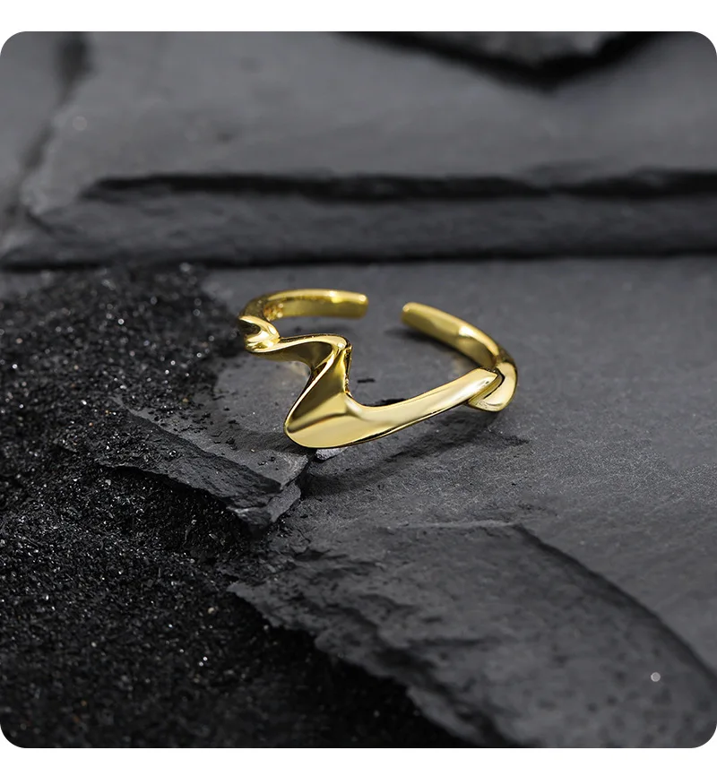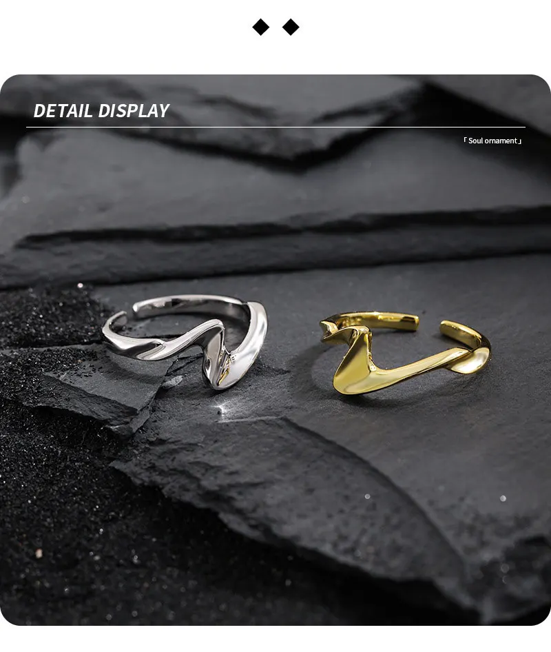 Jewel Type : F.I.N.S Irregular Glossy Wave S925 Sterling Silver Ring Women Geometric INS Open Plain Adjustable Index Mid Finger Fine Jewelry