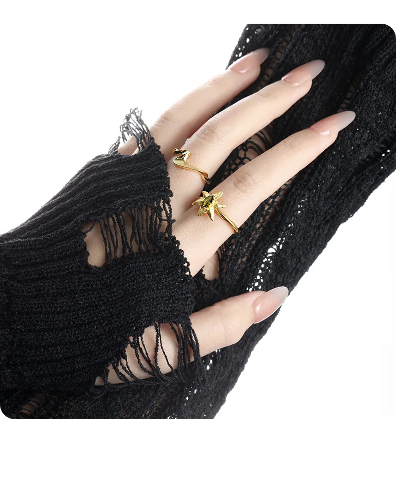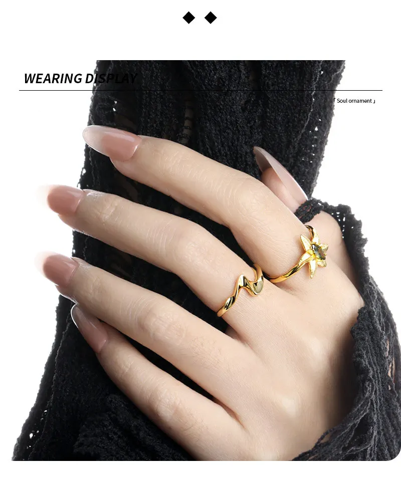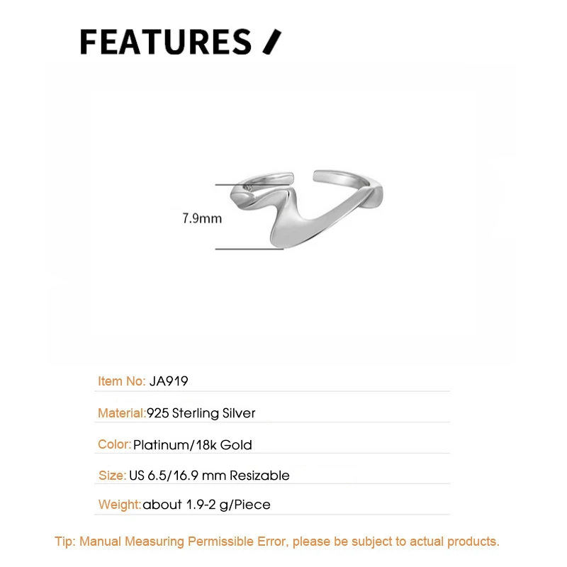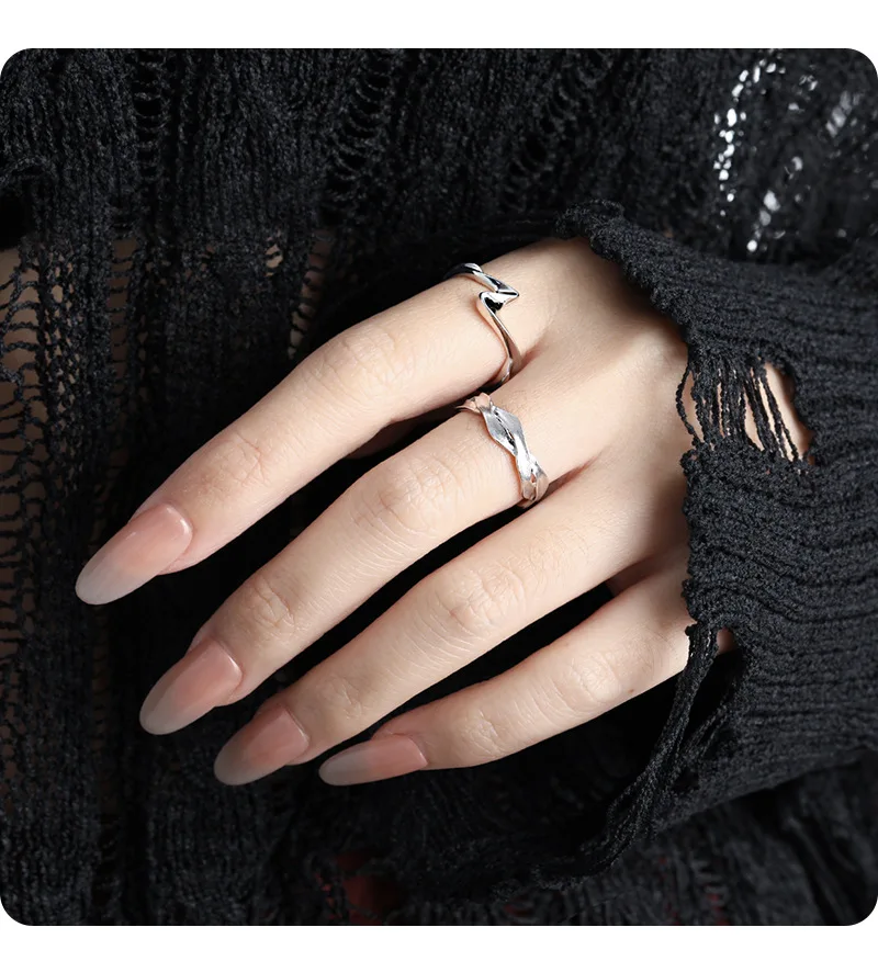 Jewel Type : F.I.N.S Irregular Glossy Wave S925 Sterling Silver Ring Women Geometric INS Open Plain Adjustable Index Mid Finger Fine Jewelry