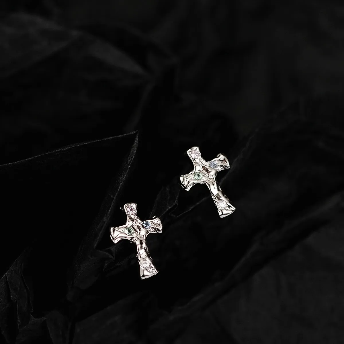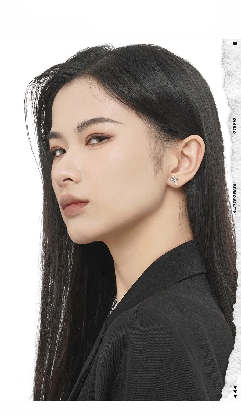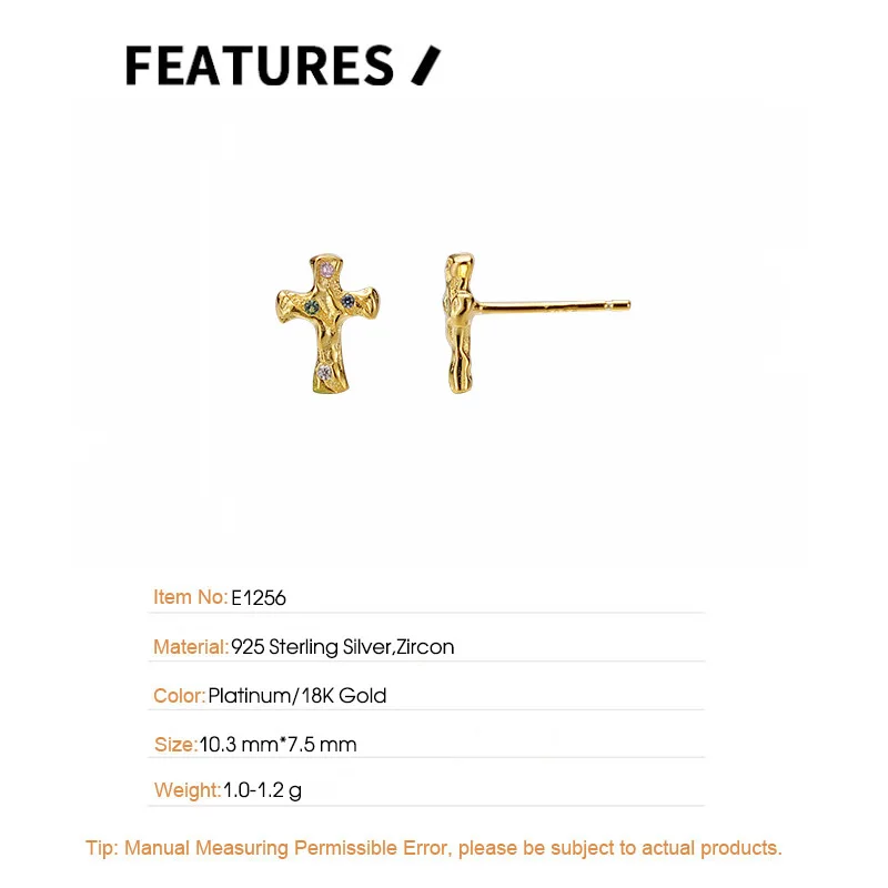 Jewel Type : F.I.N.S Korean Fashion Cross S925 Sterling Silver Zircon Stud Earrings Hypoallergenic Classic Punk Faith Earrings Fine Jewelry