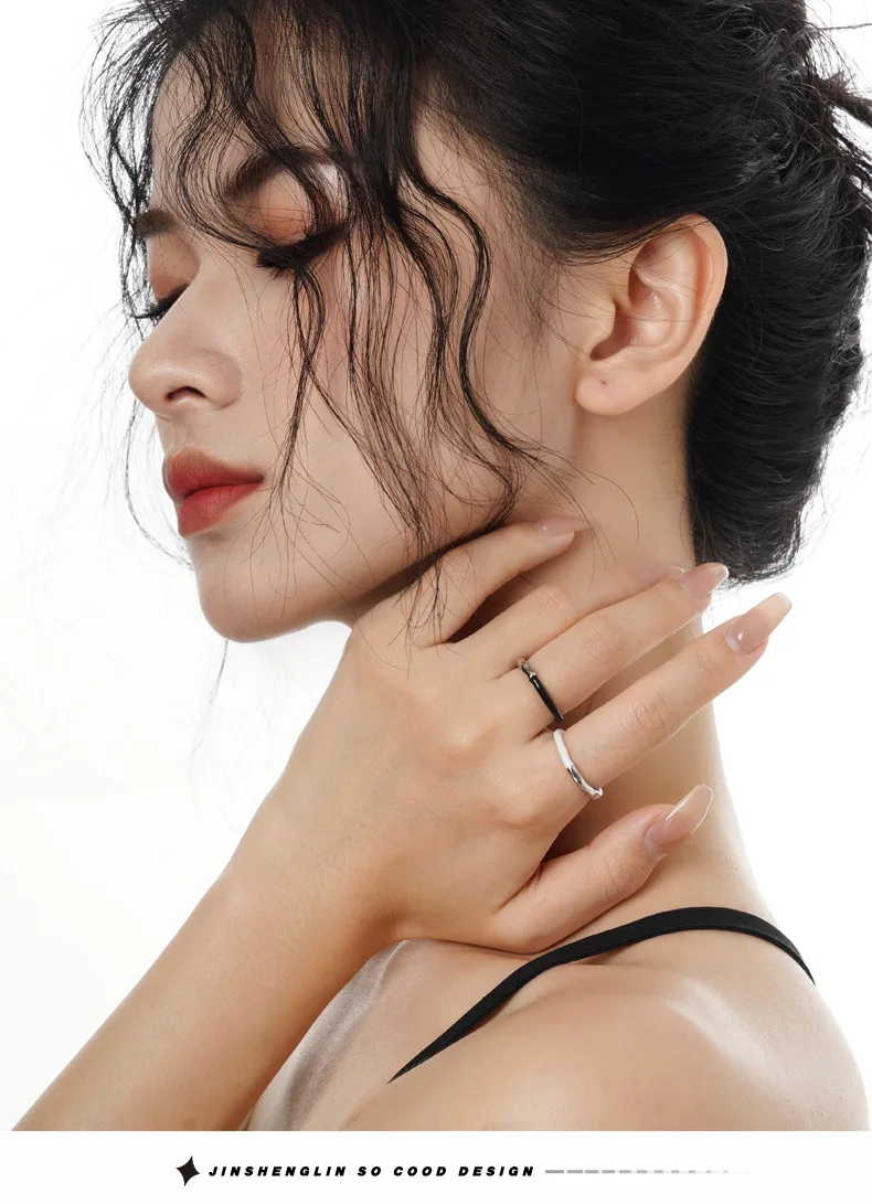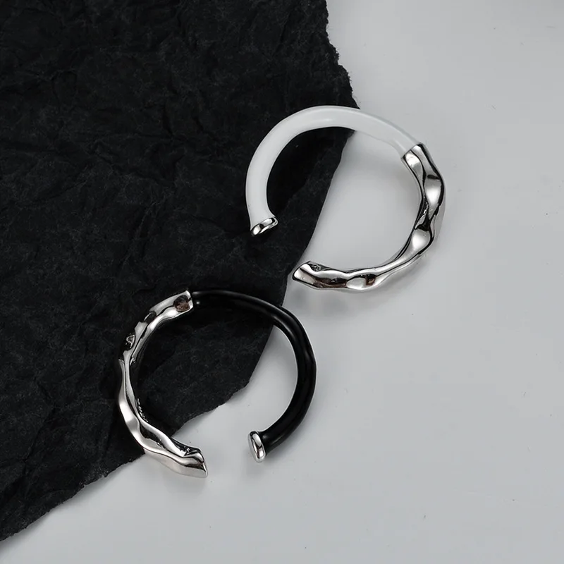 F.I.N.S Korean Fashion S925 Sterling Silver Drip Glaze Open Ring Irregular Black White Enamel Finger Fine Jewelry Accessories