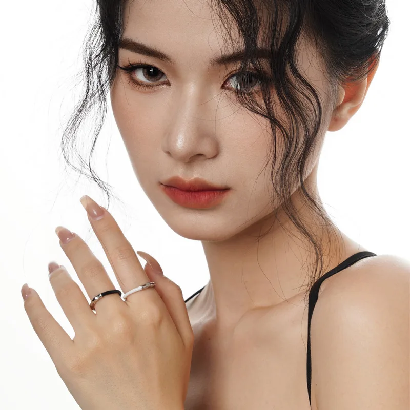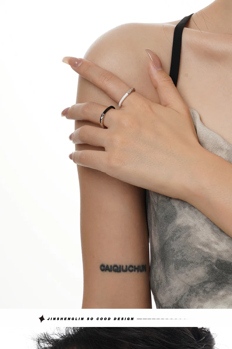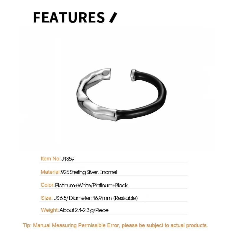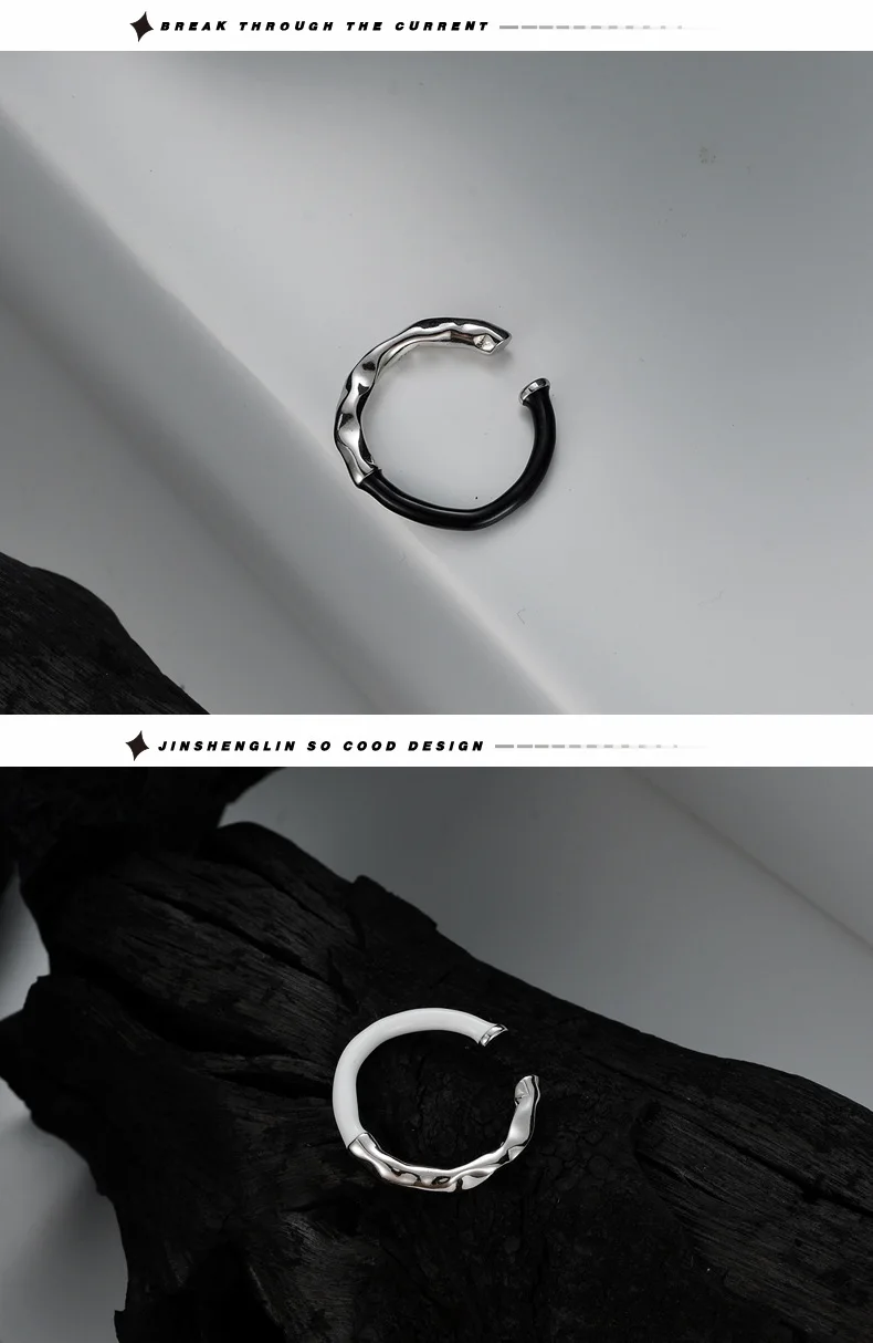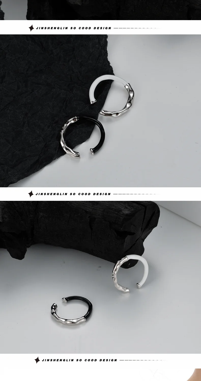 Jewel Type : F.I.N.S Korean Fashion S925 Sterling Silver Drip Glaze Open Ring Irregular Black White Enamel Finger Fine Jewelry Accessories