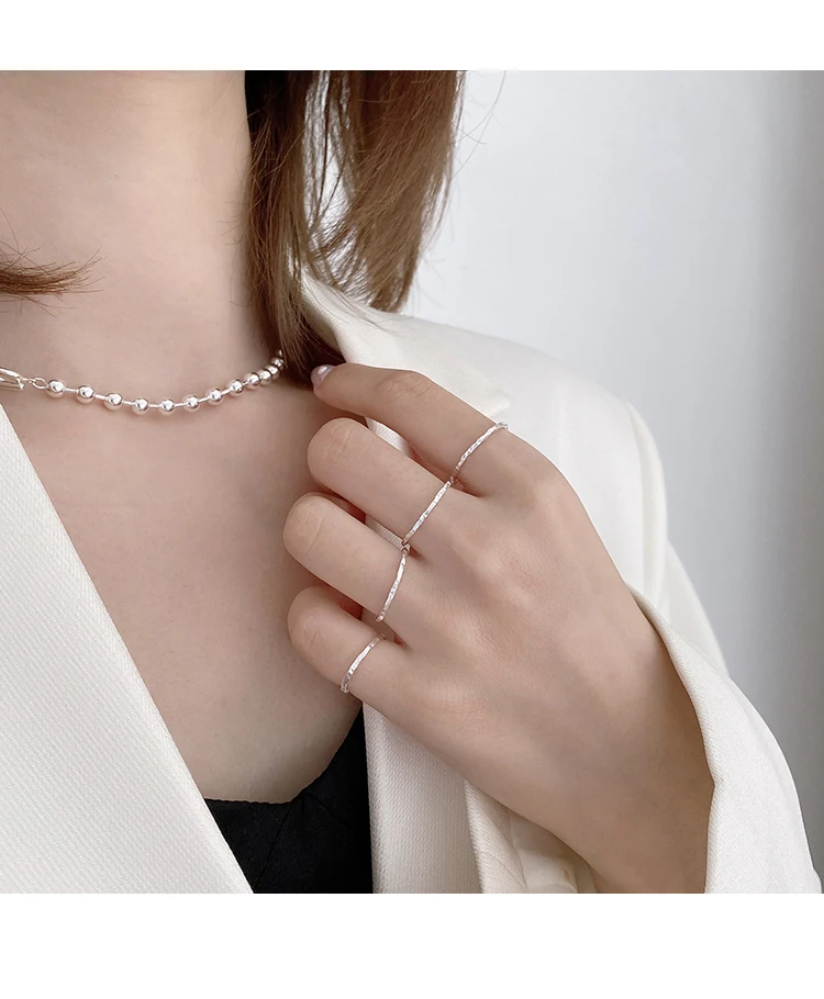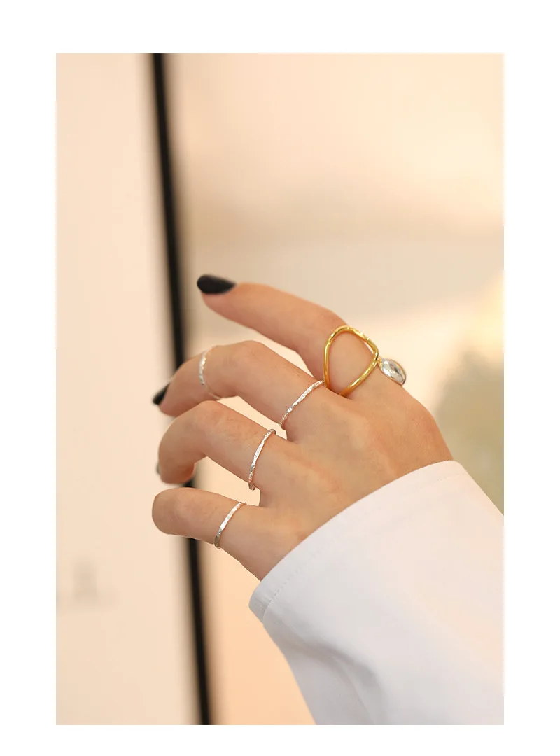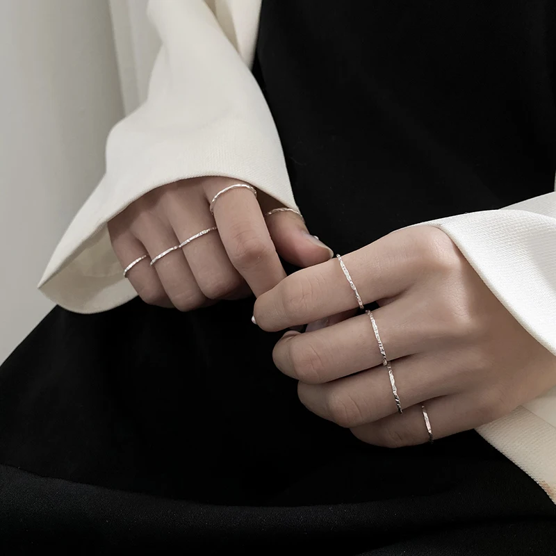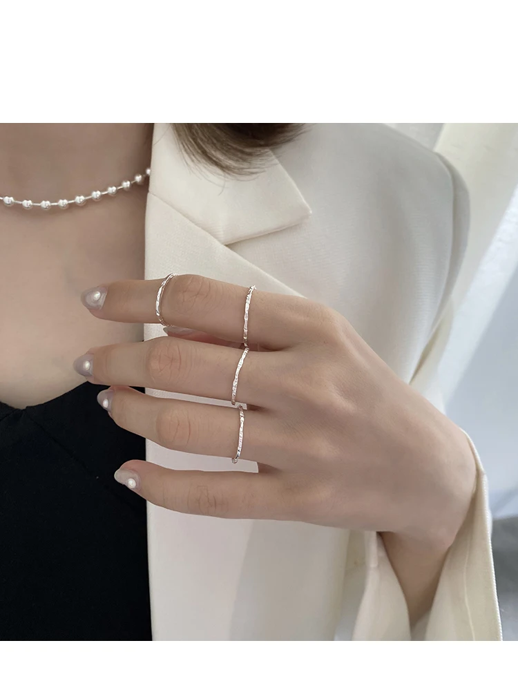 Jewel Type : F.I.N.S Korean Simple Irregular Slim Ring Female Concave Finger Fine Rings for Women S925 Sterling Silver Stackable Ring