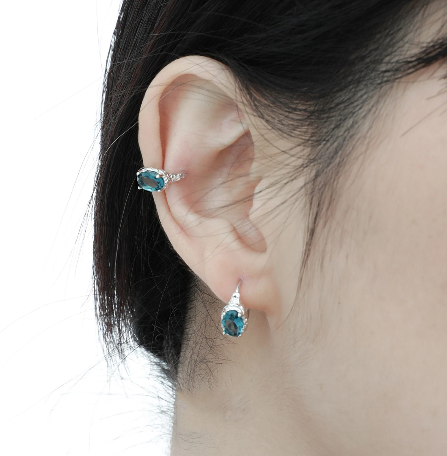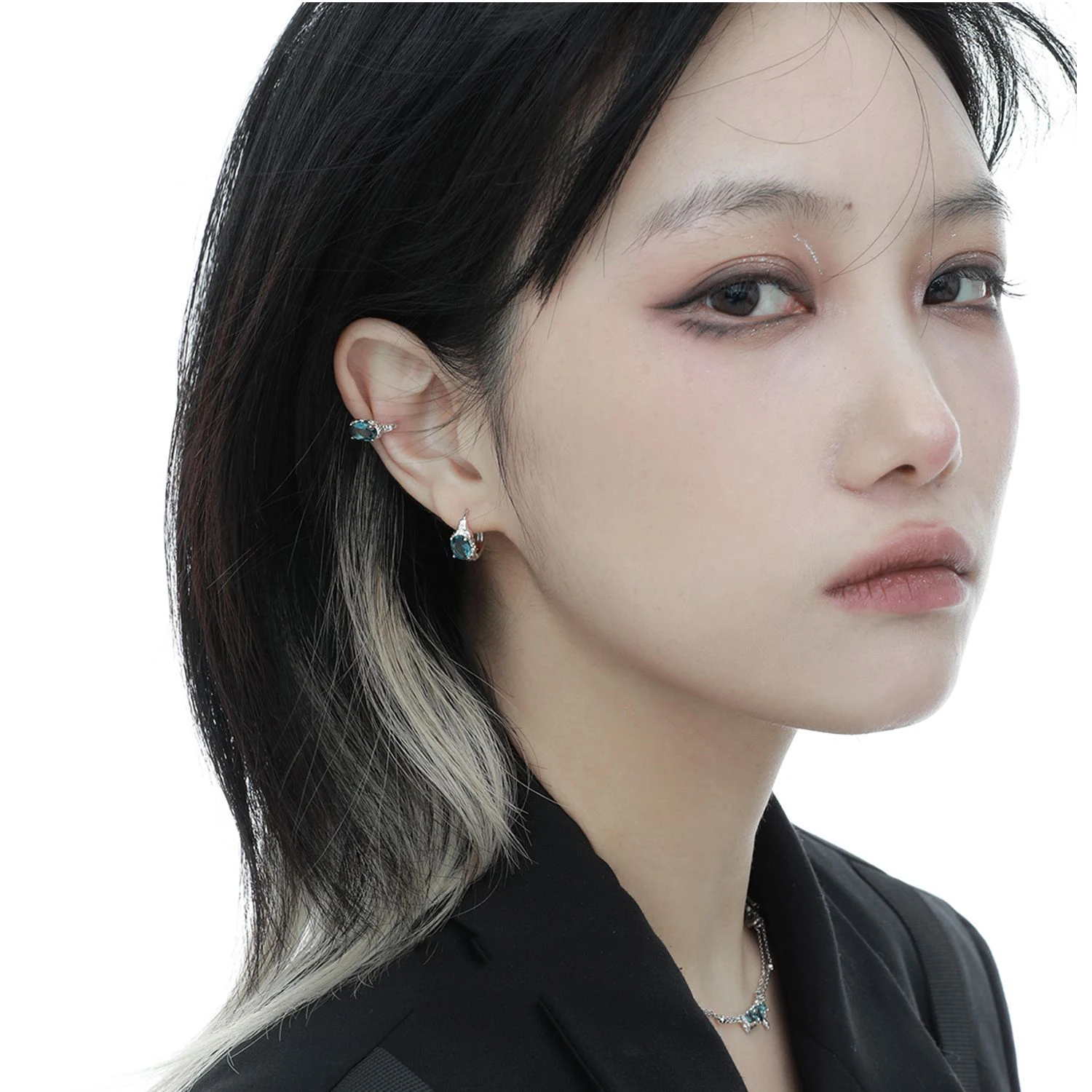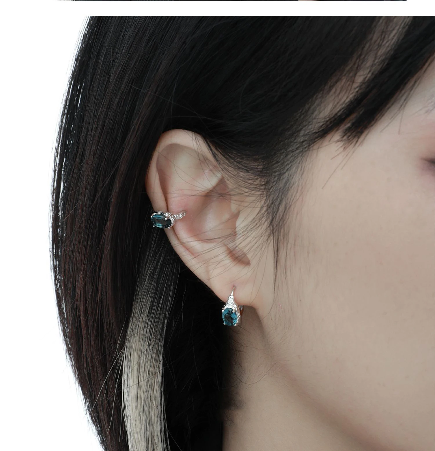 Jewel Type : F.I.N.S Minimalist Blue Oval Zircon S925 Sterling Silver Earrings For Women Uneven Geometric Piercing Ear Buckles Fine Jewelry