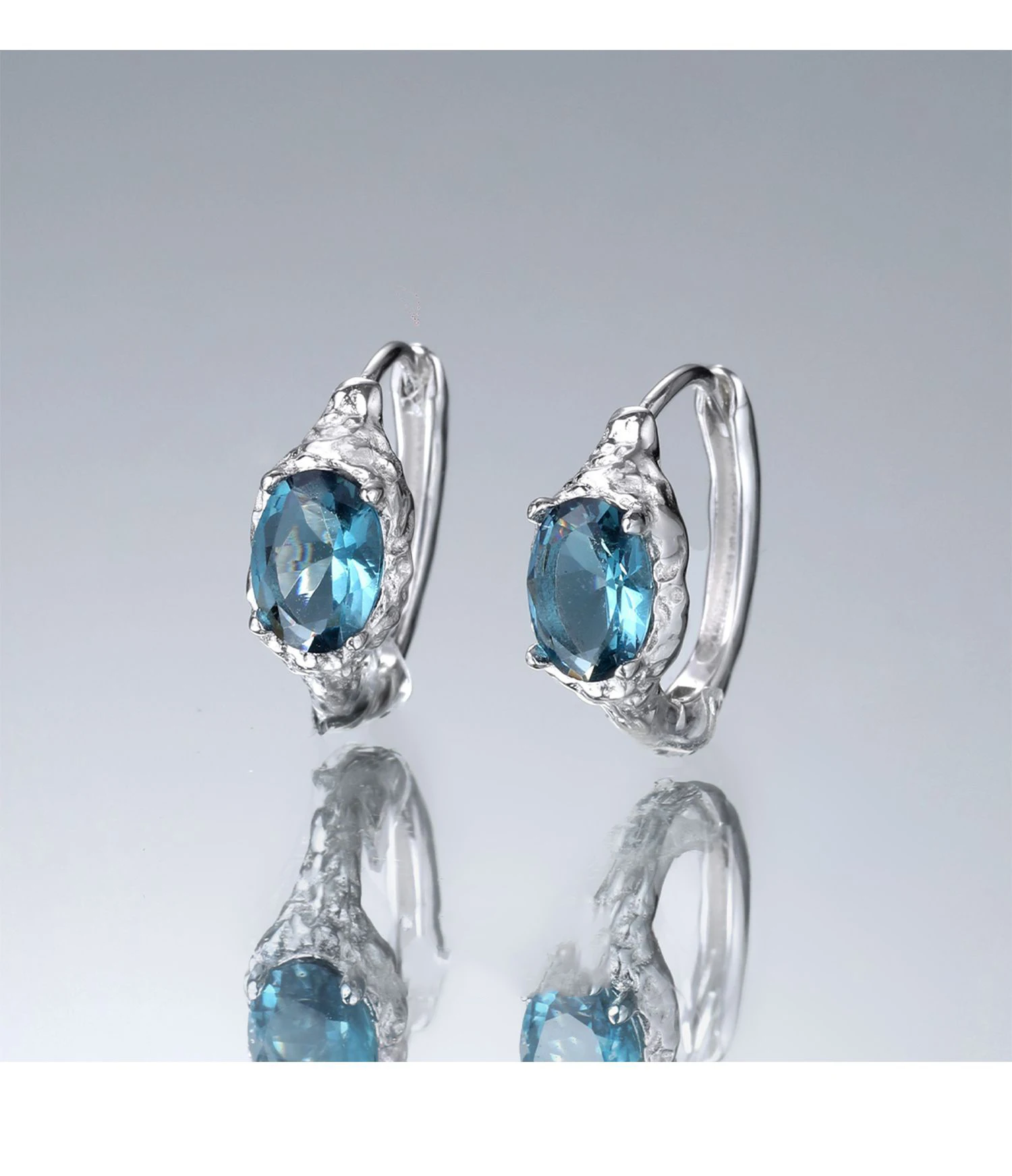 F.I.N.S Minimalist Blue Oval Zircon S925 Sterling Silver Earrings For Women Uneven Geometric Piercing Ear Buckles Fine Jewelry
