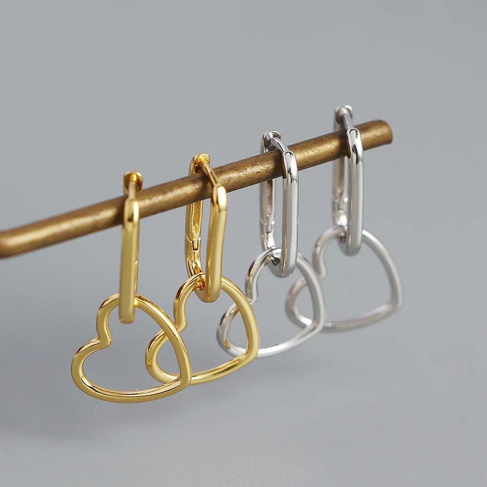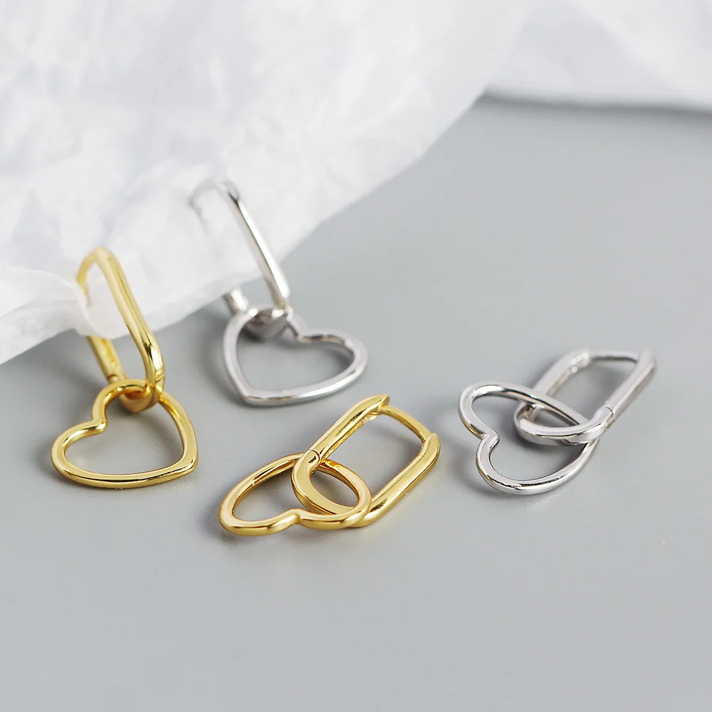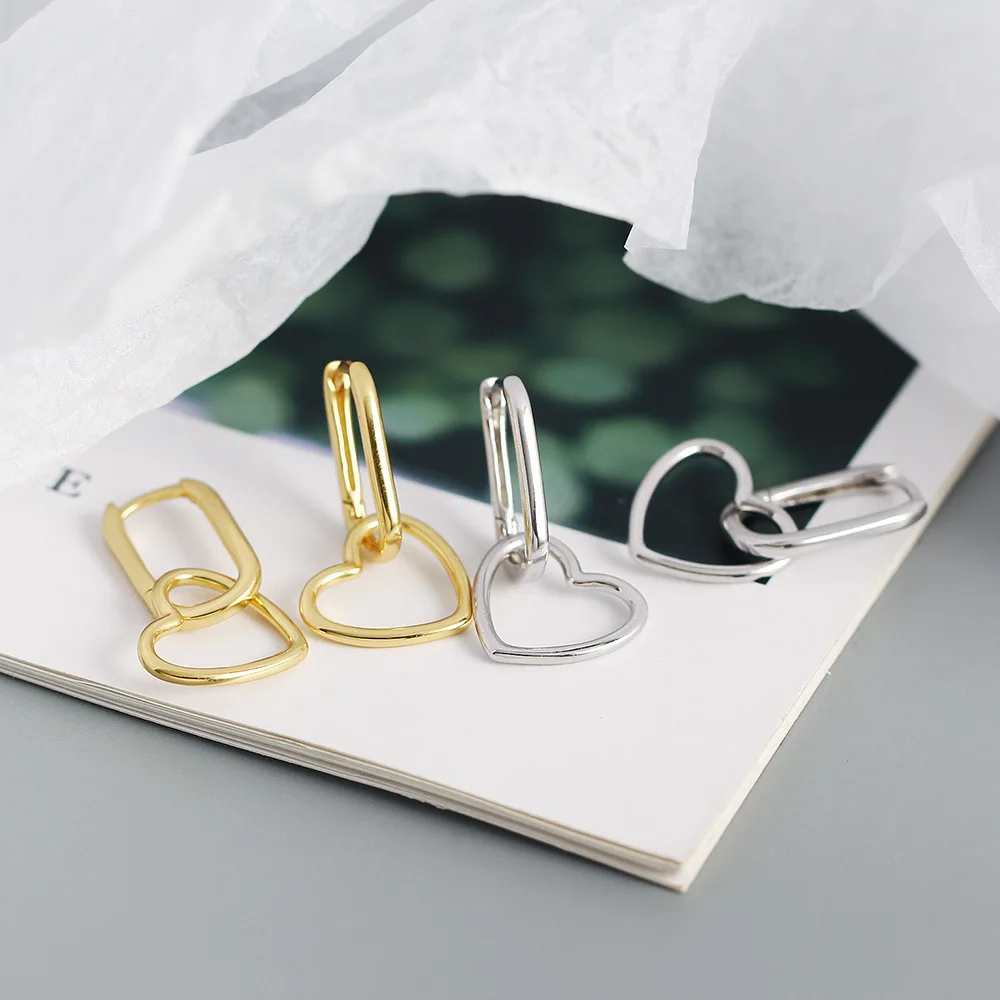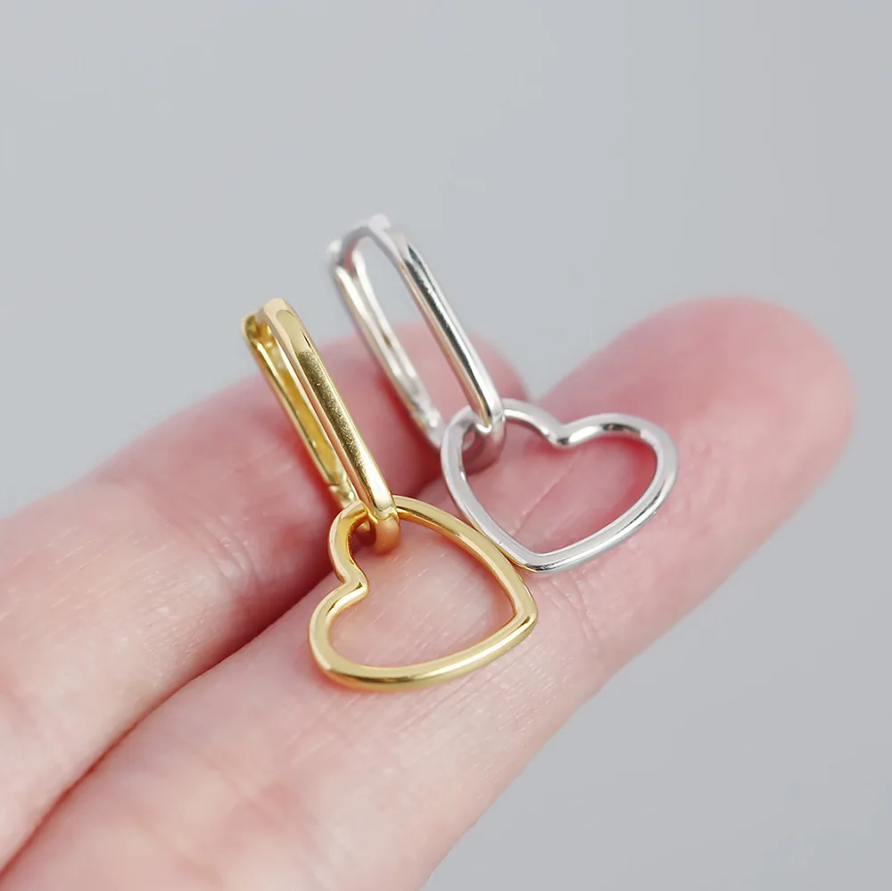 F.I.N.S Minimalist Real S925 Sterling Silver Oval Heart-Shaped Drop Earrings Geometric Smooth Hoops Pendientes Plata 925 Jewelry