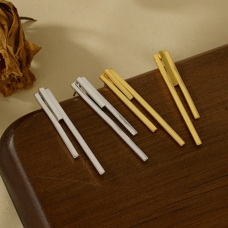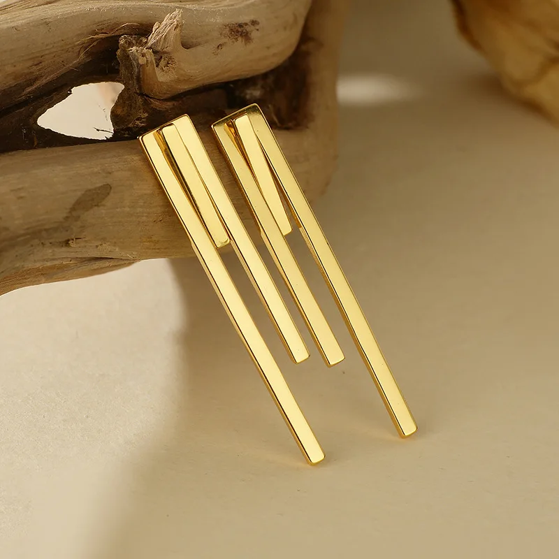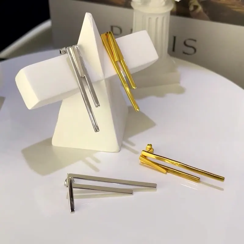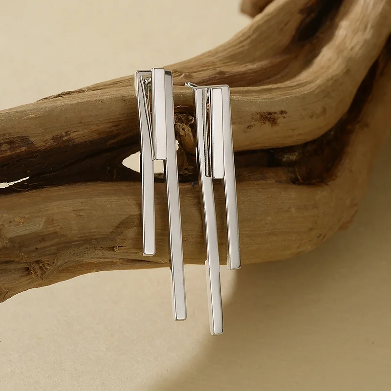 F.I.N.S Minimalist S925 Sterling Silver Geometric Earrings Three Square Bar Piercing Simple Ear Fine Jewelry Prevent Allergy