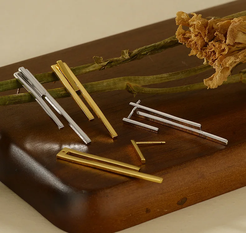 Jewel Type : F.I.N.S Minimalist S925 Sterling Silver Geometric Earrings Three Square Bar Piercing Simple Ear Fine Jewelry Prevent Allergy