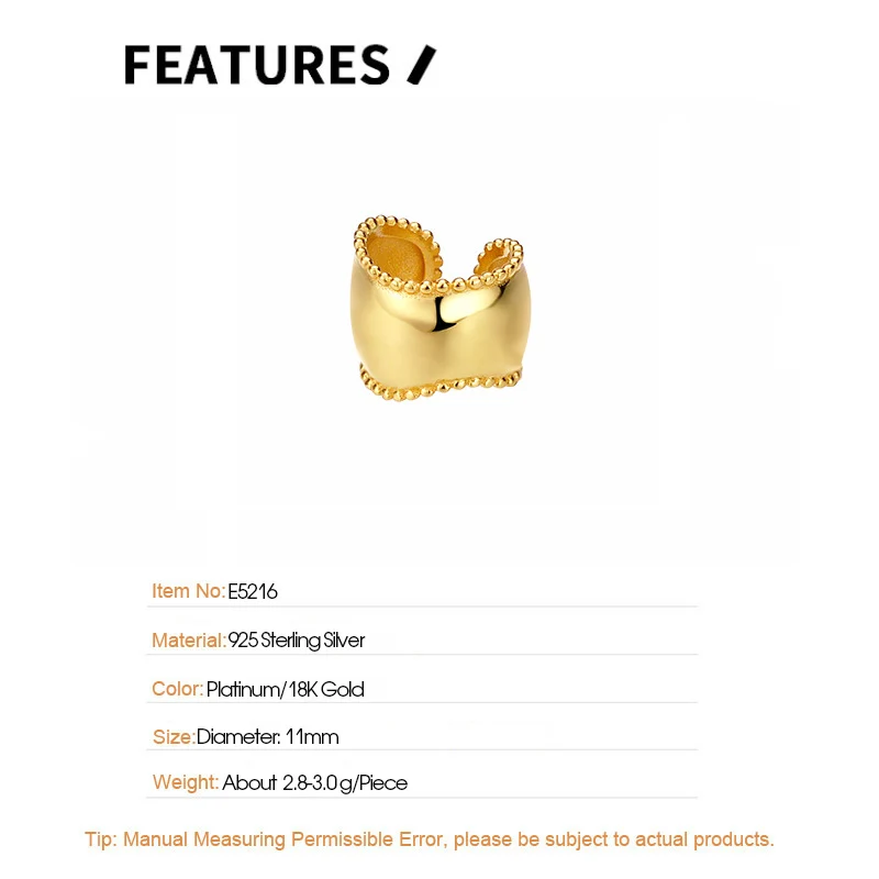 Jewel Type : F.I.N.S Minimalist S925 Sterling Silver Glossy Geometric Ear Cuffs for for Women Fake Piercing Clip Earrings without Holes