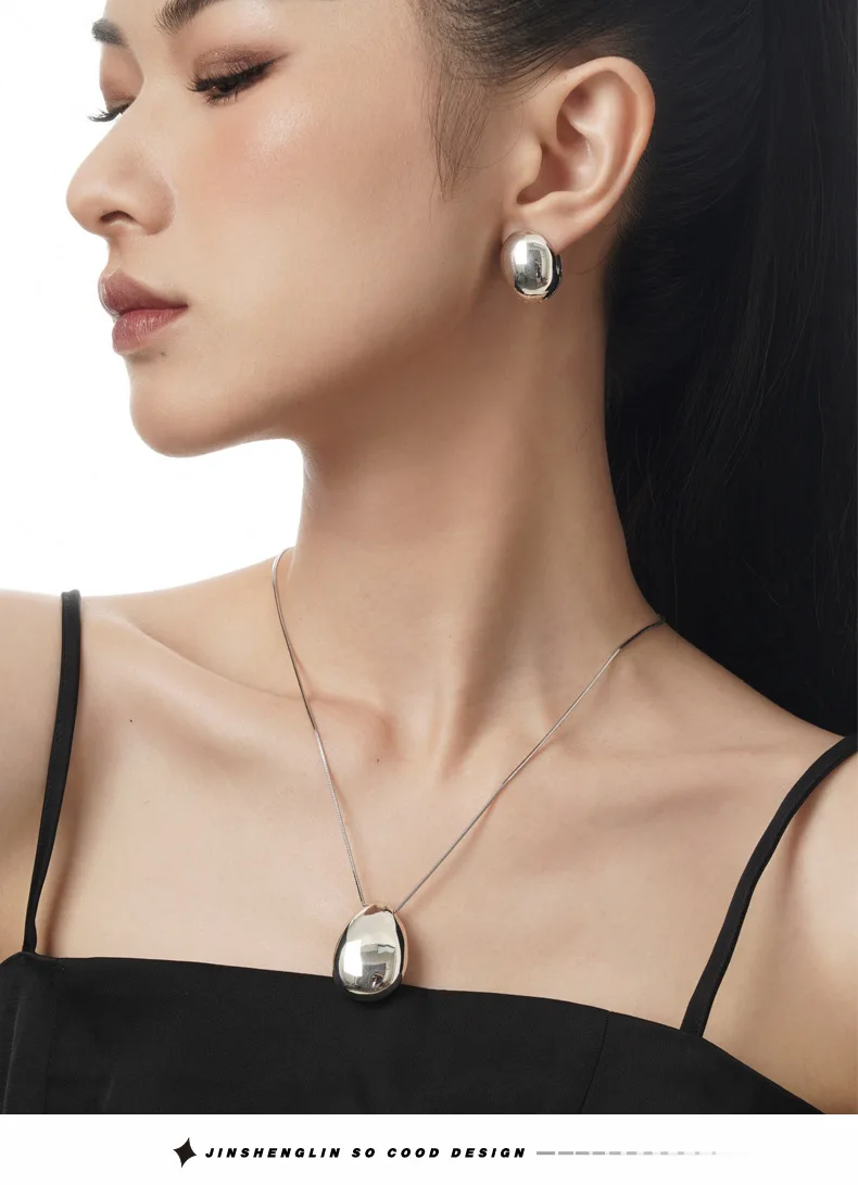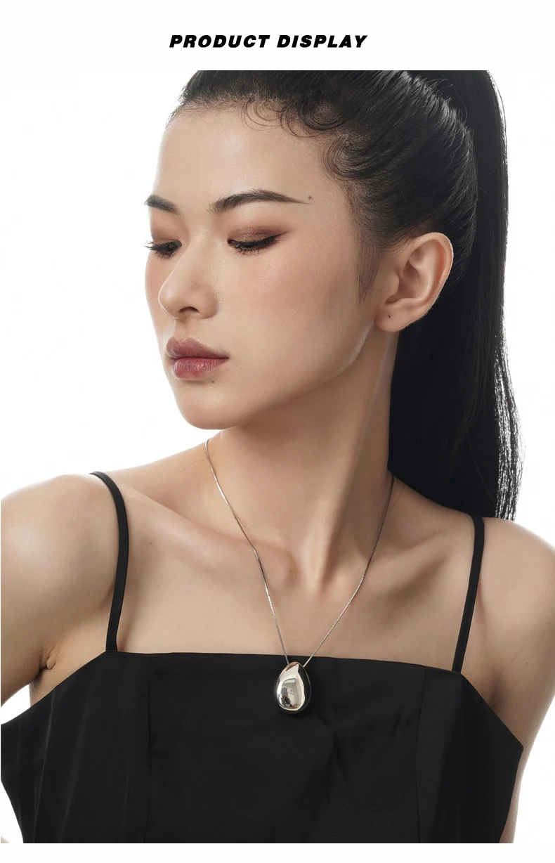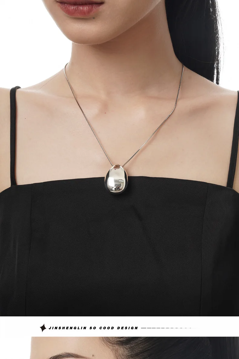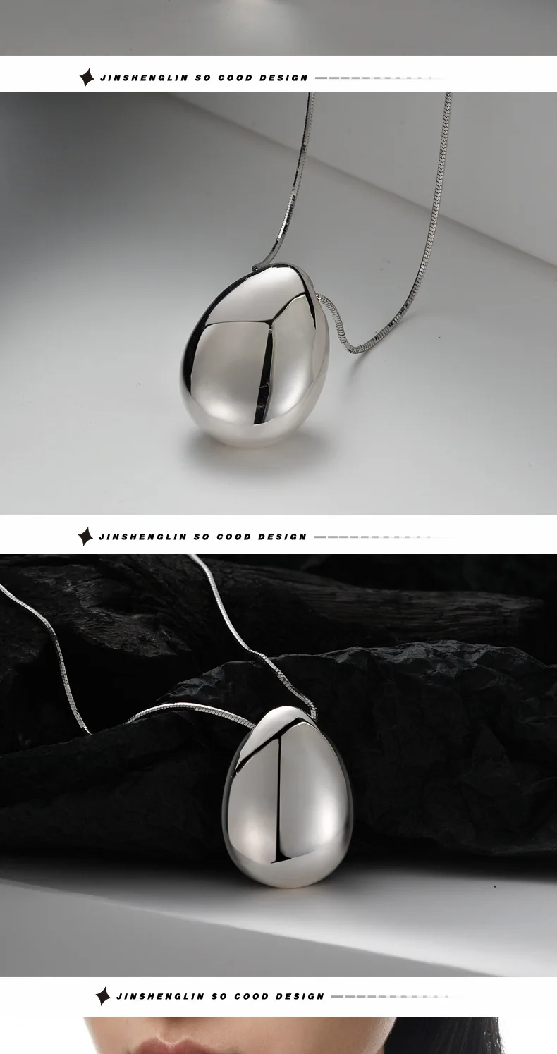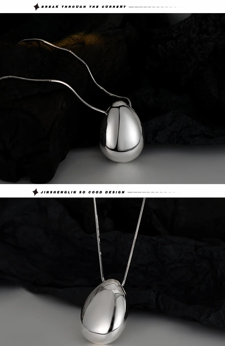Jewel Type : F.I.N.S Minimalist S925 Sterling Silver Large Glossy Egg-Shaped Pendants for Women Big Waterdrop Snake Chain Necklace Accessory