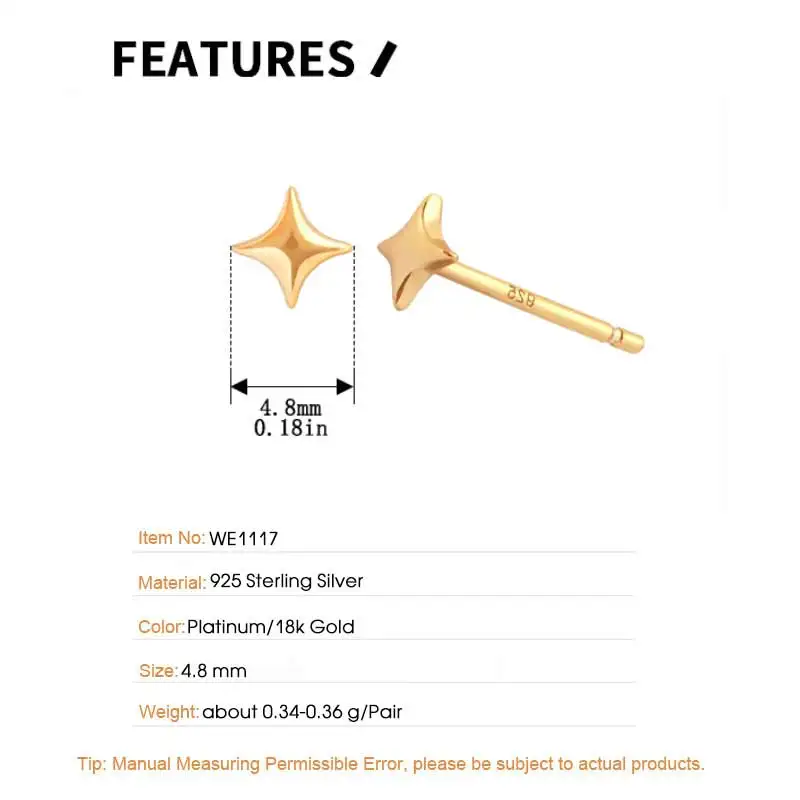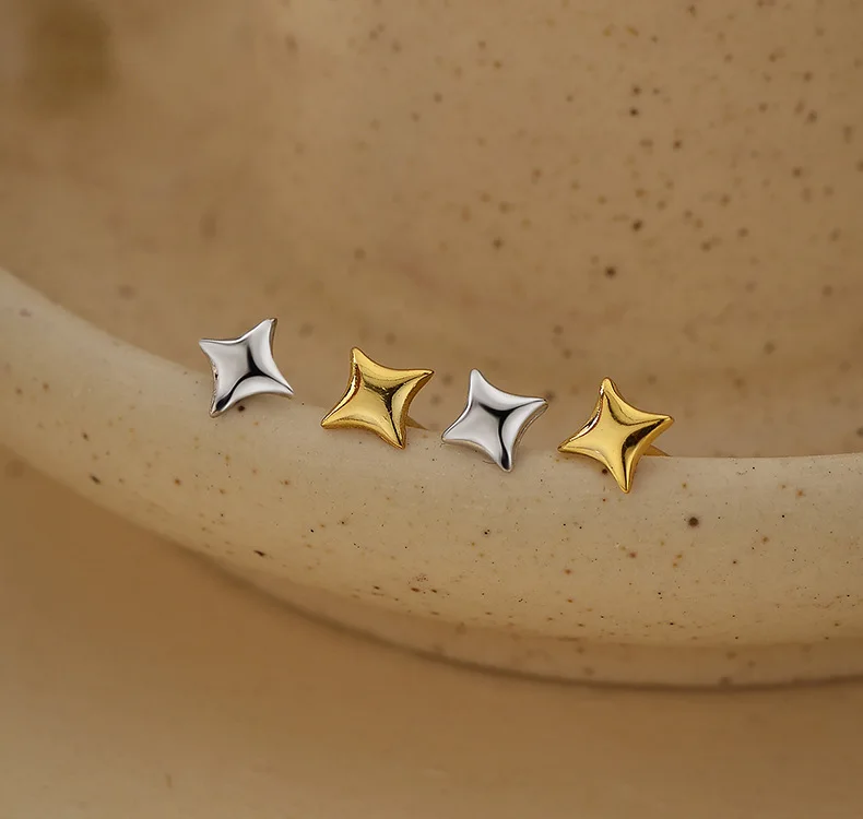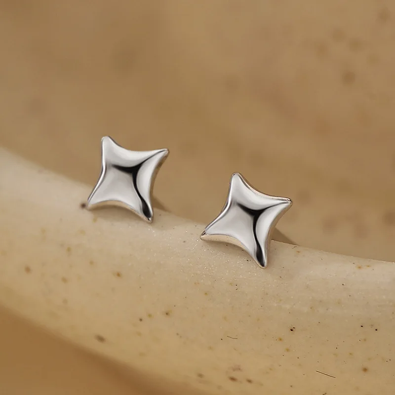 Jewel Type : F.I.N.S Minimalist S925 Sterling Silver Square Star Heart Studs Earrings Fashion Simple Small Piercing Stacked Ear Fine Jewelry