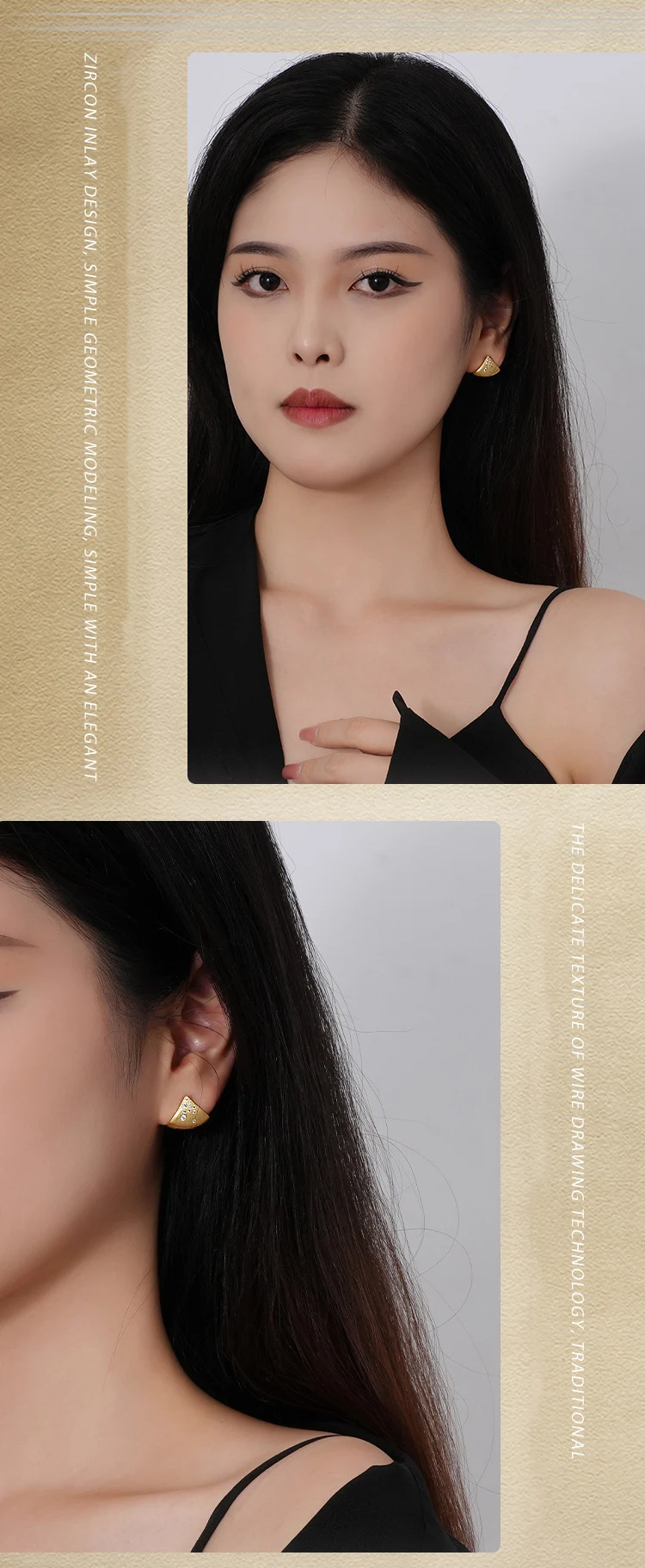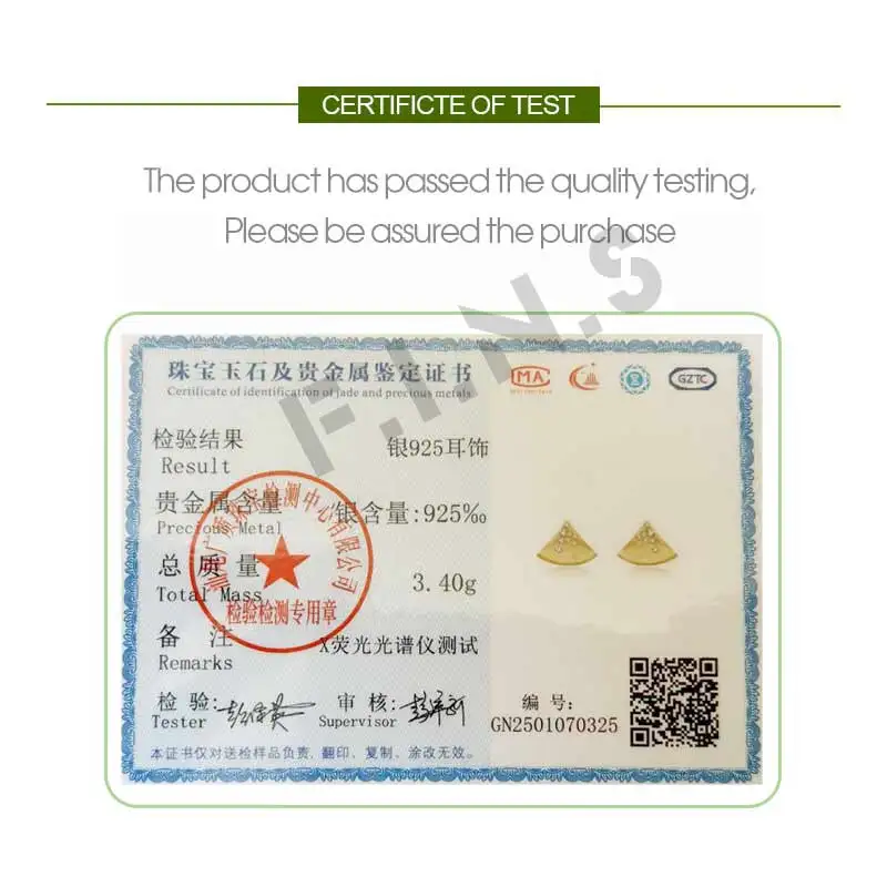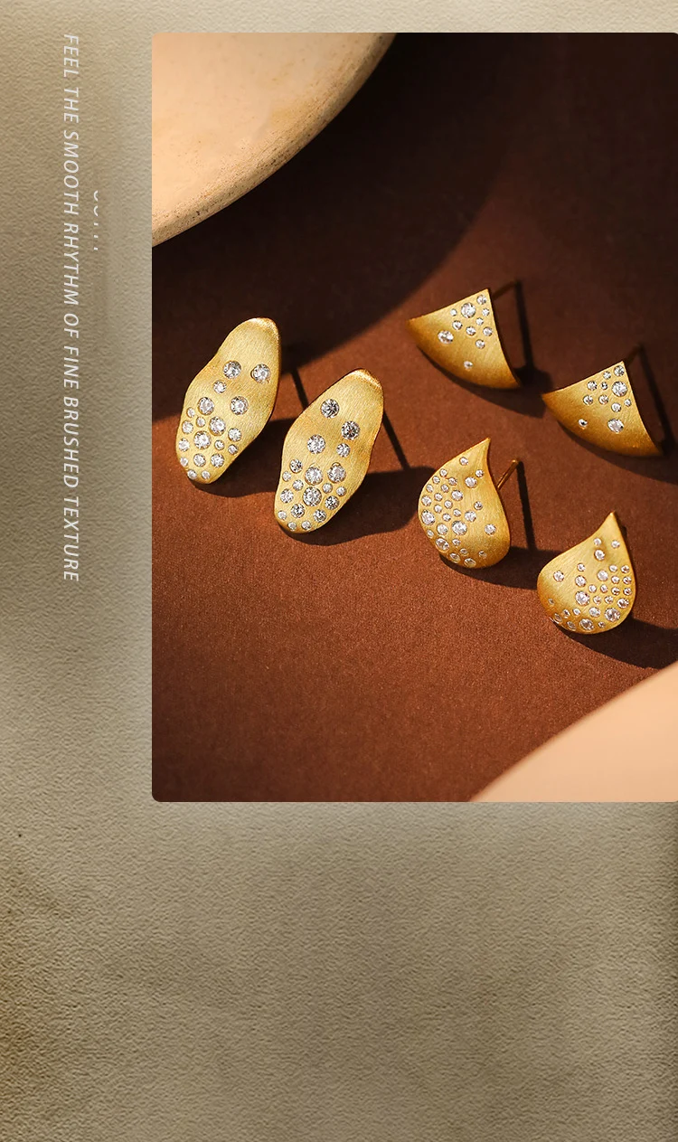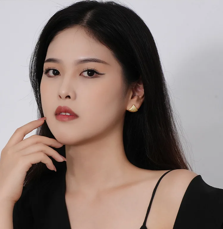 Jewel Type : F.I.N.S Minimalist S925 Sterling Silver Triangle Earrings Gold Brushed Cubic Zirconia Fan-Shaped Piercing Ear Studs Fine Jewelry