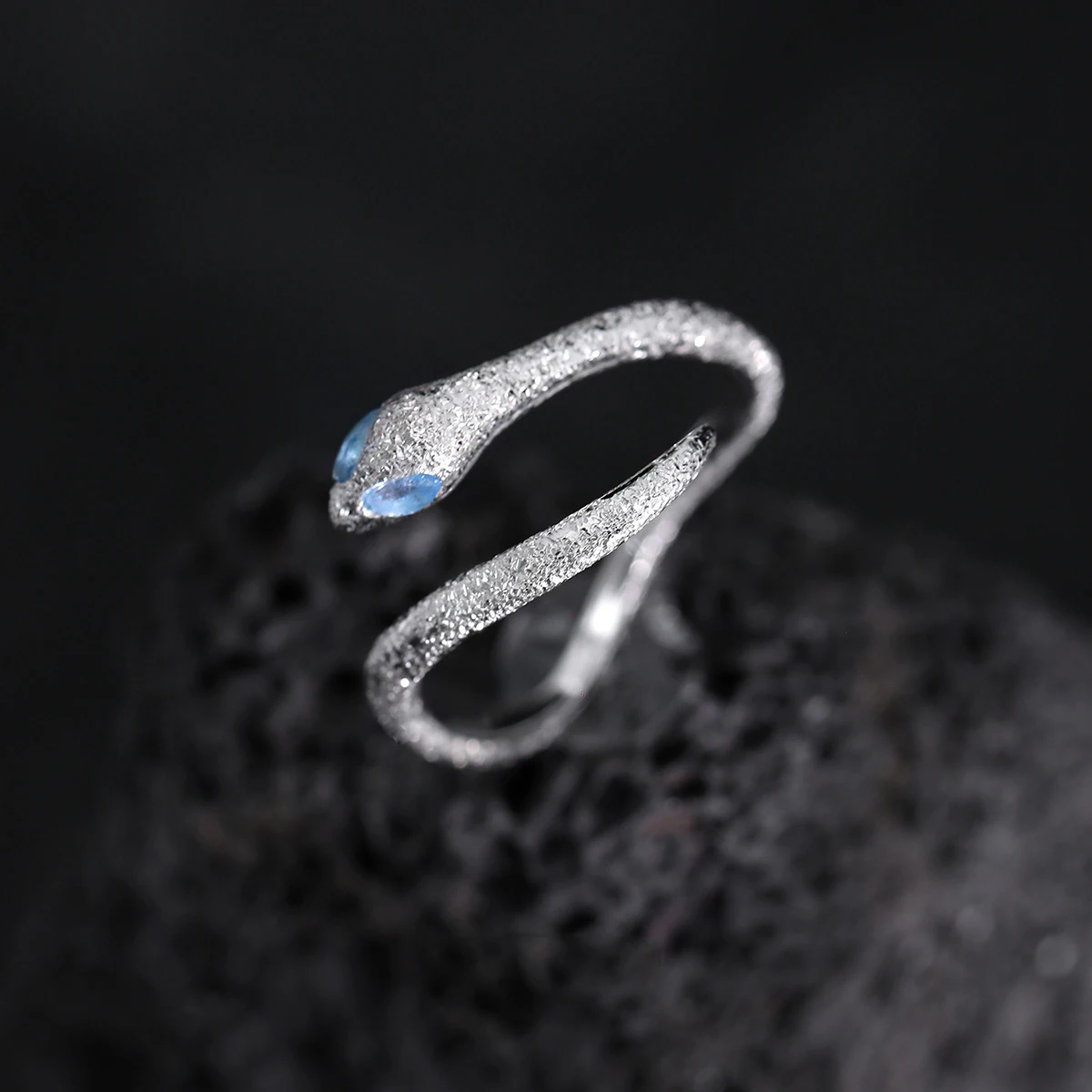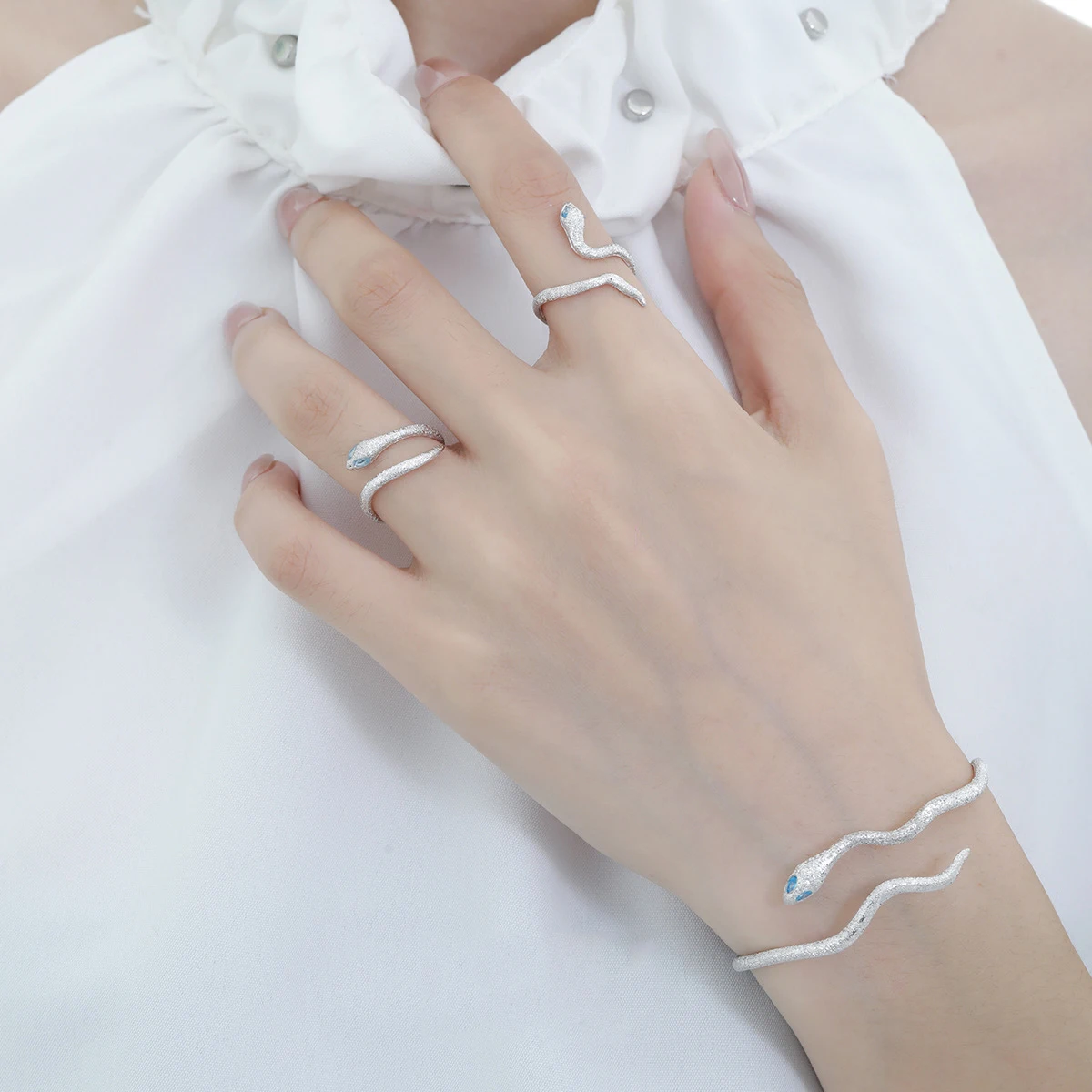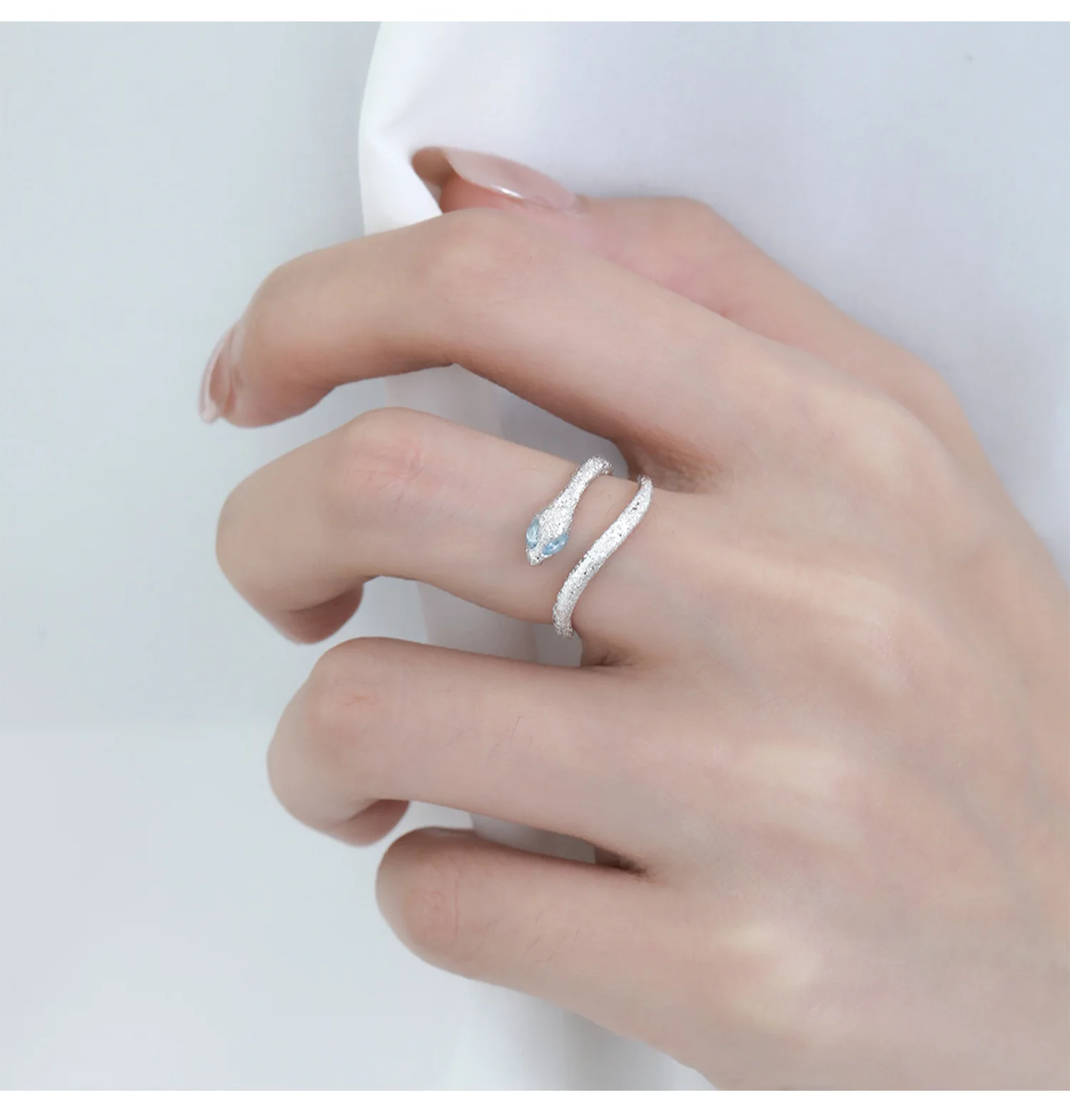 F.I.N.S Minimalist Snake S925 Sterling Silver Rings Blue Cubic Zirconia Curved Adjustable Open Finger Party Fine Jewelry Gifts