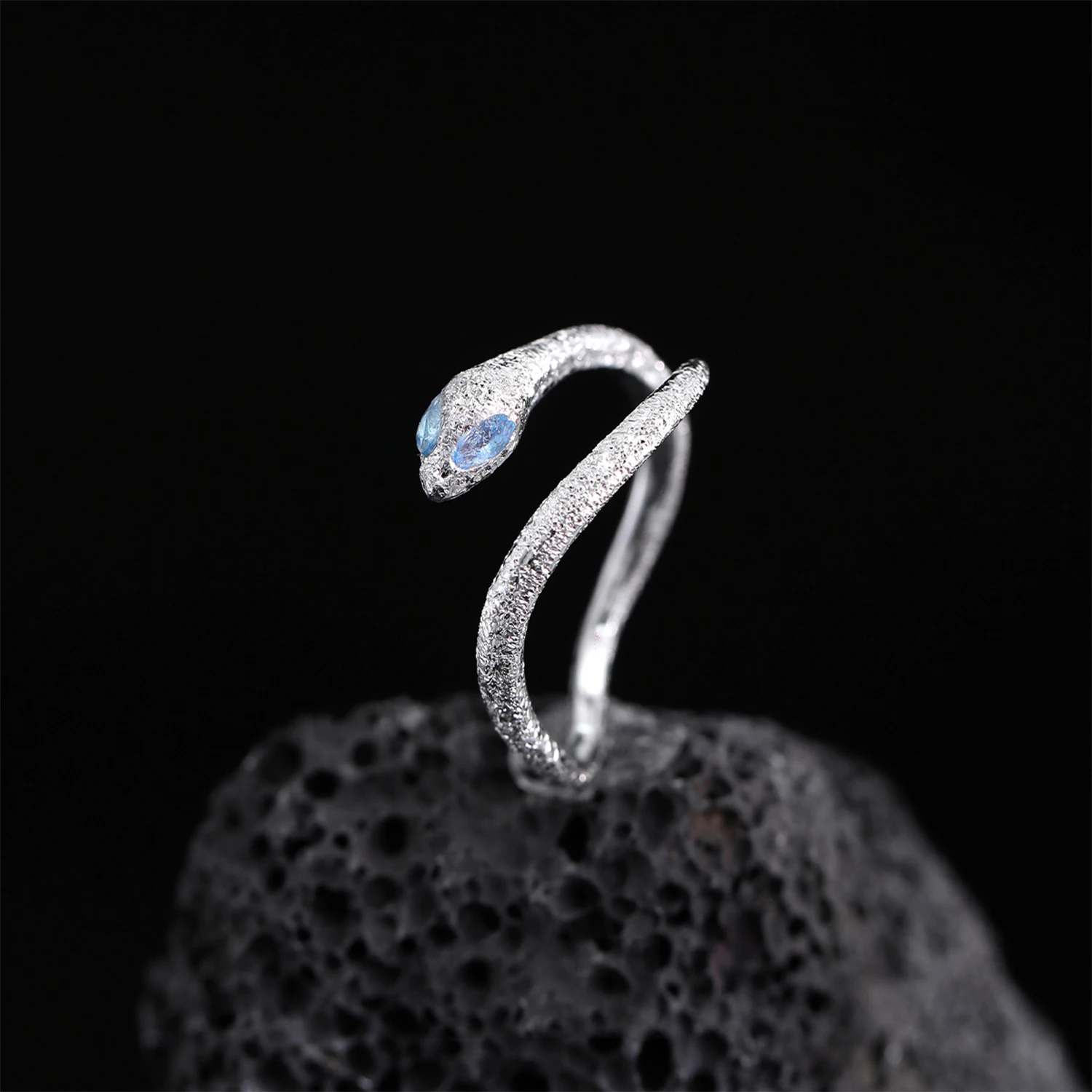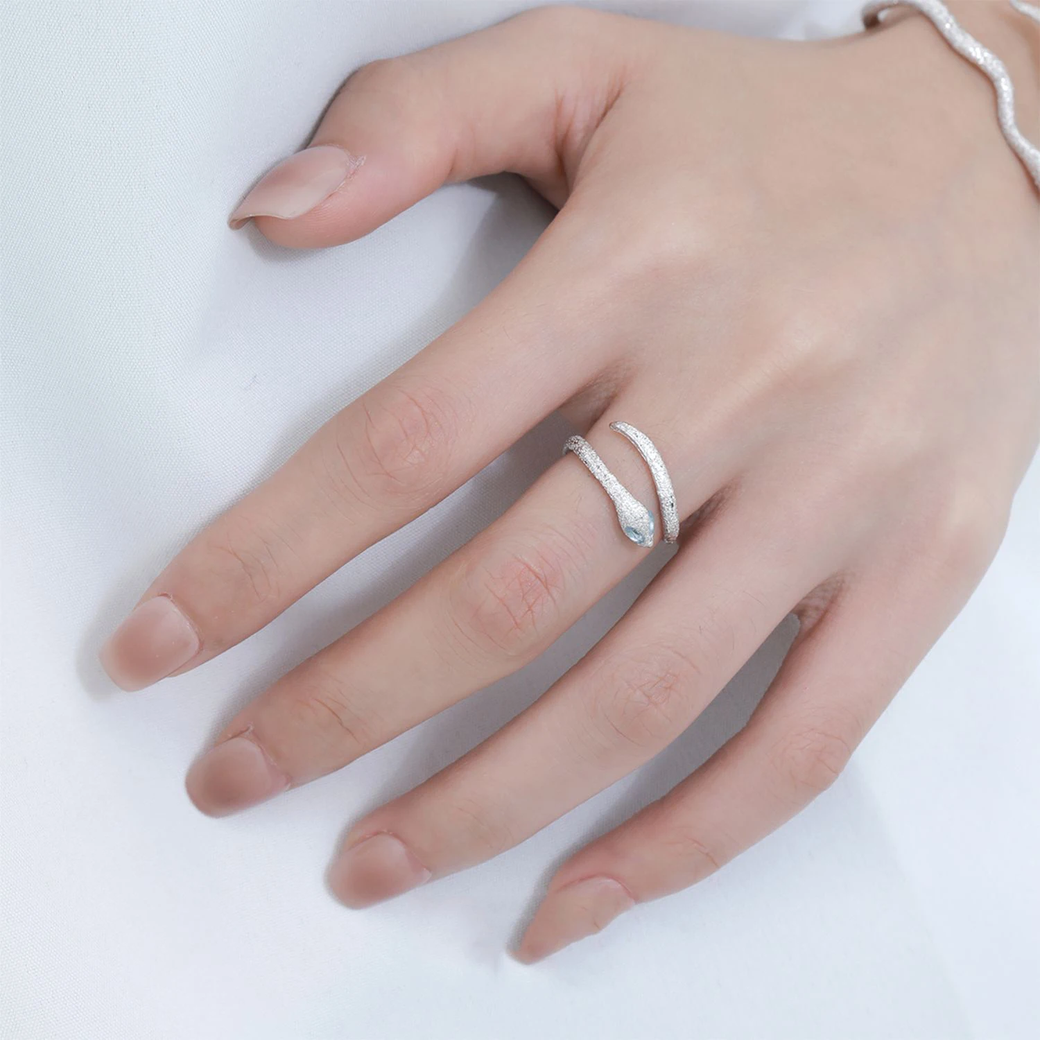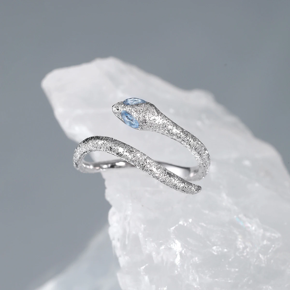F.I.N.S Minimalist Snake S925 Sterling Silver Rings Blue Cubic Zirconia Curved Adjustable Open Finger Party Fine Jewelry Gifts