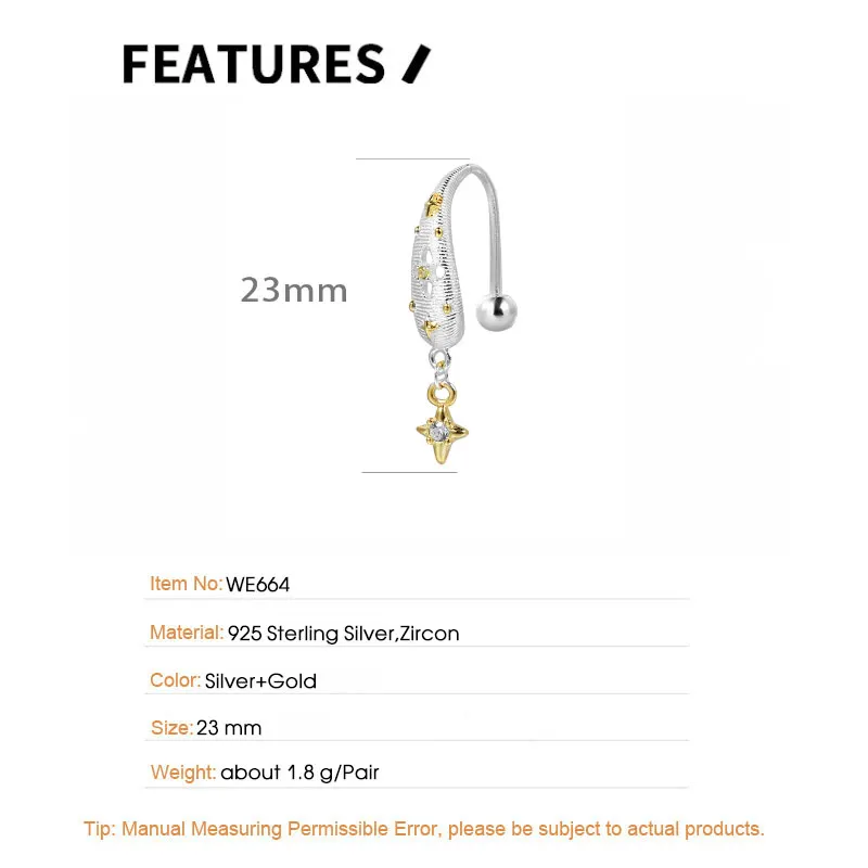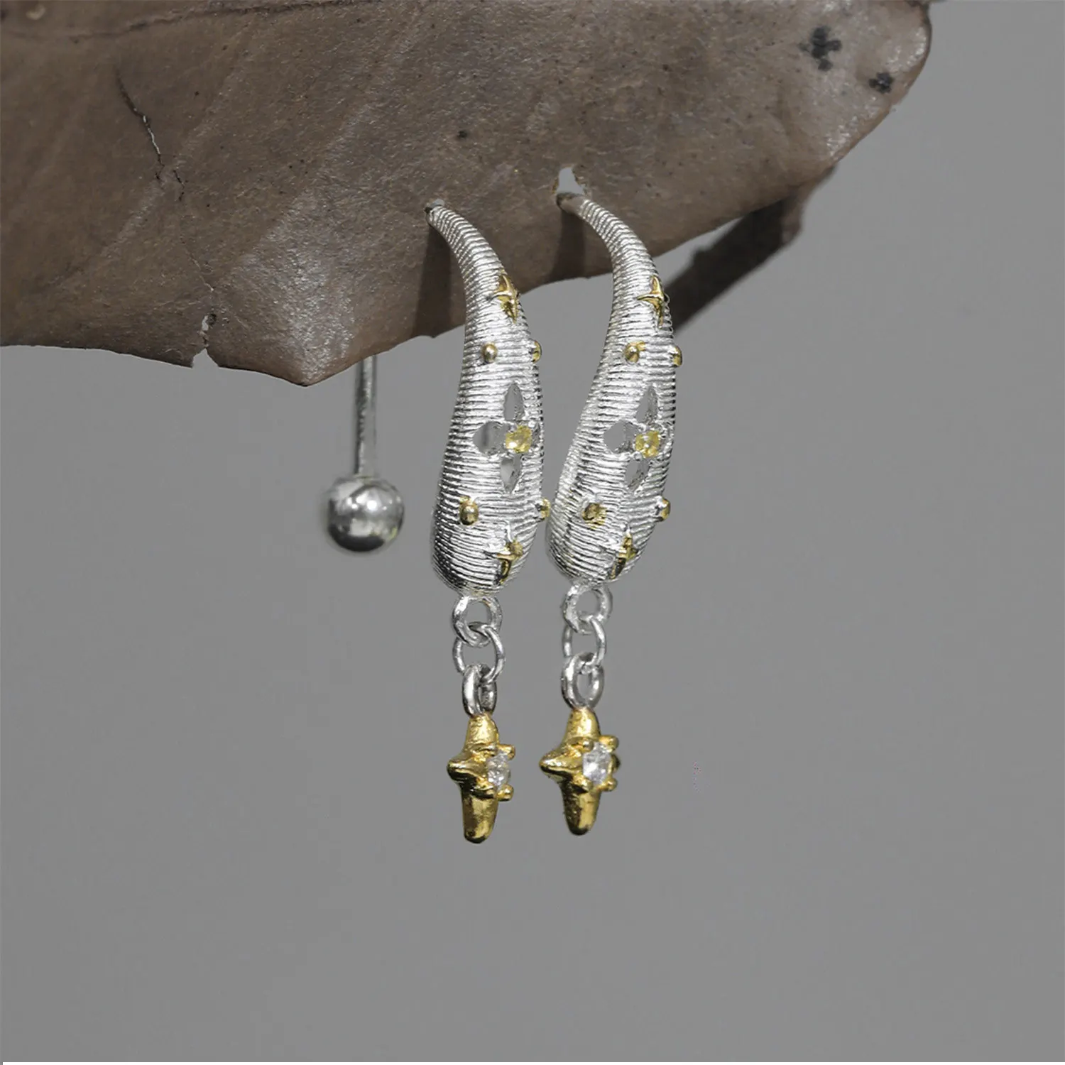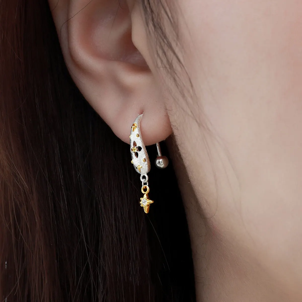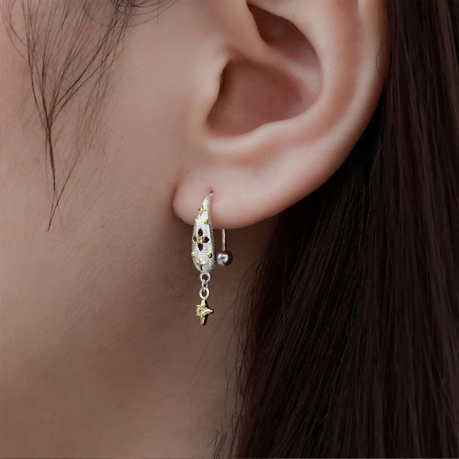 Jewel Type : F.I.N.S Original Brushed S925 Sterling Silver Hook Earrings Elegant Screw Bead Color Separation Gold Star Piercing Ear Drops